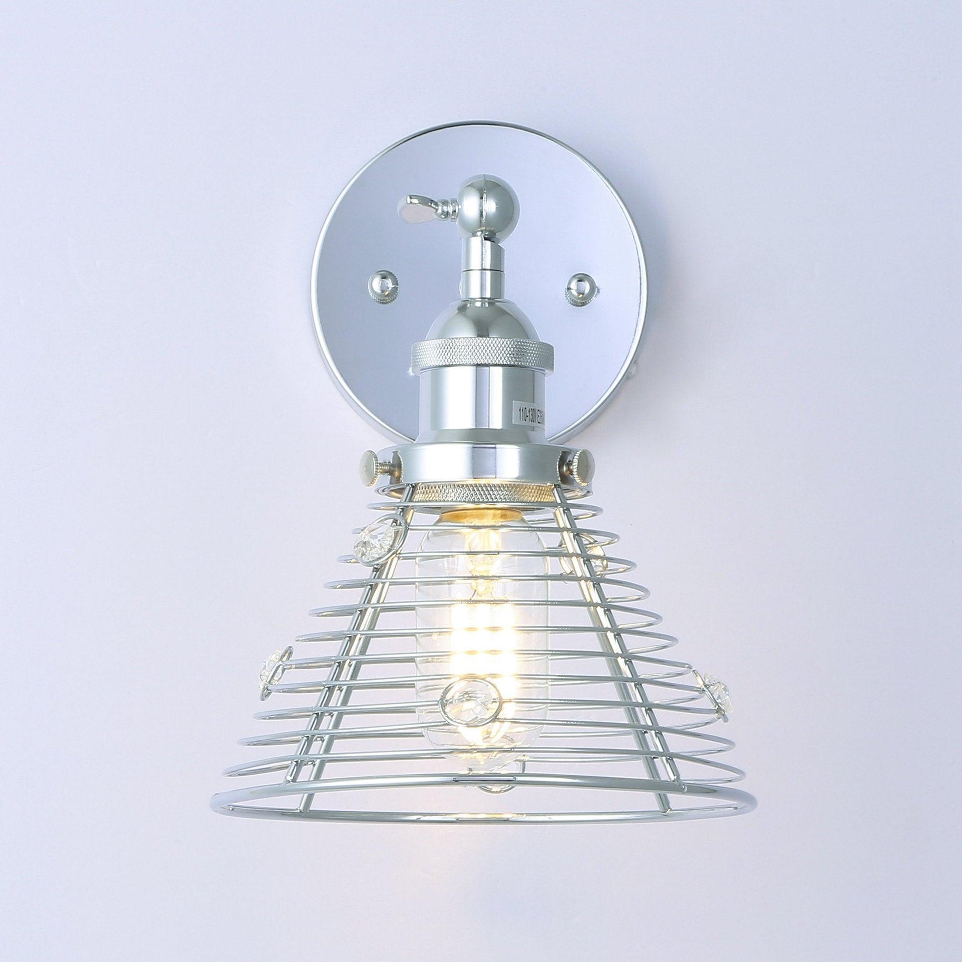 The perfect combination of industrial and modern elements, this wall light features a simple yet contemporary design, with a conical shade that guides the light and creates a warm and cozy ambiance. Constructed of high-quality metal and supported by a thick round back panel, the fixture's silver finish complements the sleek look with crystal accents. Designed with understated luxury style, you can place it next to your bed, in the reading corner of your living room, in your bathroom, in your living room, and more. Wall sconces will add a touch of modern glamour to your space.