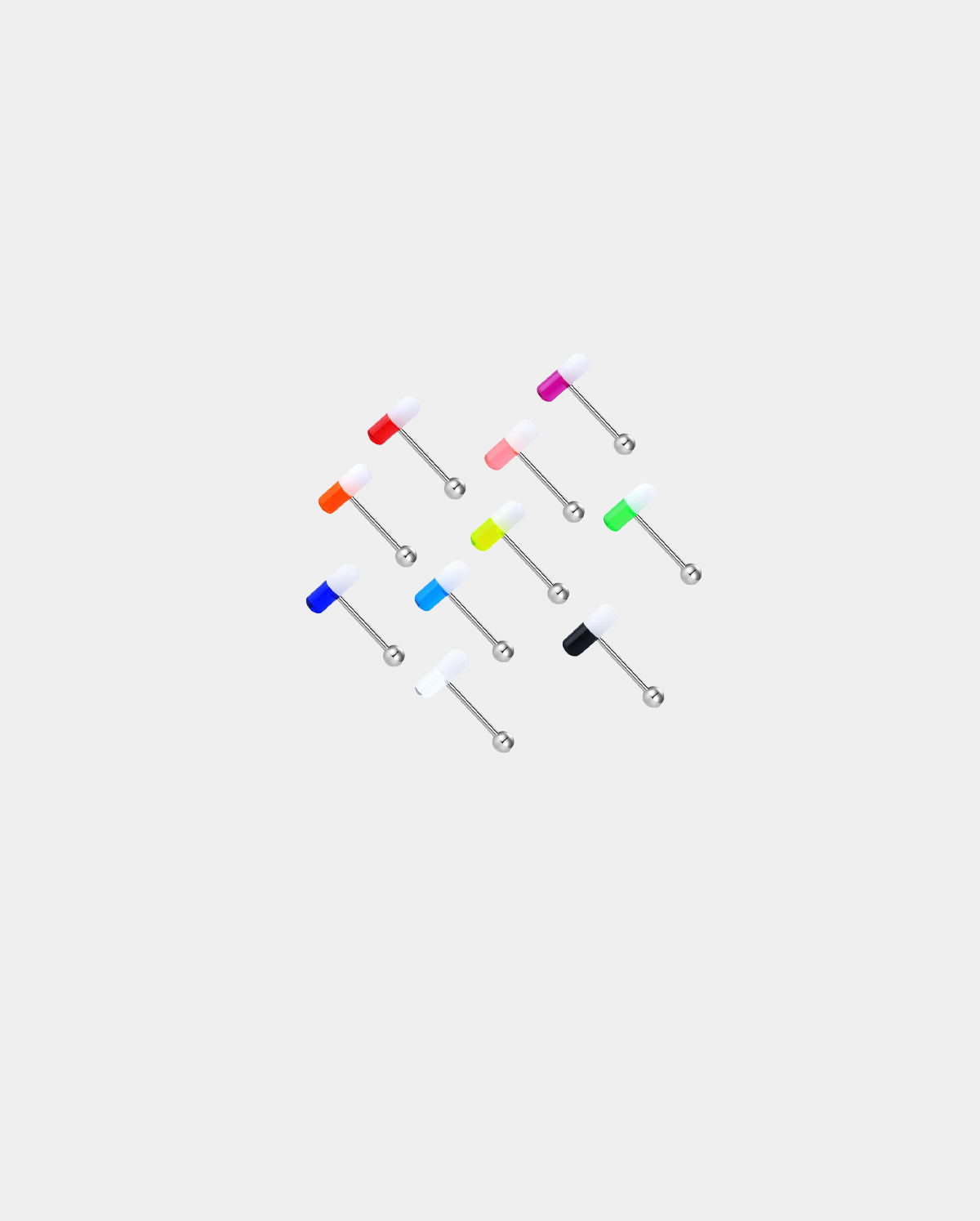 You can get 10PCS different colors pill tongue ring at only $9.99! The pill design is so unique, and definitely eye-catching when you talk with ppl. The barbell is made of high-quality 316L stainless steel, safe for your tongue piercing.