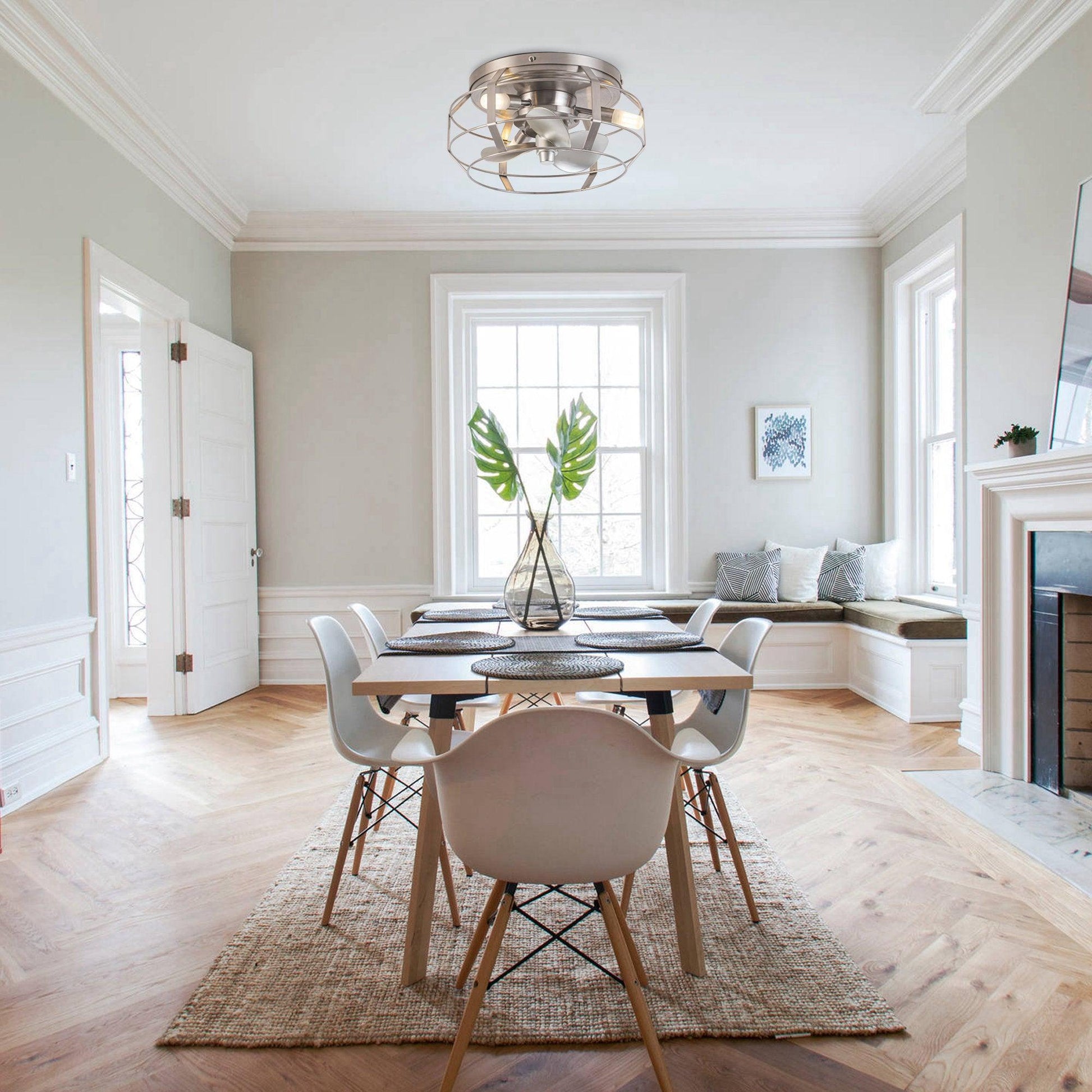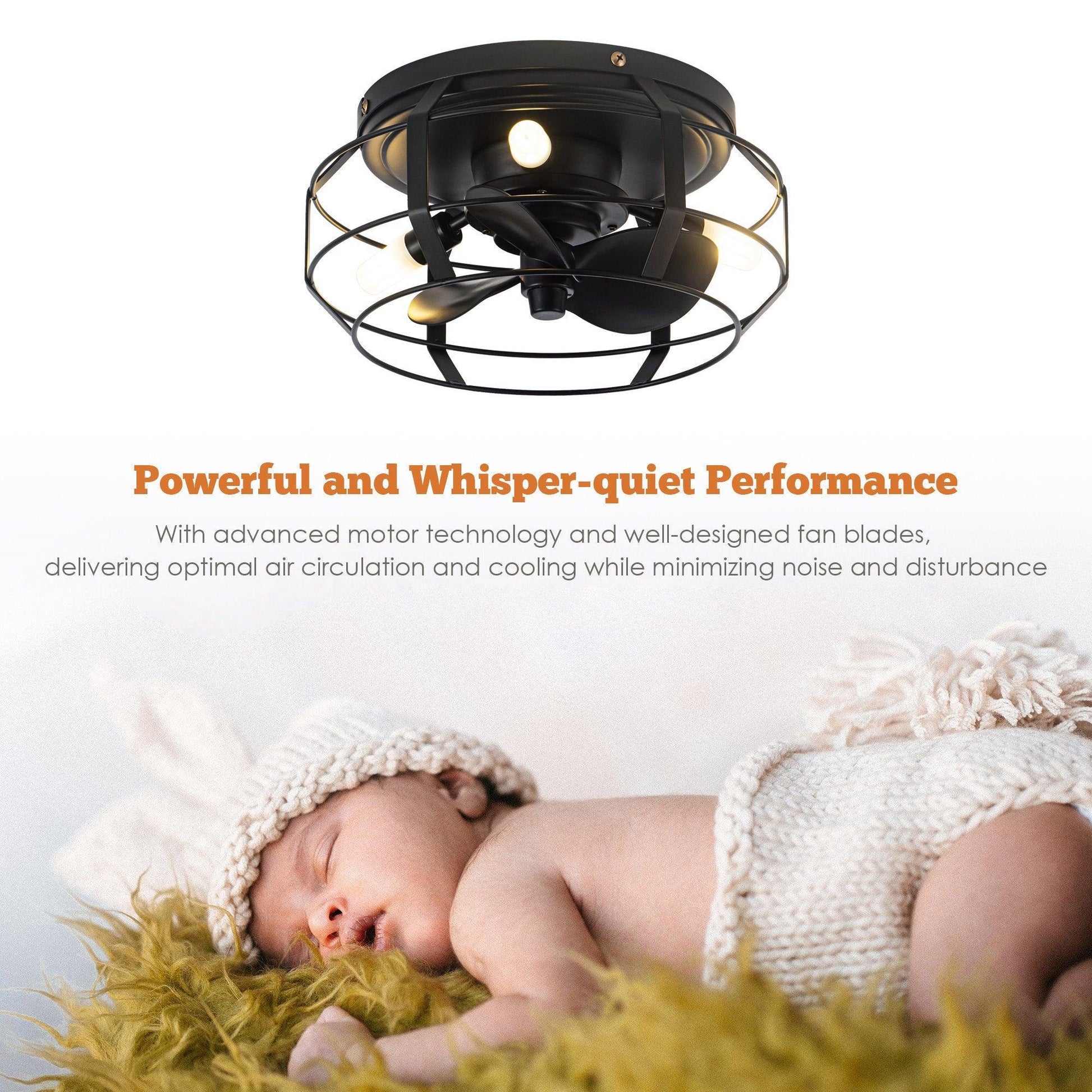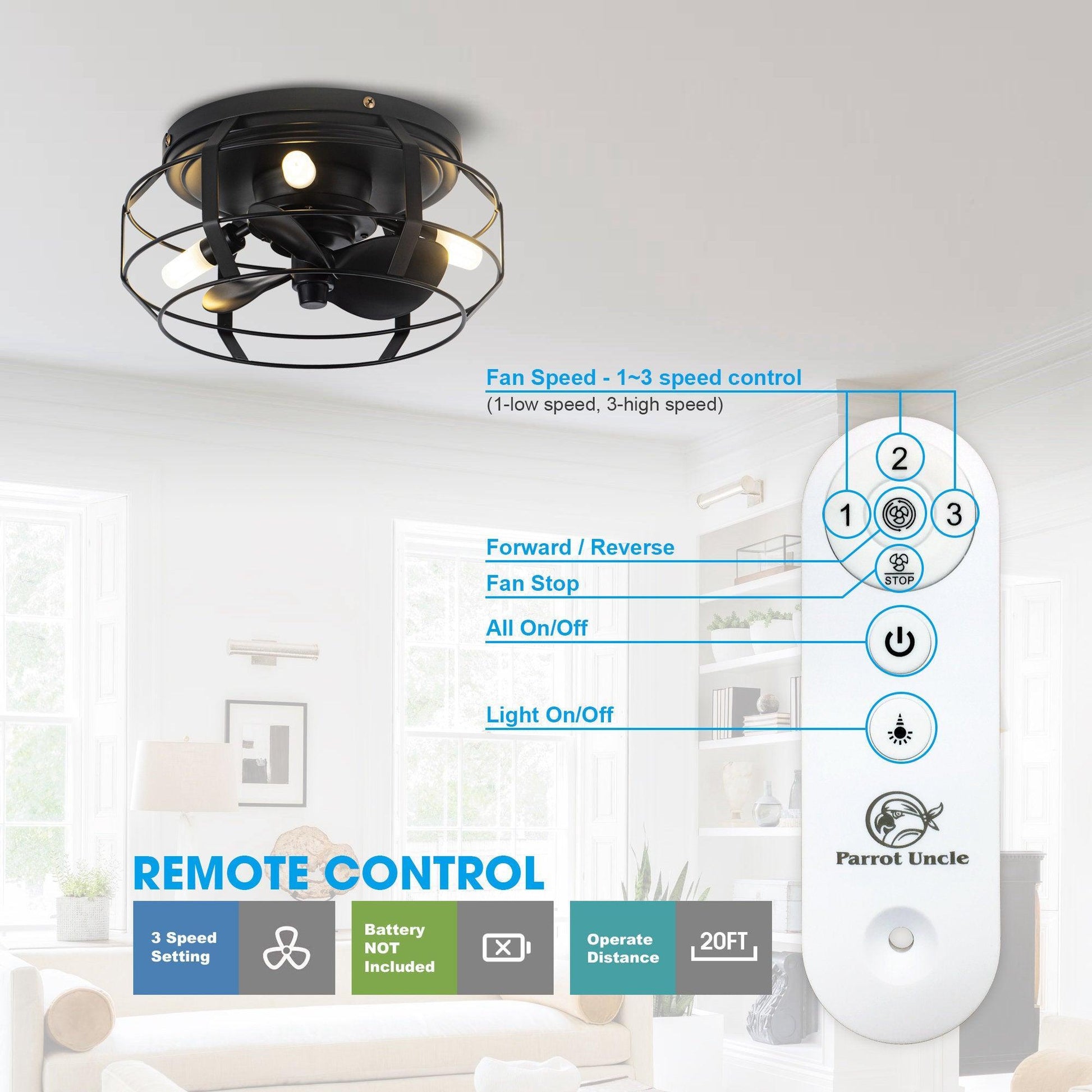 12" Flush Mount Low Profile Caged Small Ceiling Fan with Light and Remote Control
