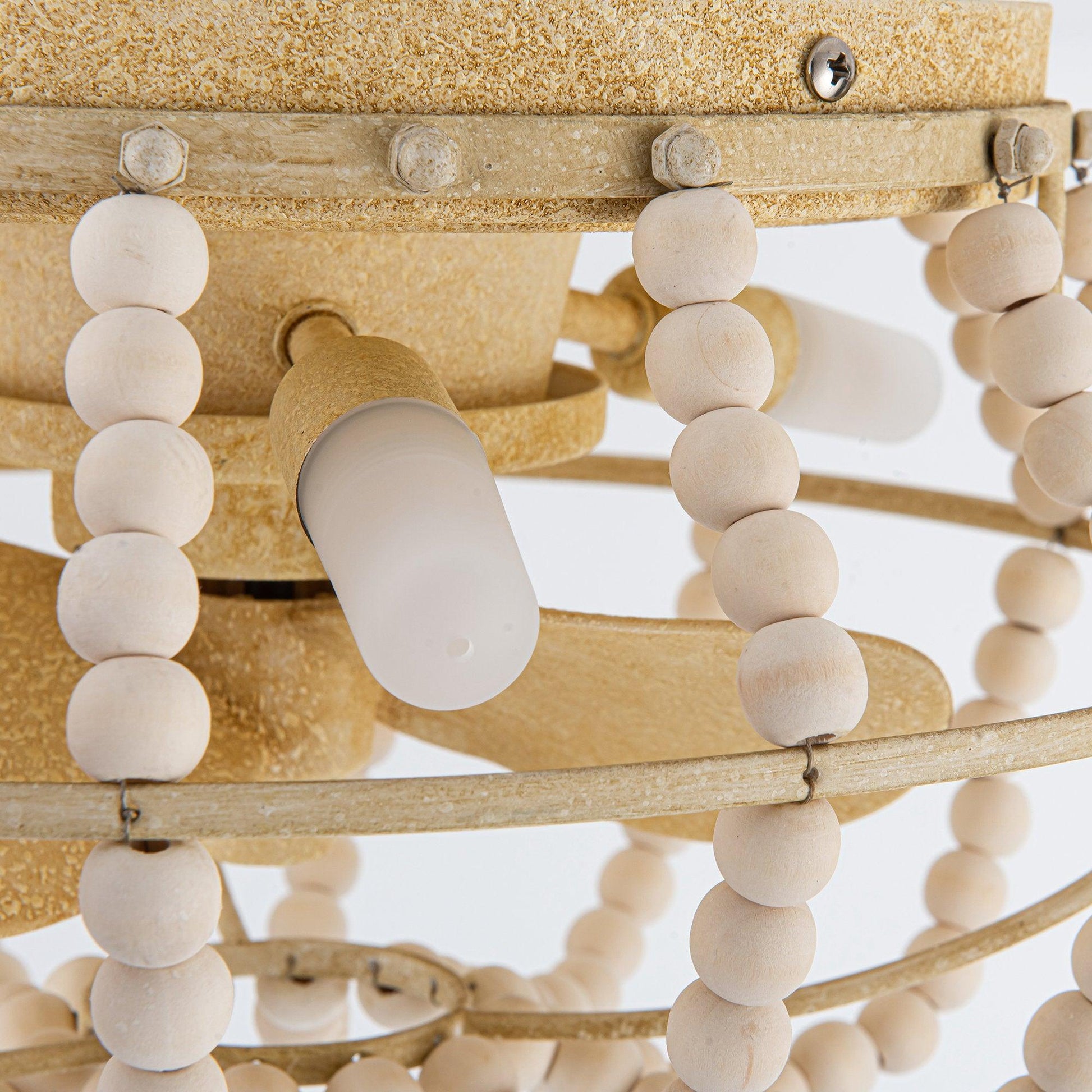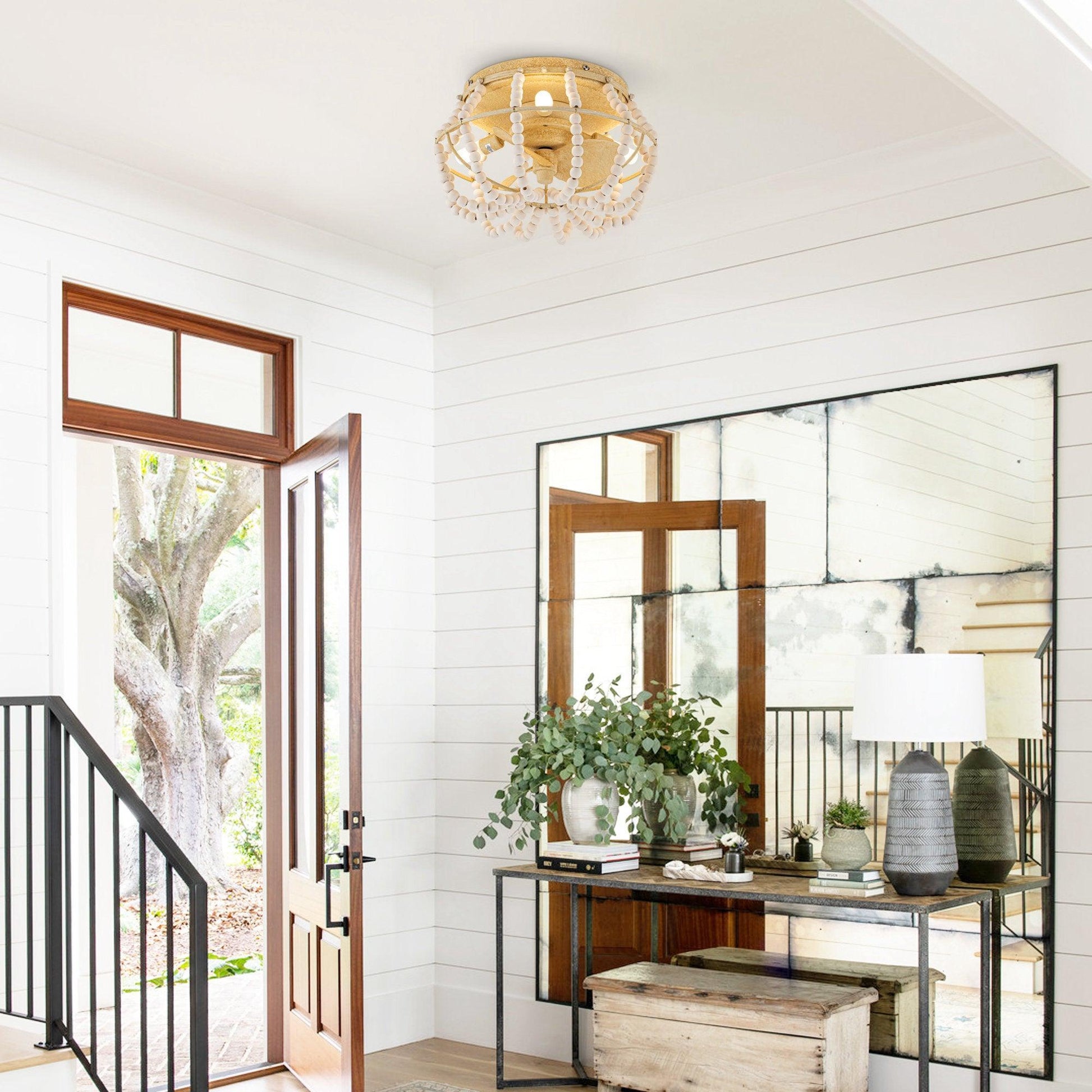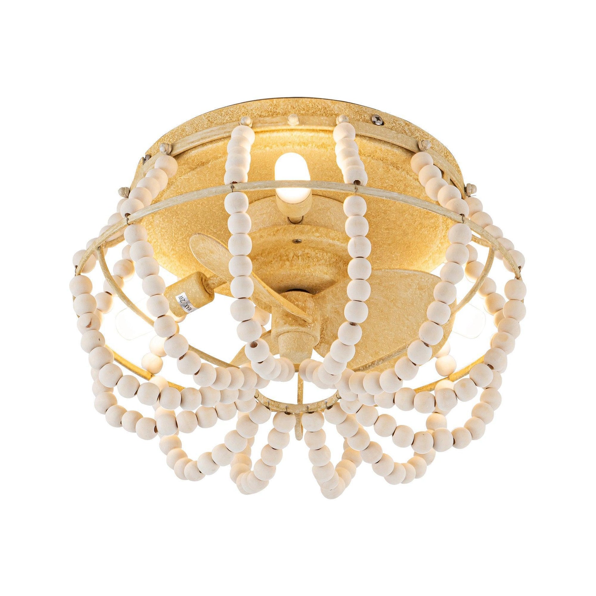 This recessed ceiling light decorates classic bohemian style. Its elements are made of high-quality solid white wooden beads. Creates an eye-catching look that adds a bohemian vibe to any area. The ceiling fan can be controlled by the remote control with 3 speeds, and it is equipped with 3 G9 lamp heads with a maximum of 2W lamp kit (including bulbs), casting a warm light for your room. Recommended for use in small spaces such as indoor porches and bedrooms.