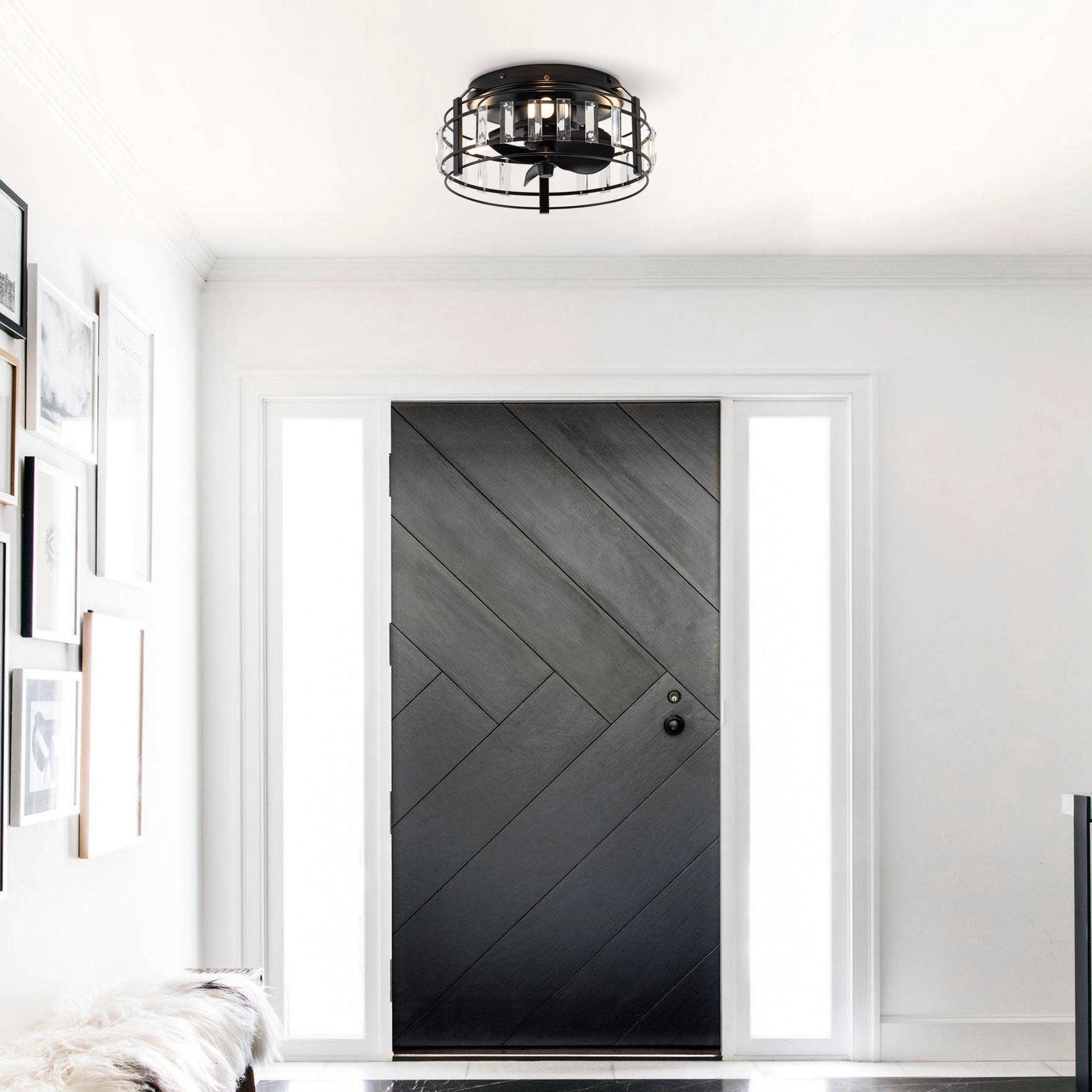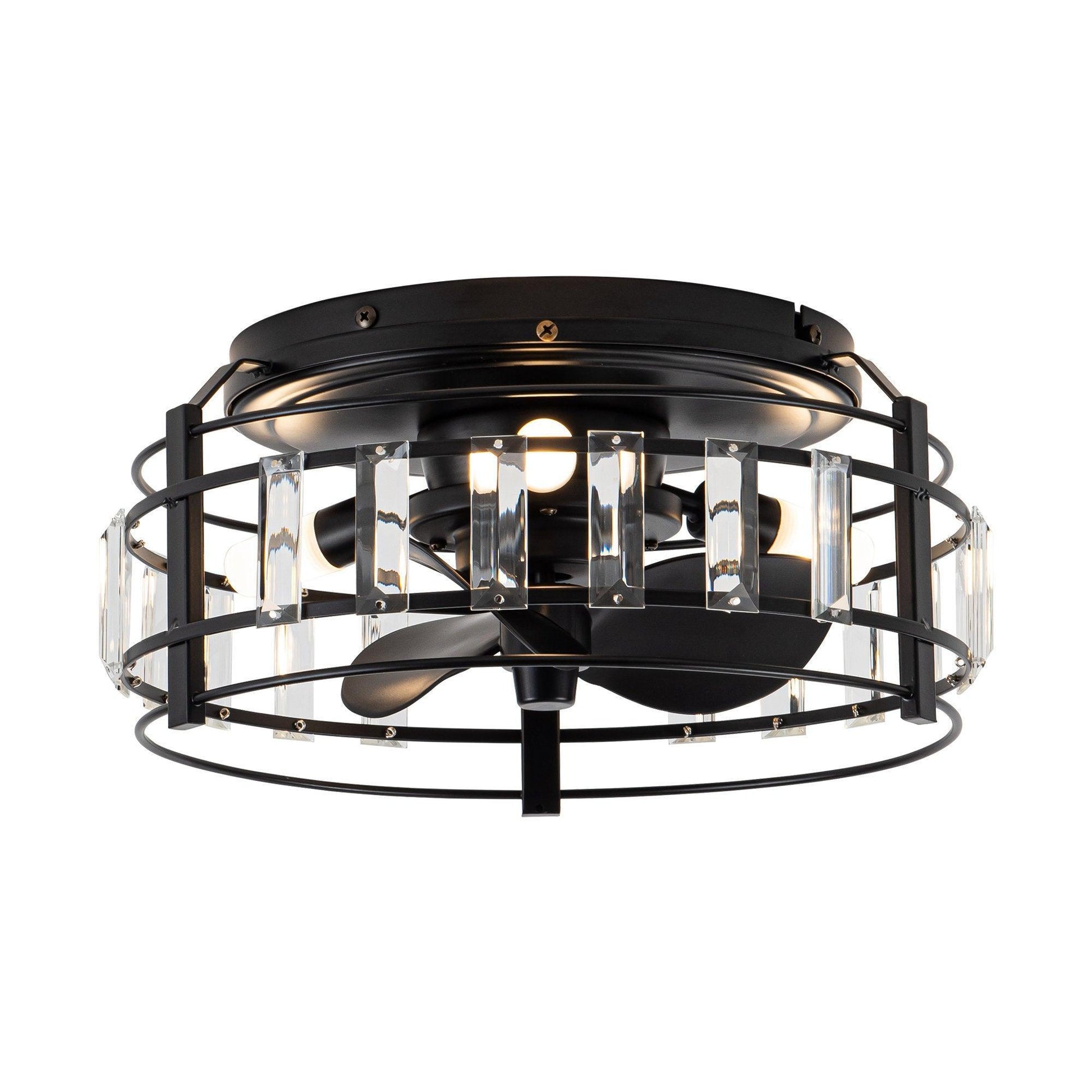 13" Modern DC Motor Flush Mount Reversible Crystal Ceiling Fan with Lighting and Remote Control