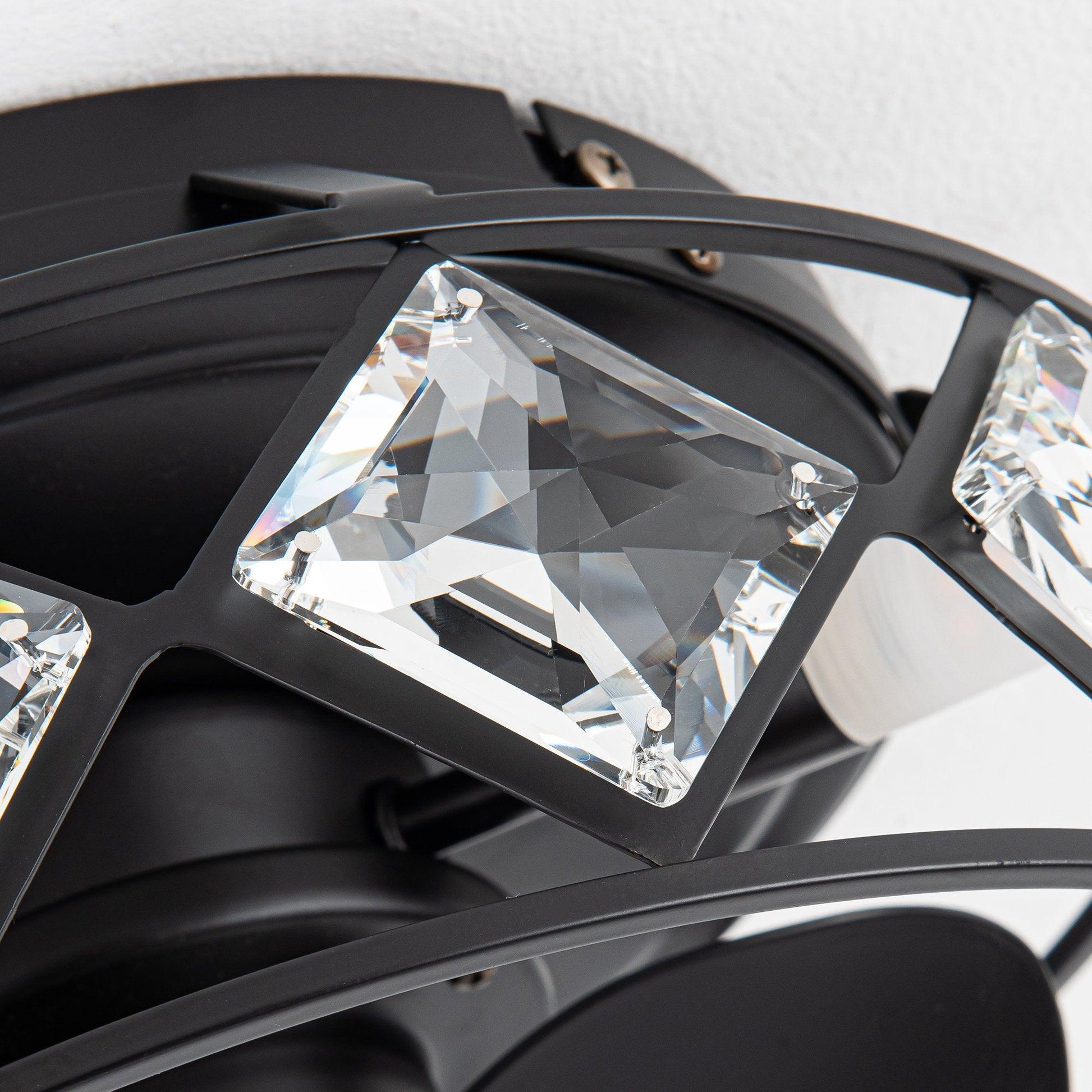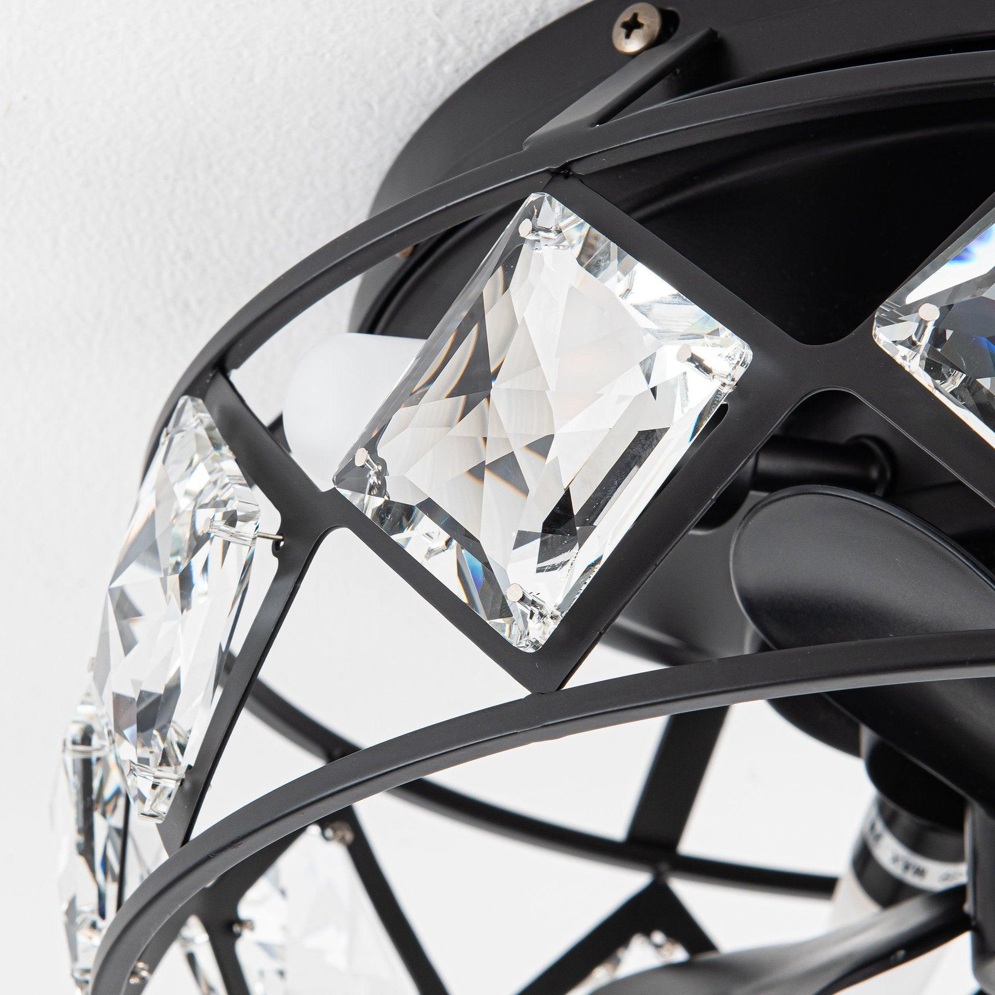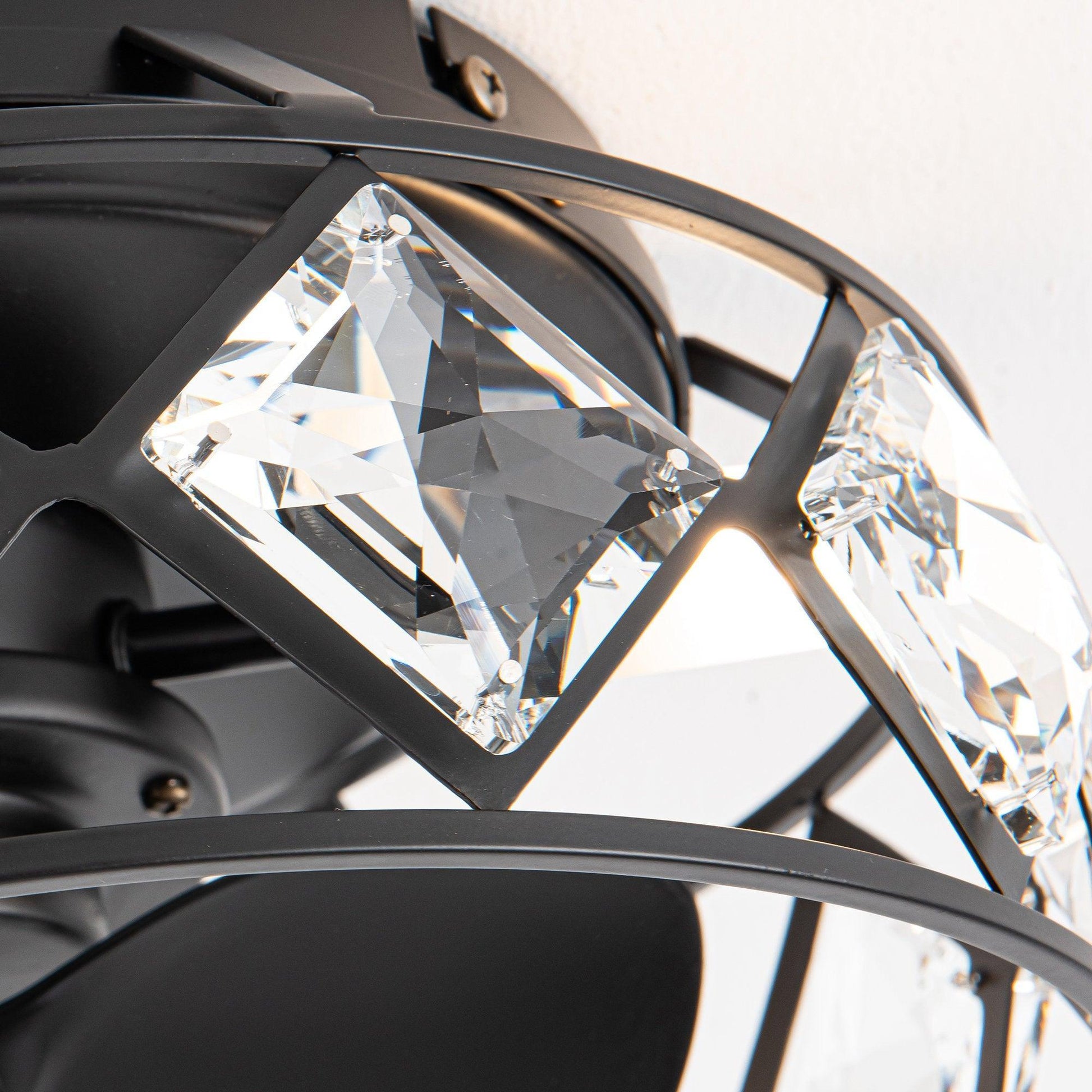 A 13-inch modern-style ceiling fan, with a black metal frame and beautiful large crystal embellishment, becomes the perfect decoration for your house, adding a touch of elegance to your decoration. High-quality crystal leaves with clear outlines, delicate and shiny. Turning on the light is like a diamond, refracted and reflected by the inner island, showing a bright light. The ceiling fan light is equipped with a remote control, which can operate at 3 speeds. At the same time, it has 3 G9 lamps with a maximum of 2W (including bulbs) to meet your lighting needs. Suitable for use in indoor environments, especially bedrooms, porches, restaurants, and other places.