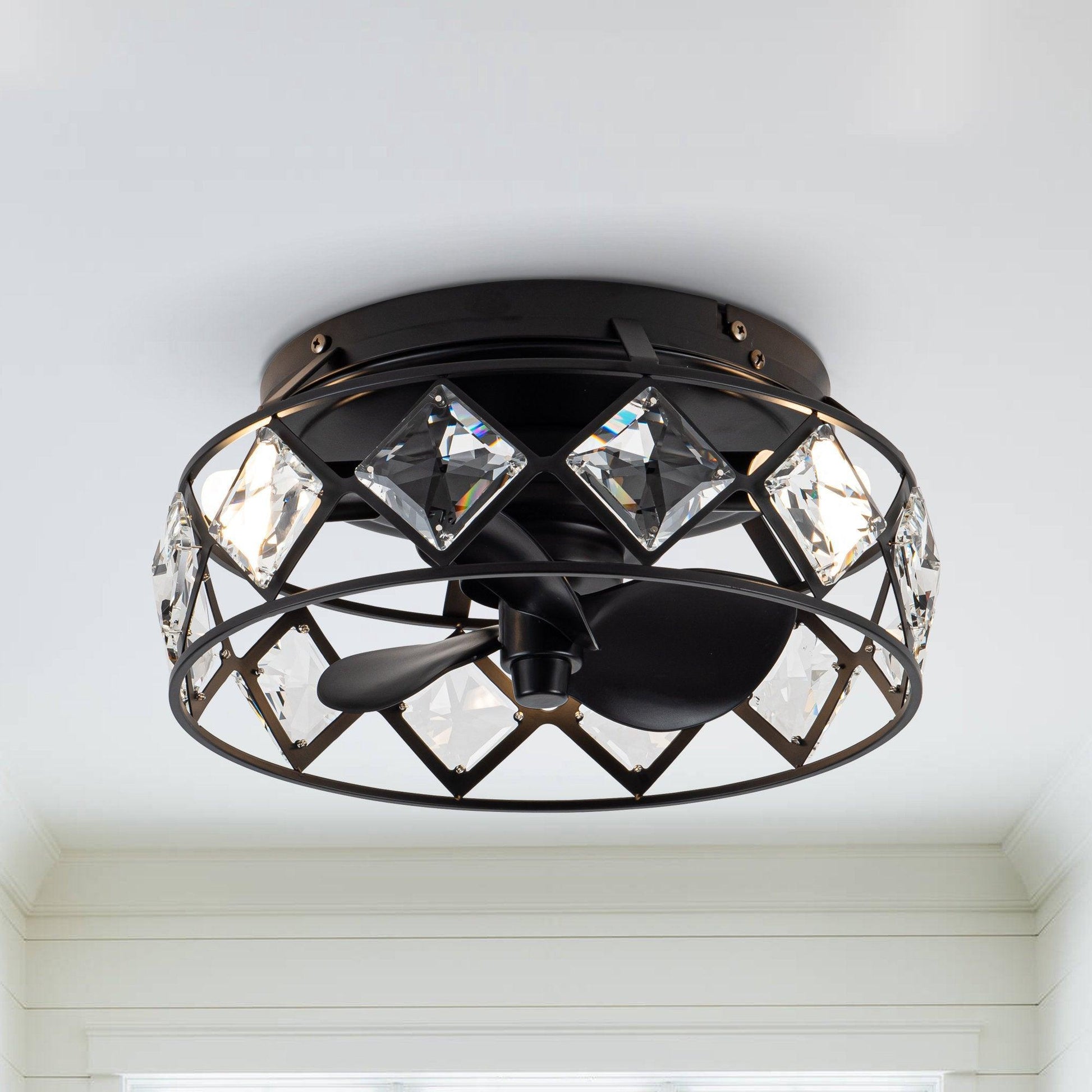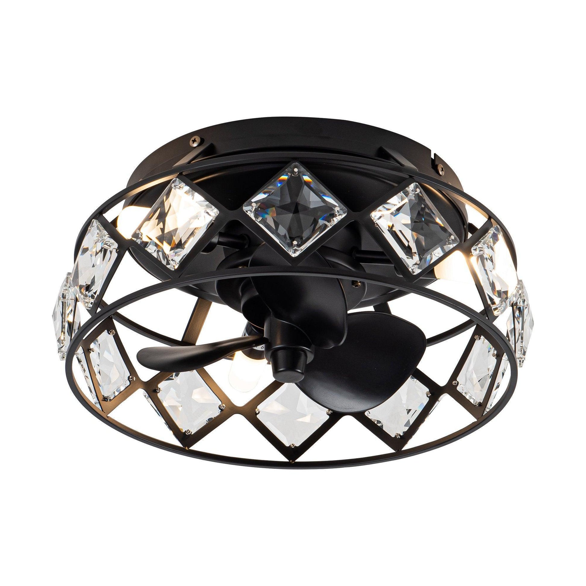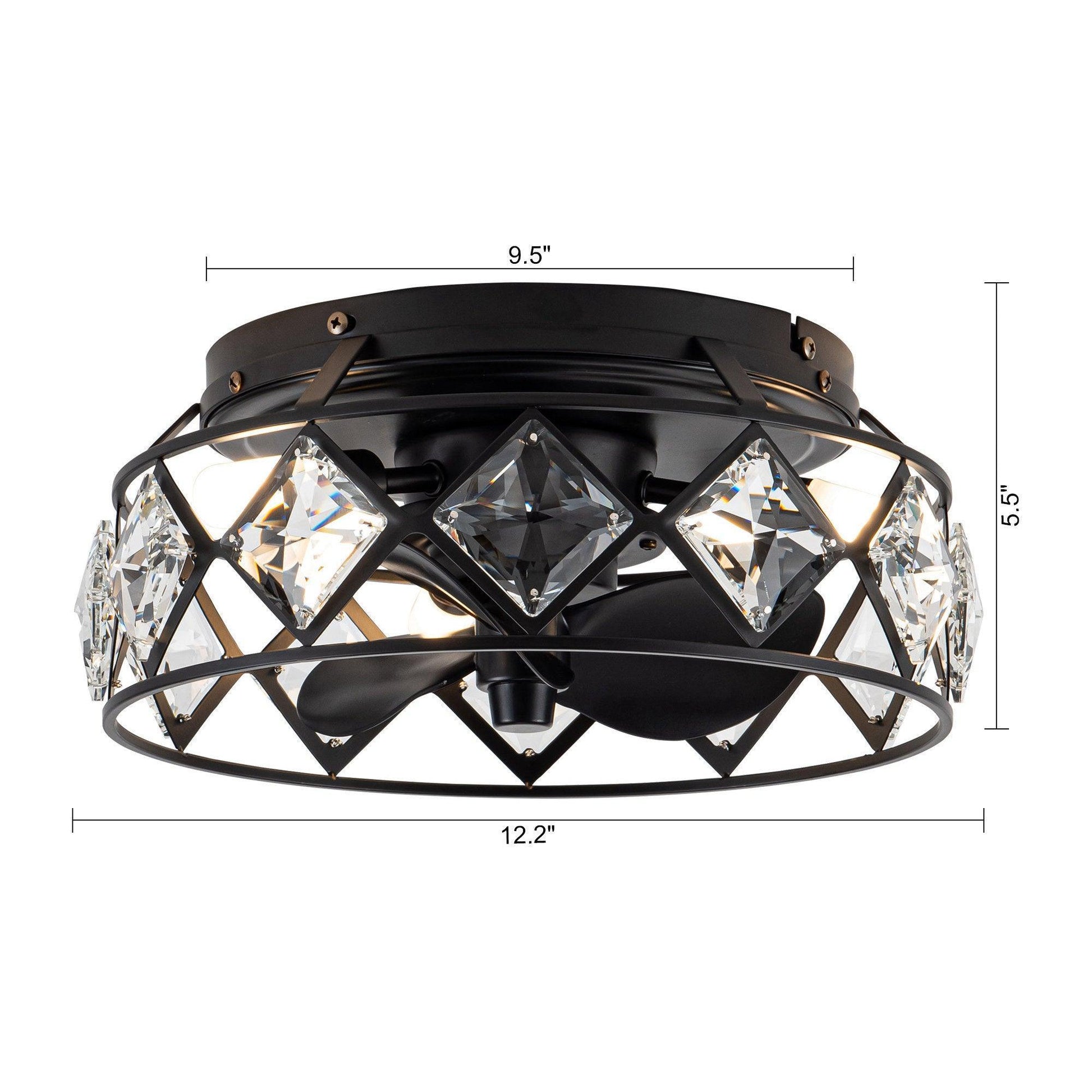 13" Srinager Modern DC Motor Flush Mount Reversible Crystal Ceiling Fan with Lighting and Remote Control
