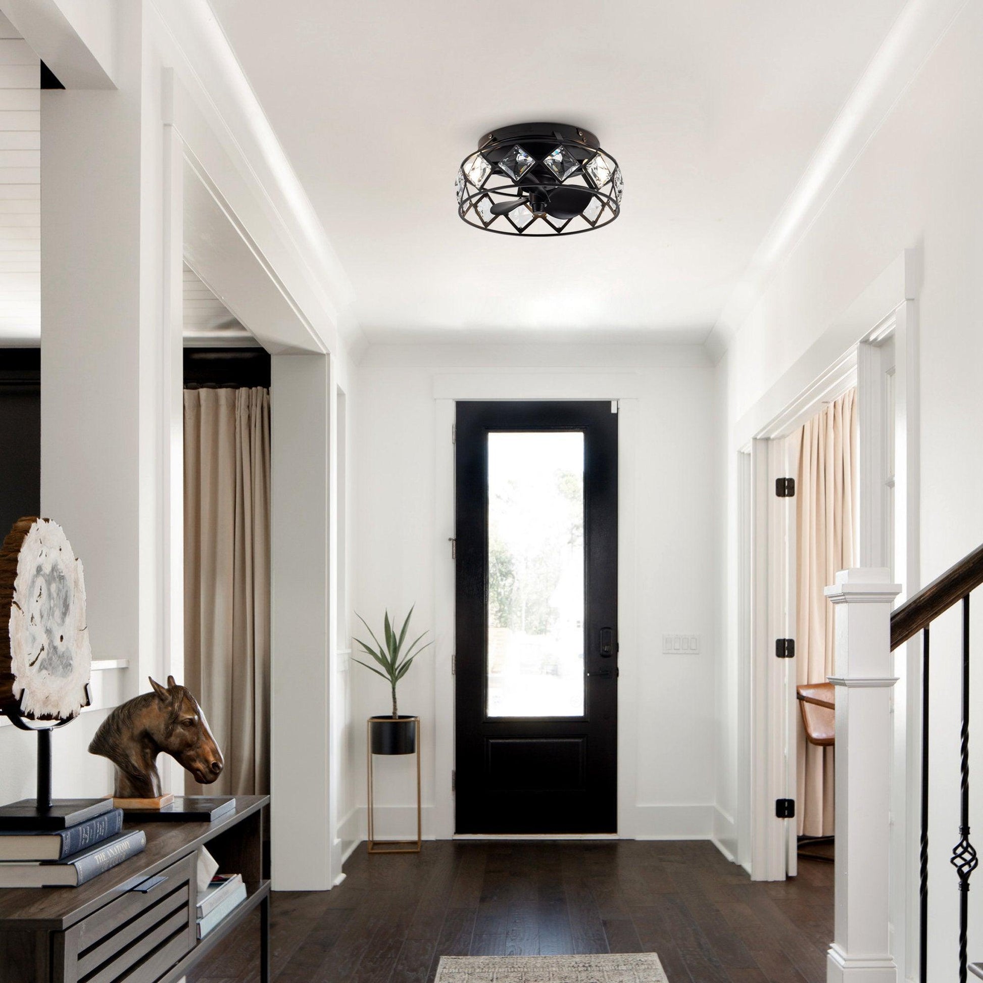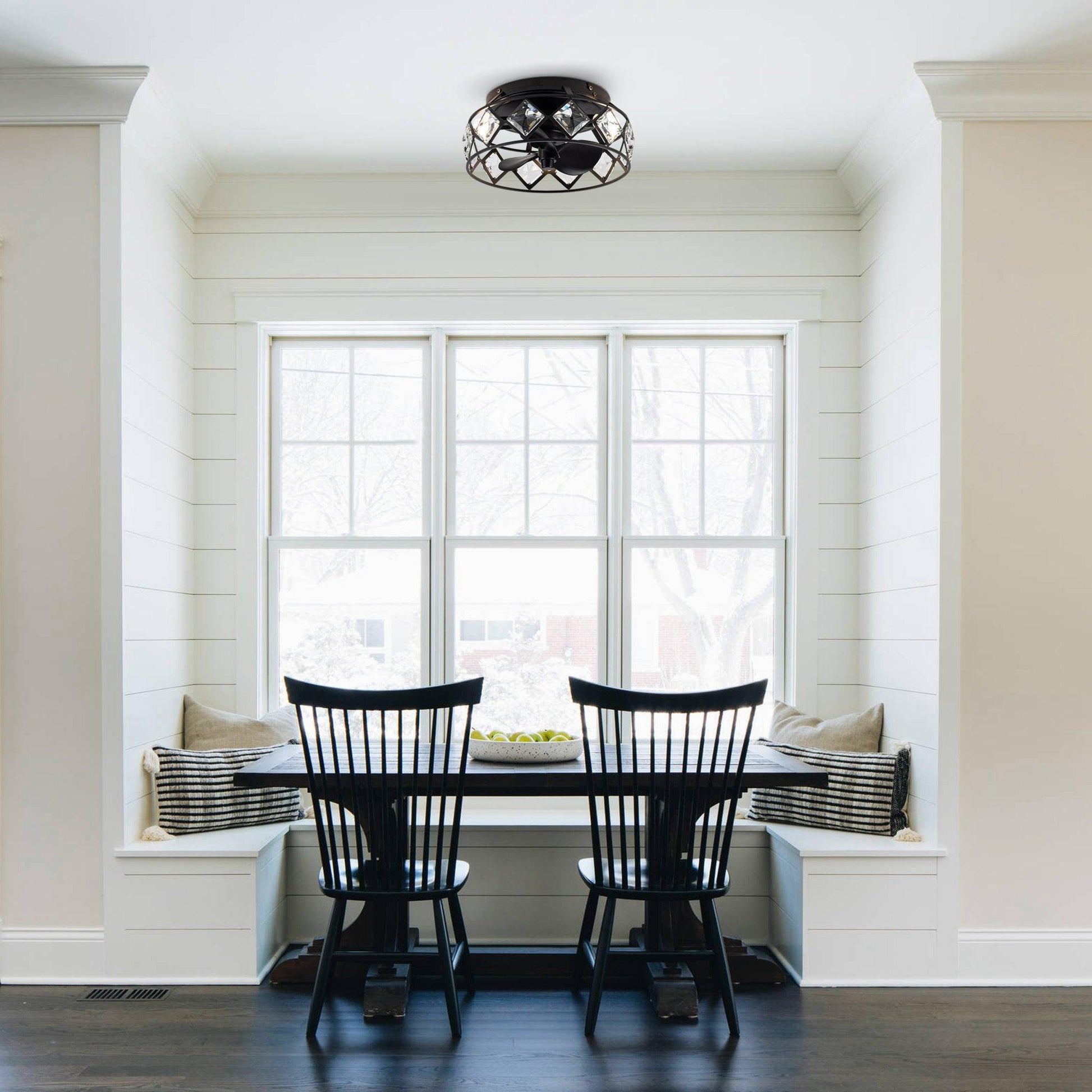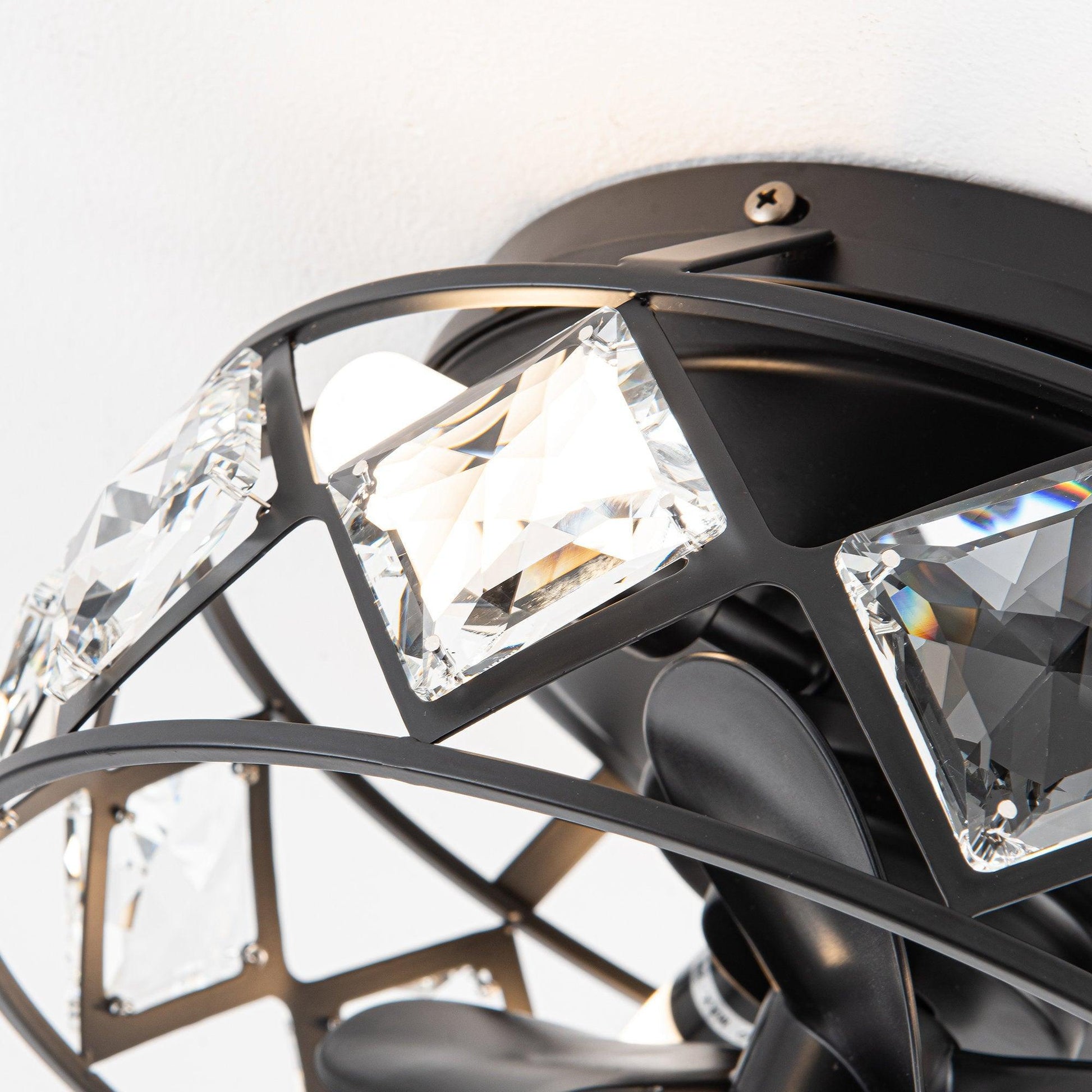 13" Srinager Modern DC Motor Flush Mount Reversible Crystal Ceiling Fan with Lighting and Remote Control