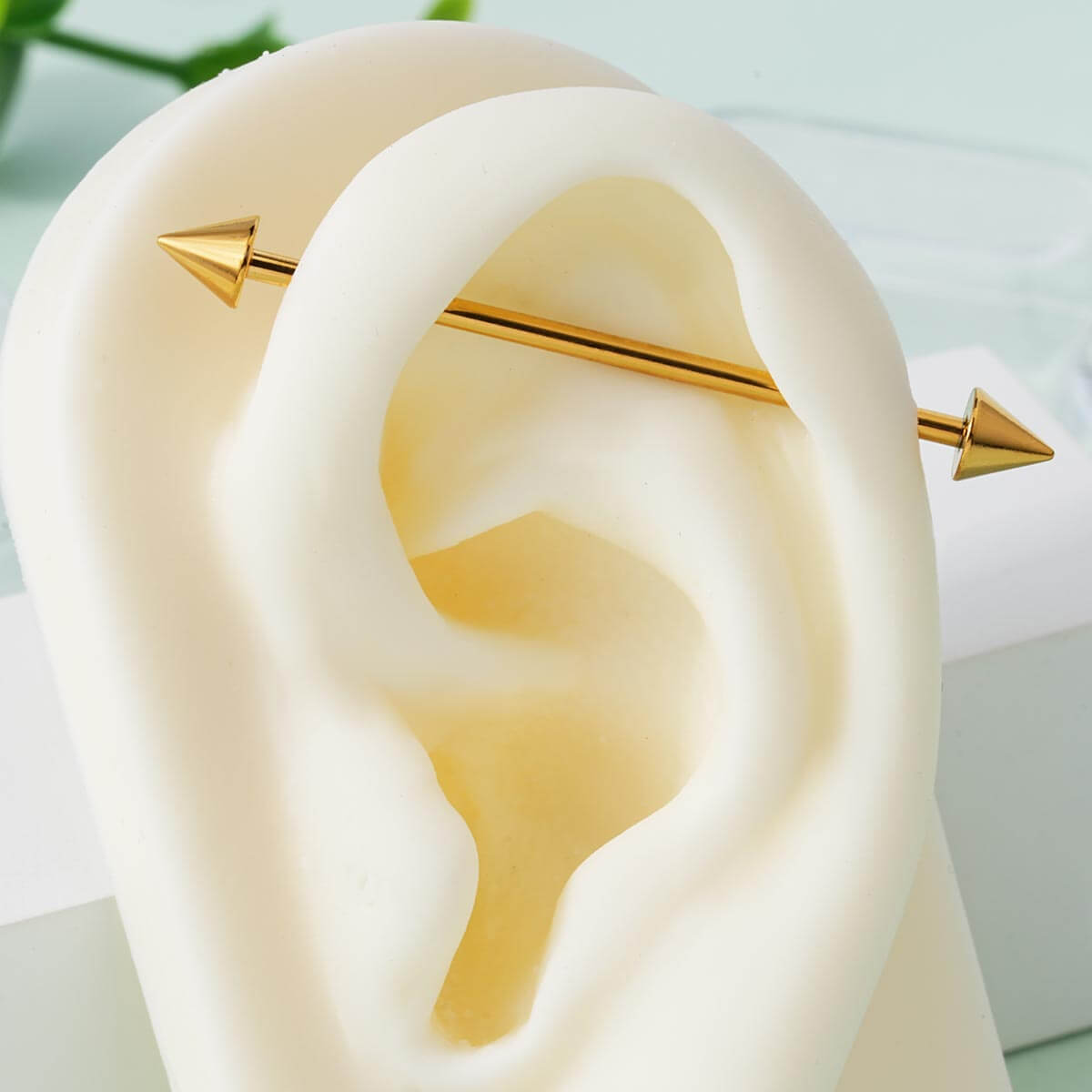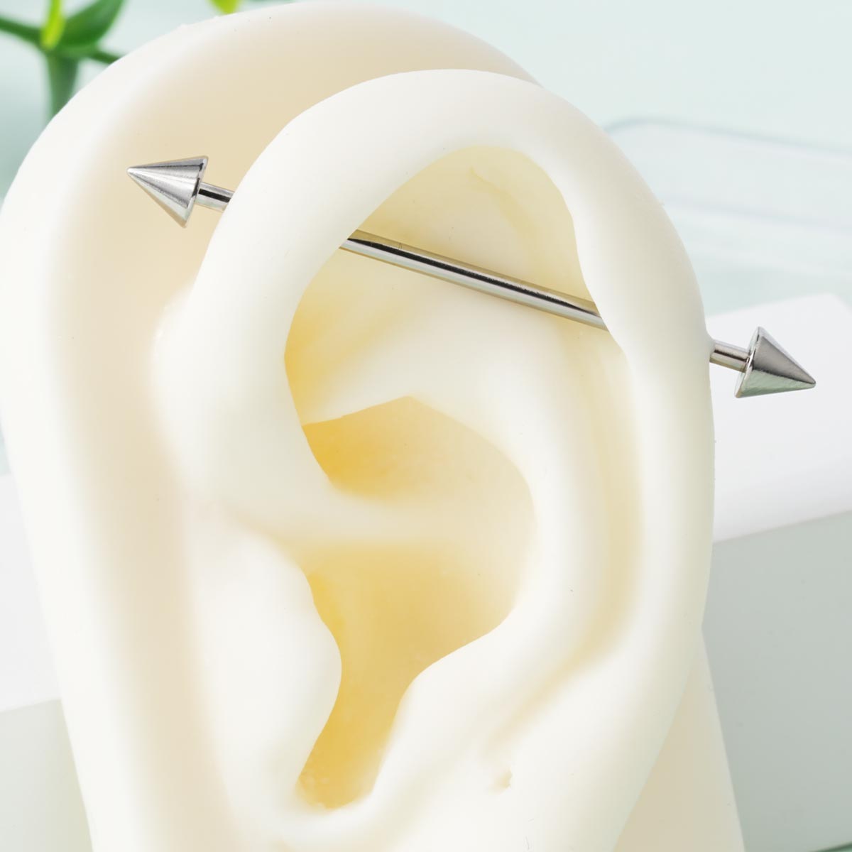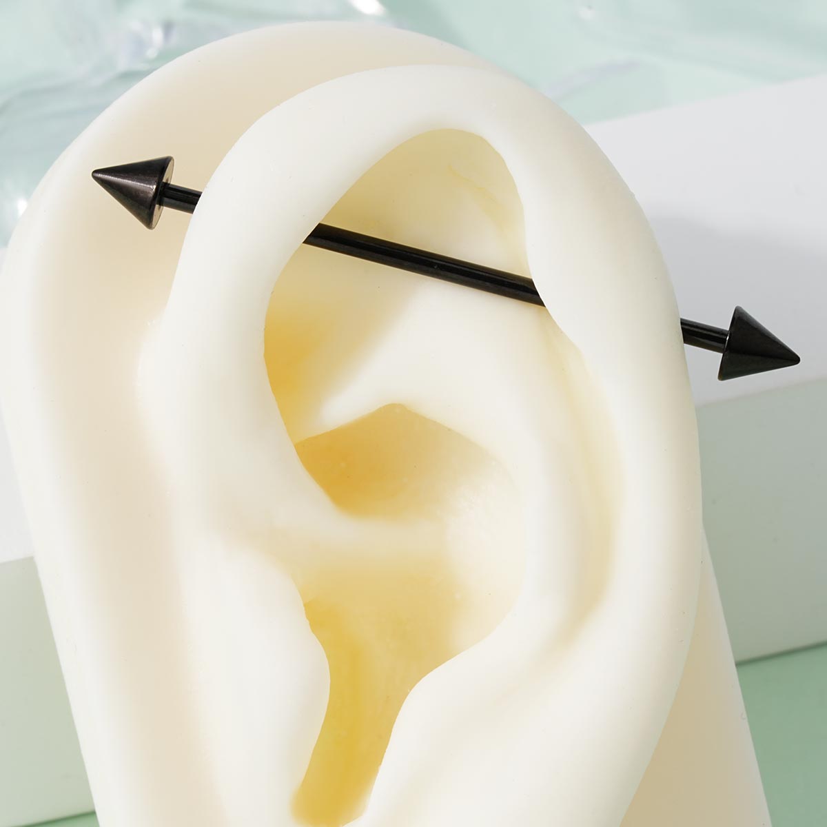 This set includes six spike industrial piercing barbells, each featuring a sleek spike design, available in three different finishes: silver, gold, and black. Made from 316L stainless steel, these 14-gauge barbells ensure durability and comfort for long-term wear. The spikes add an edgy and contemporary flair, making them a standout accessory for industrial piercings.