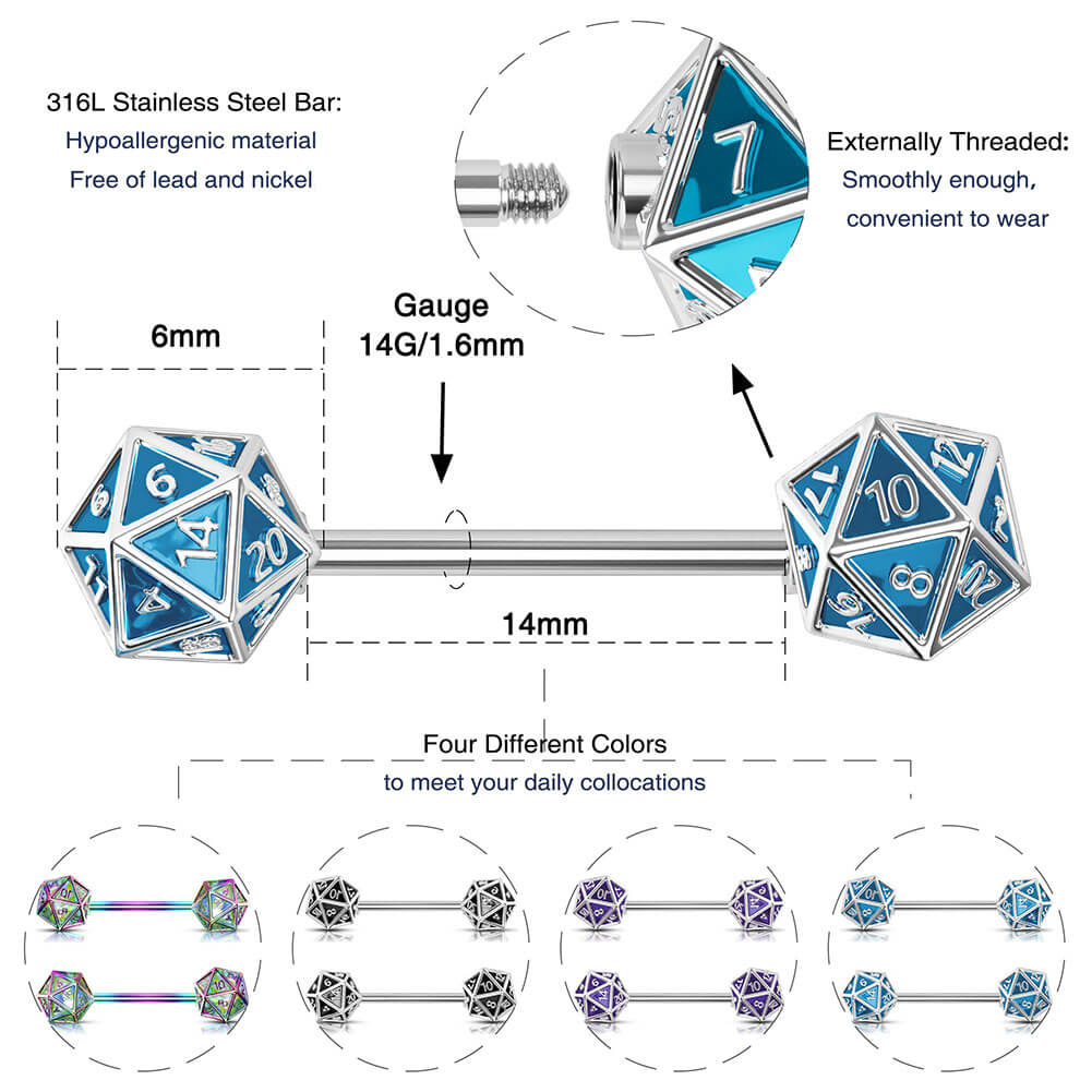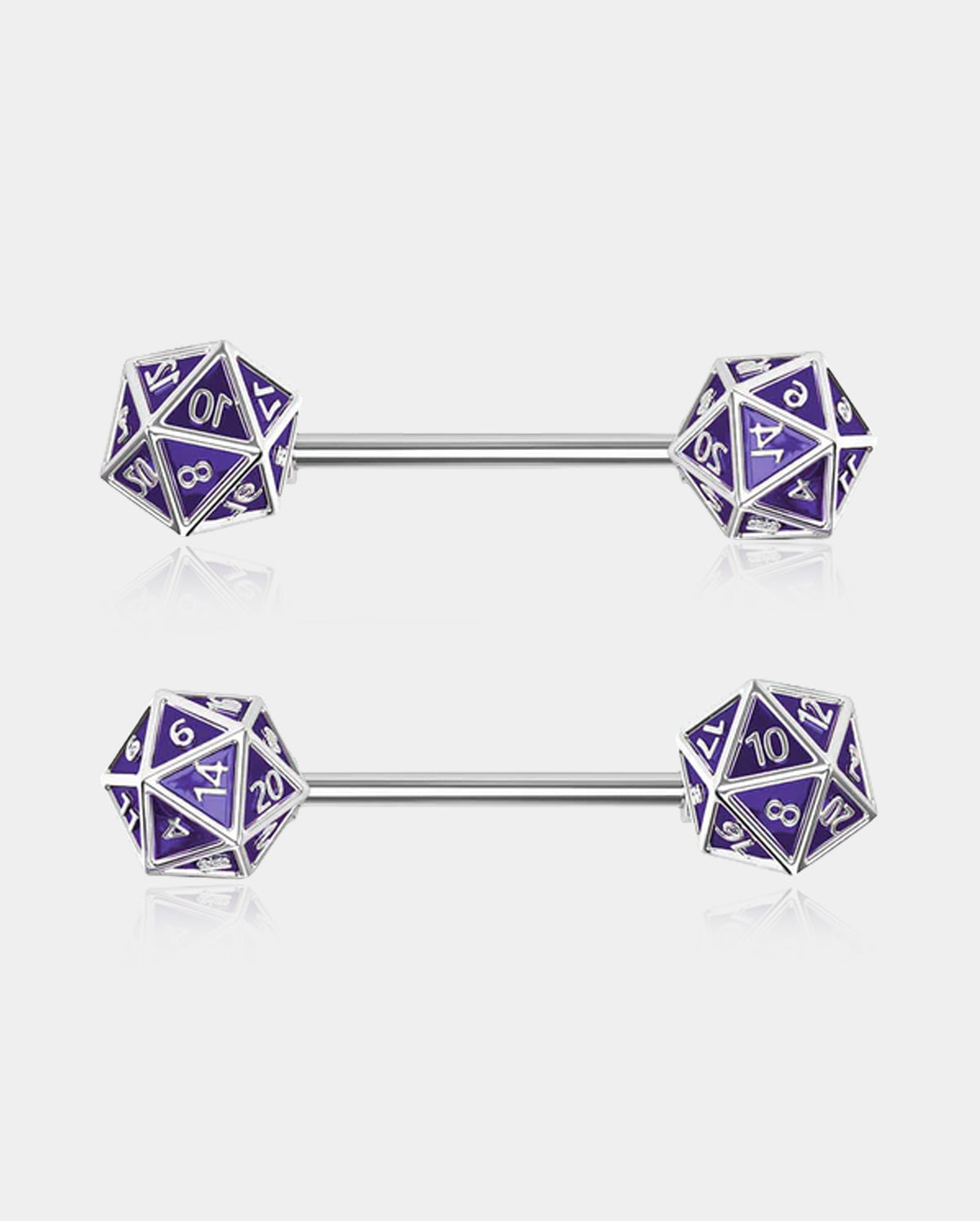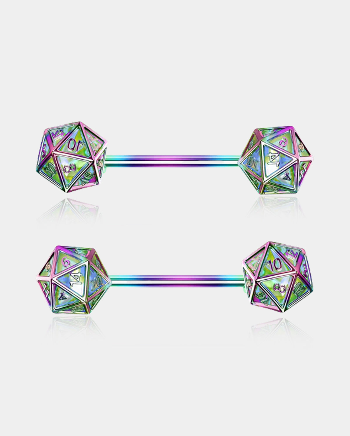 2Pcs D20 Dice Glitter Nipple Barbell Pack