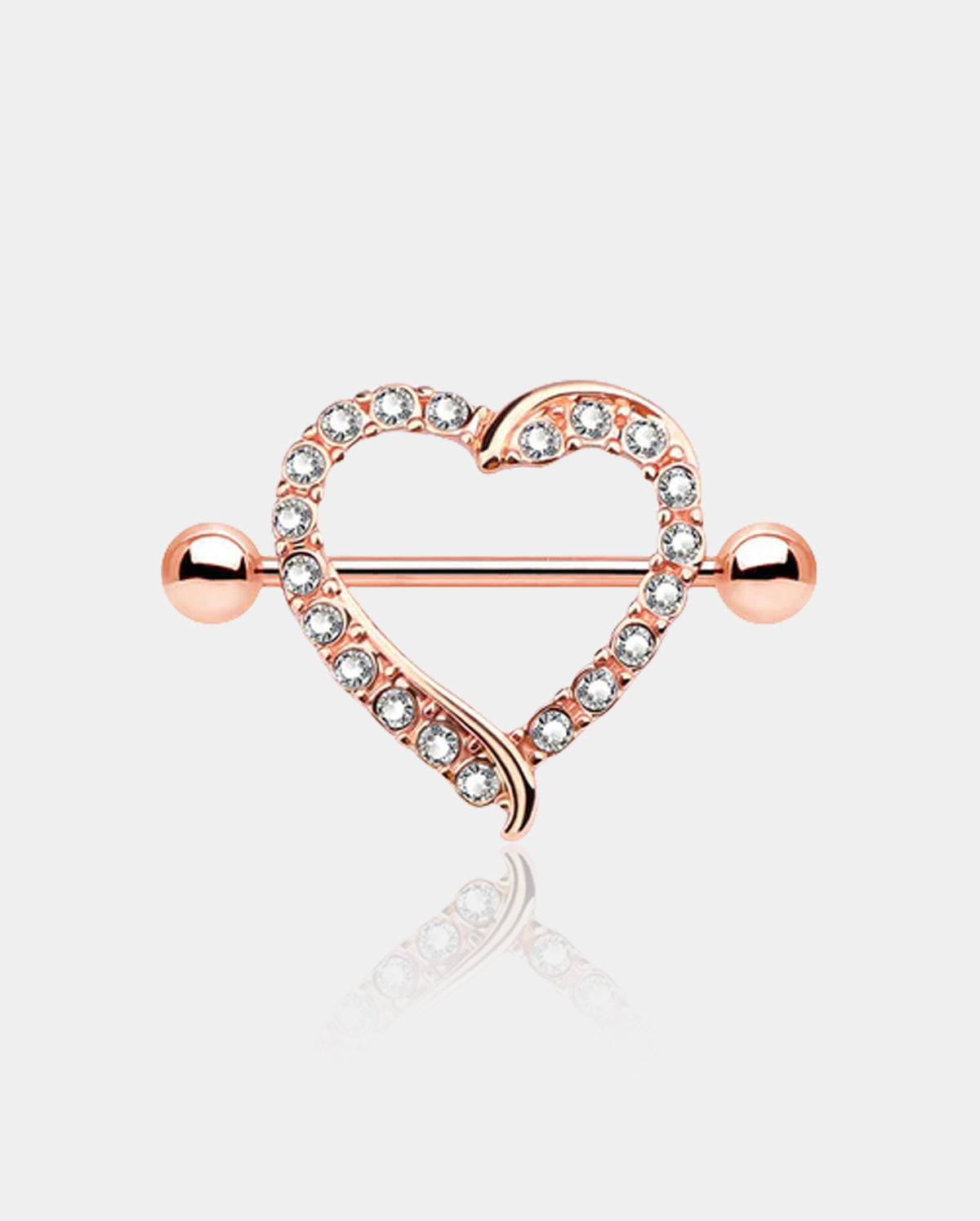 2PCS CZ Heart Shield Rose Gold Nipple Barbell