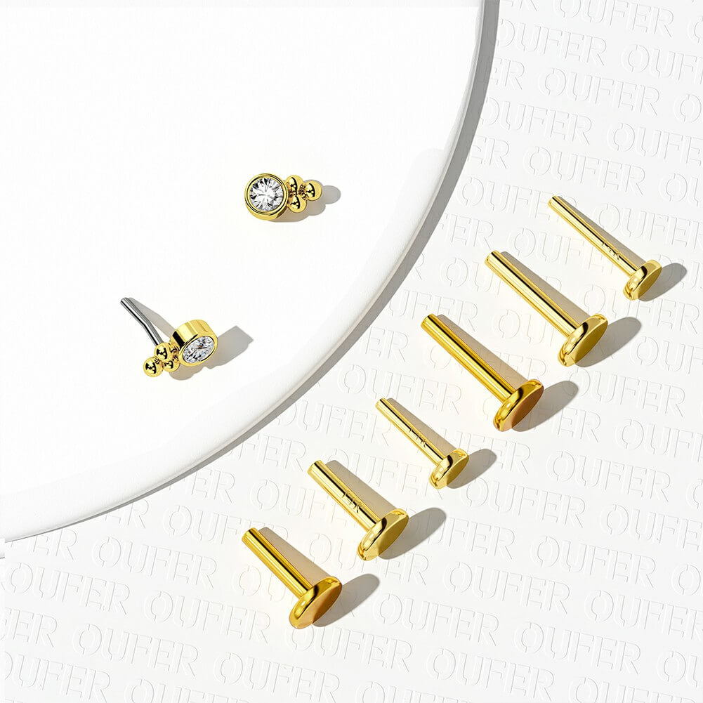 This 14K solid gold beads threadless push-in labret nose stud is very delicate and lovely. You can choose just one top no post, or you can go with a 14K gold labret nose post or a titanium labret post. The stainless steel pin has already been bent a little so that you can use it directly when you get it.