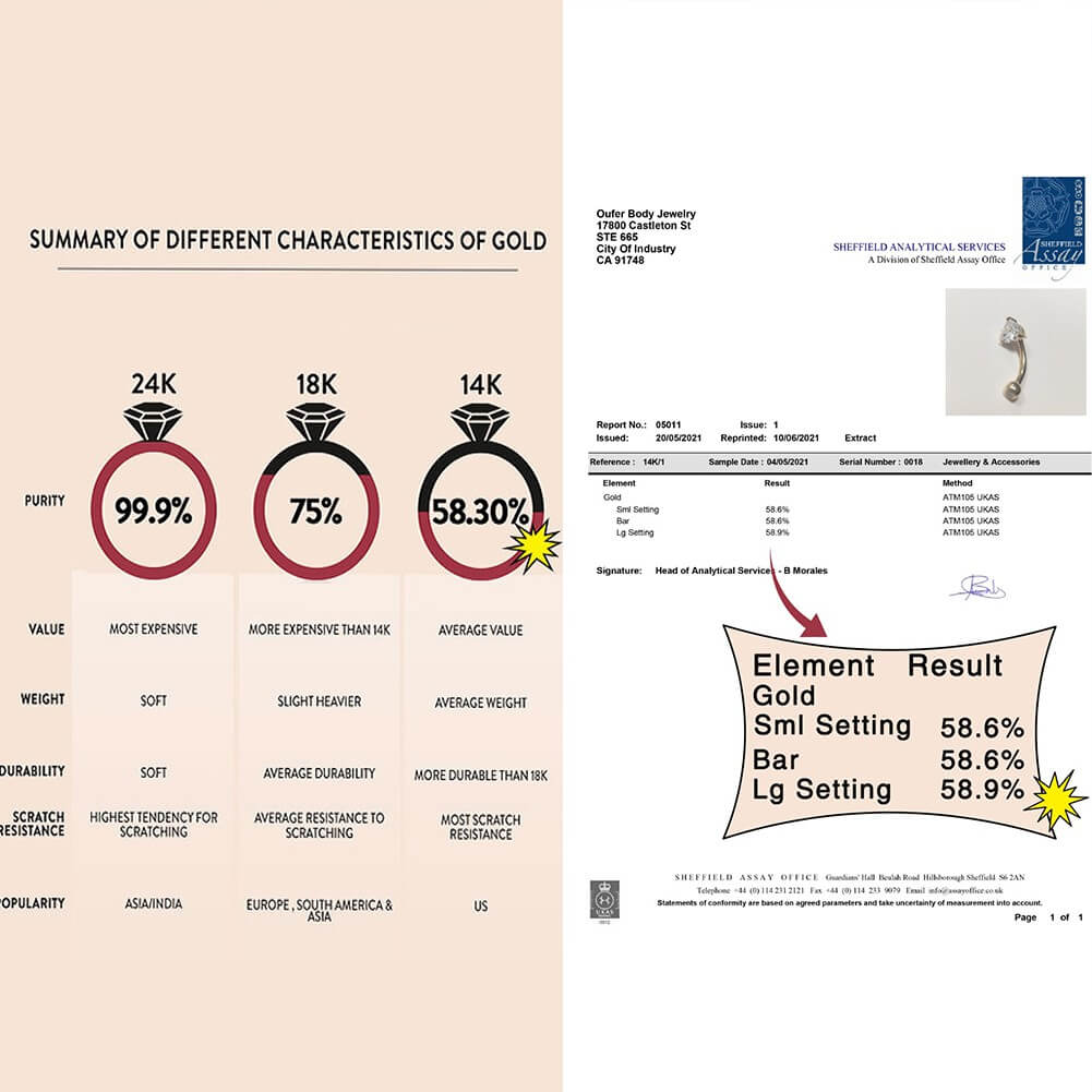 Exquisite 14 Karat real gold belly ring with high-quality cubic zirconia in the middle and top prong set. You will absolutely adore this belly ring for yourself or as a gift. This bar is internally threaded.