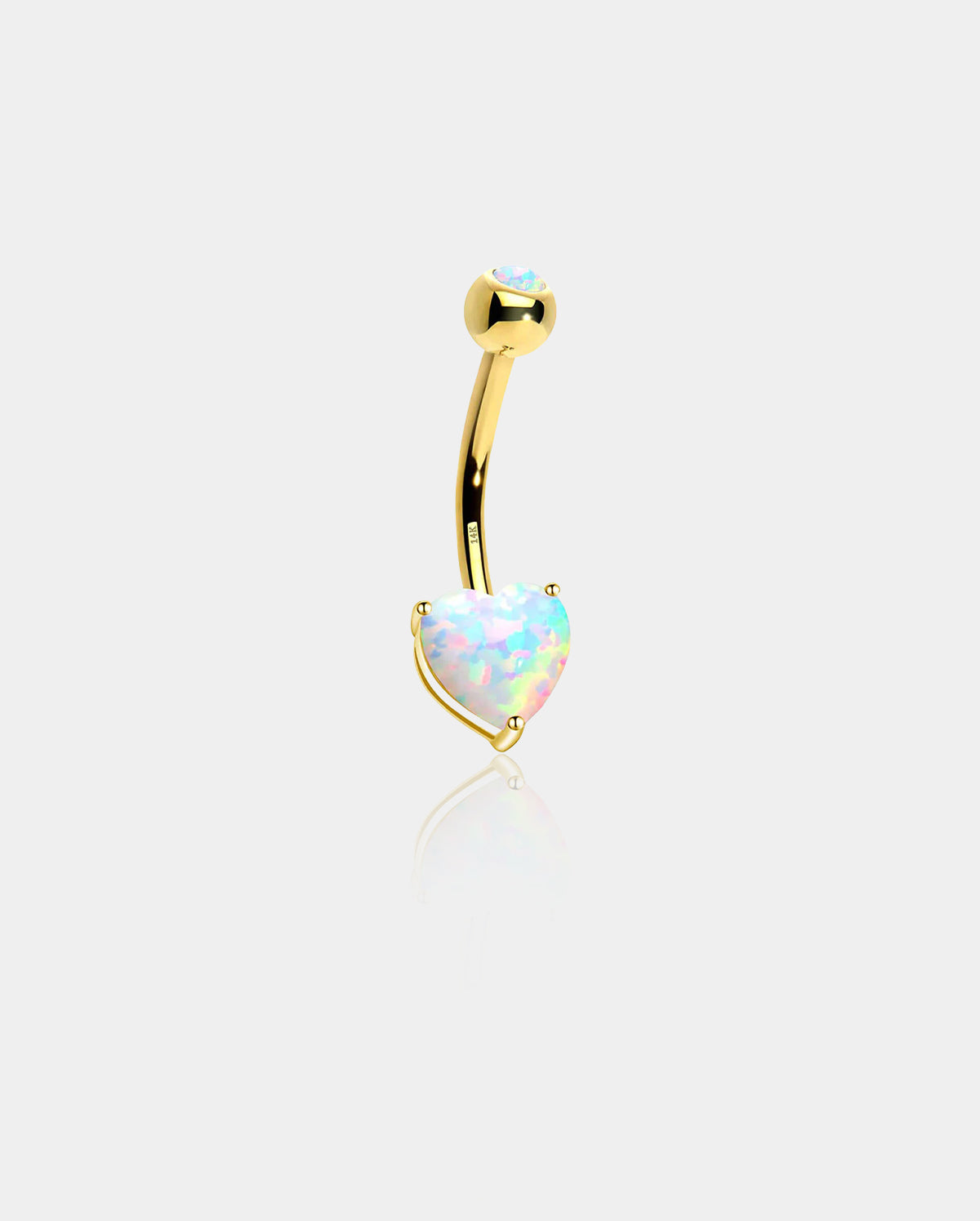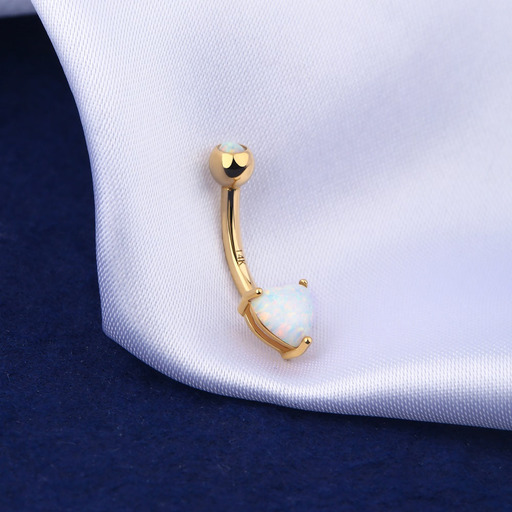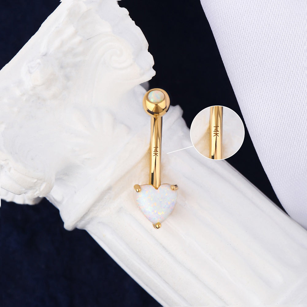 You won't miss this opal glitter yellow gold heart prong set belly button ring, which can satisfy you with all your unique dress-up!