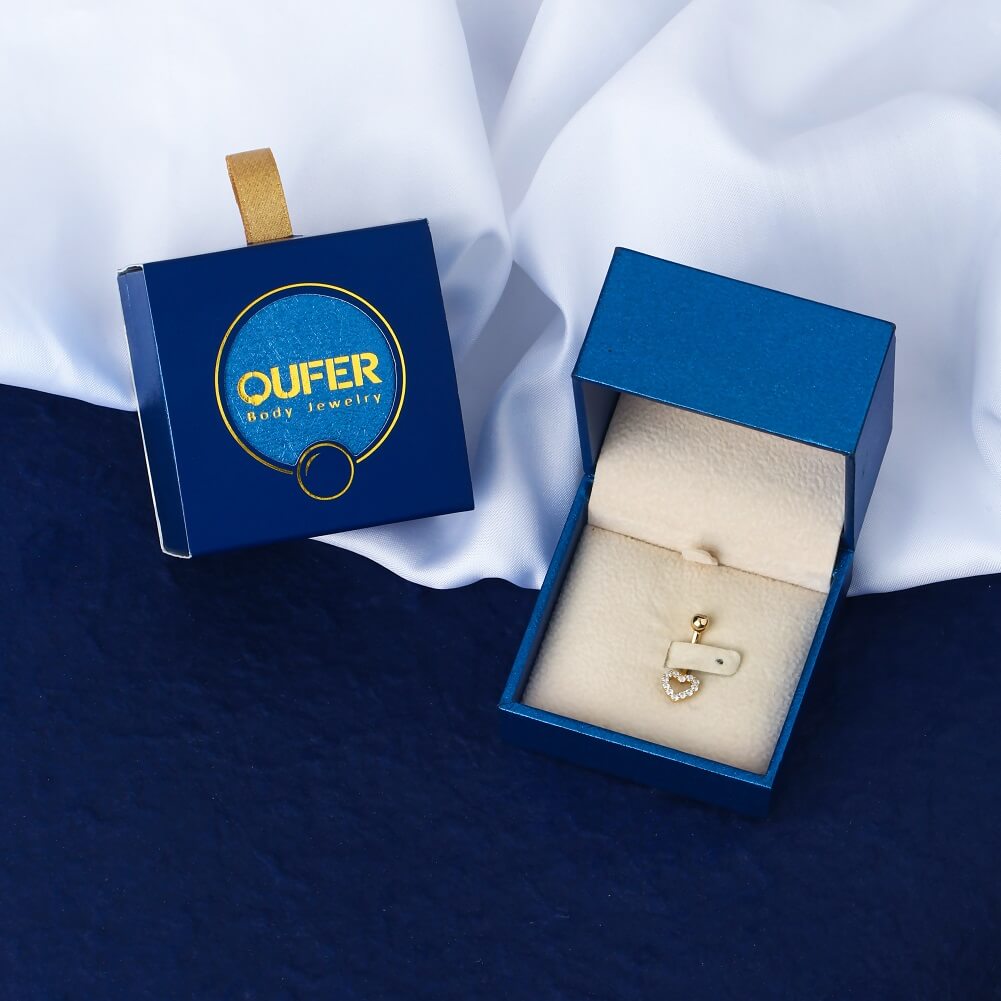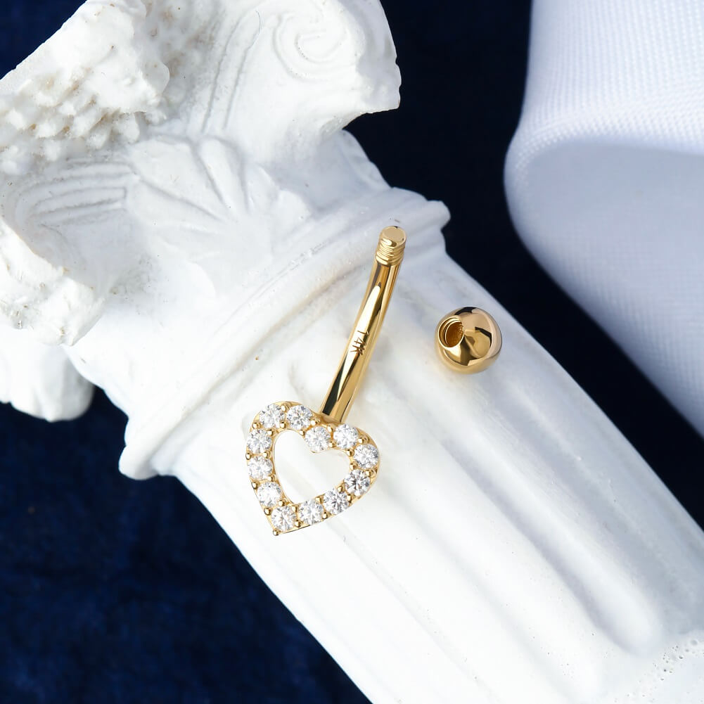 Add Elegance to your appearance with this super sparkling heart belly button ring! This navel ring carries a curved barbell made of 14k solid yellow gold and 5A cubic zirconia made of a heart shape.