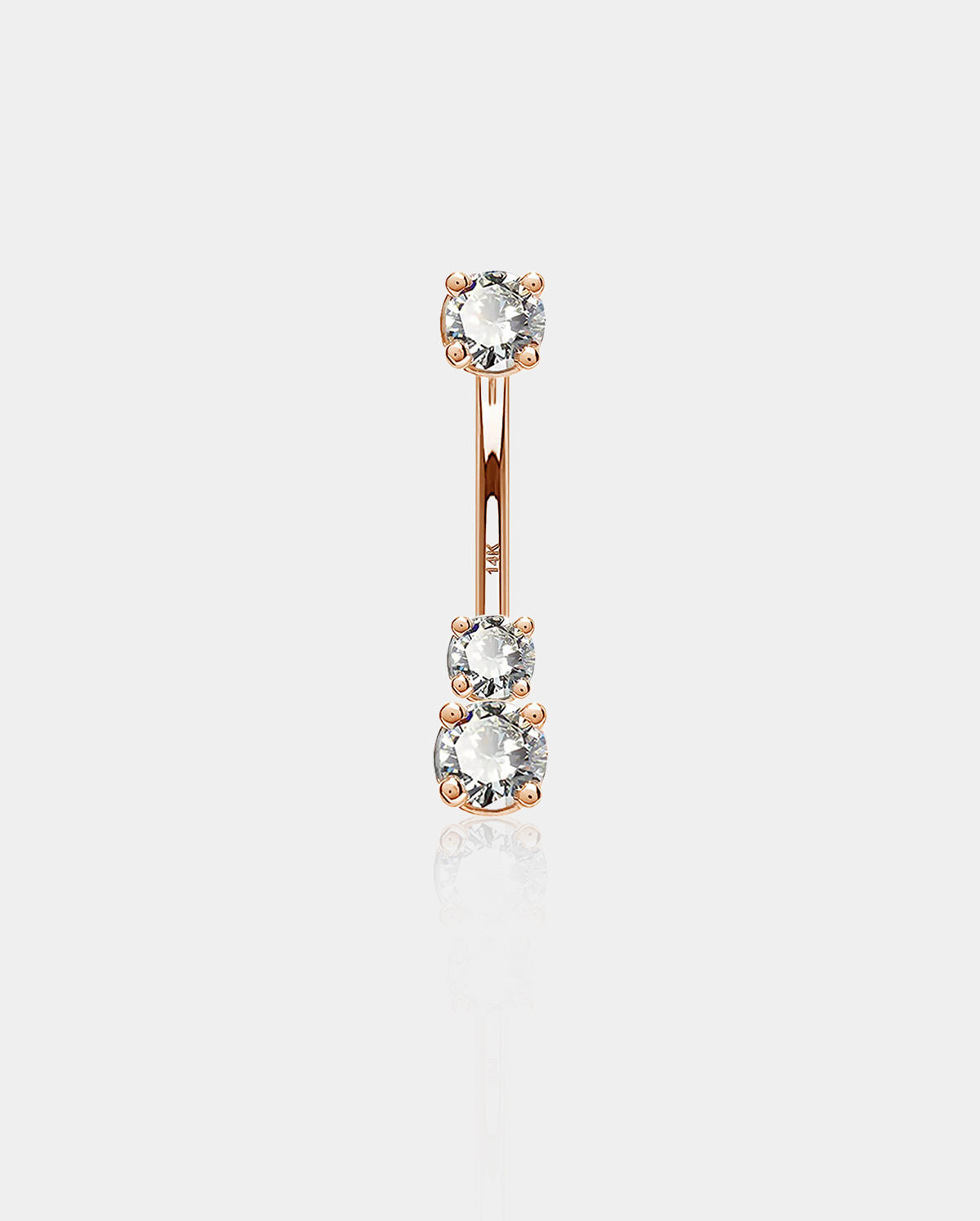 14K Rose Gold Three Round CZ Belly Ring