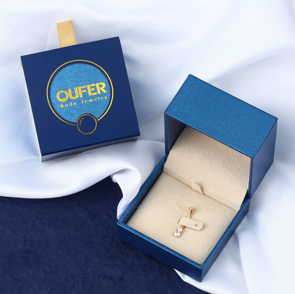 The rose gold belly button ring is decorated with three 5A+ clear CZ, dazzling and shiny, prong settings to ensure a firm inlay, doesn't need to worry about the CZ gem falling off.