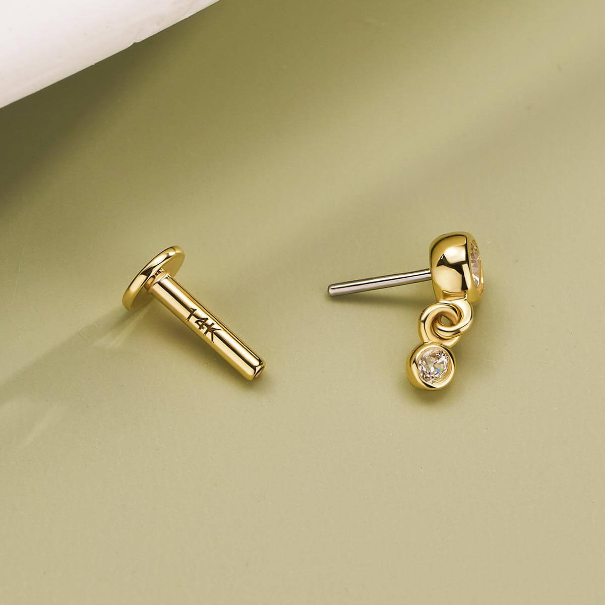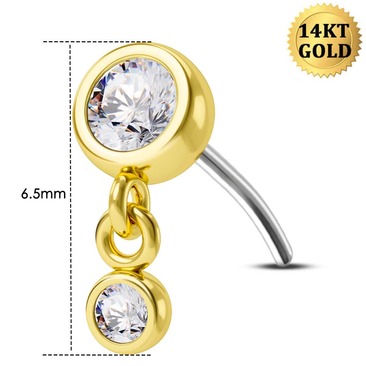 14K Gold CZ Bead Dangle Threadless Nose Stud