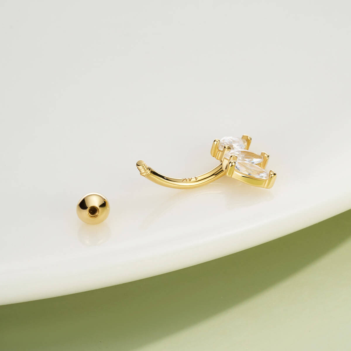 14K Gold Clear CZ Marquise Eyebrow Rook Ring