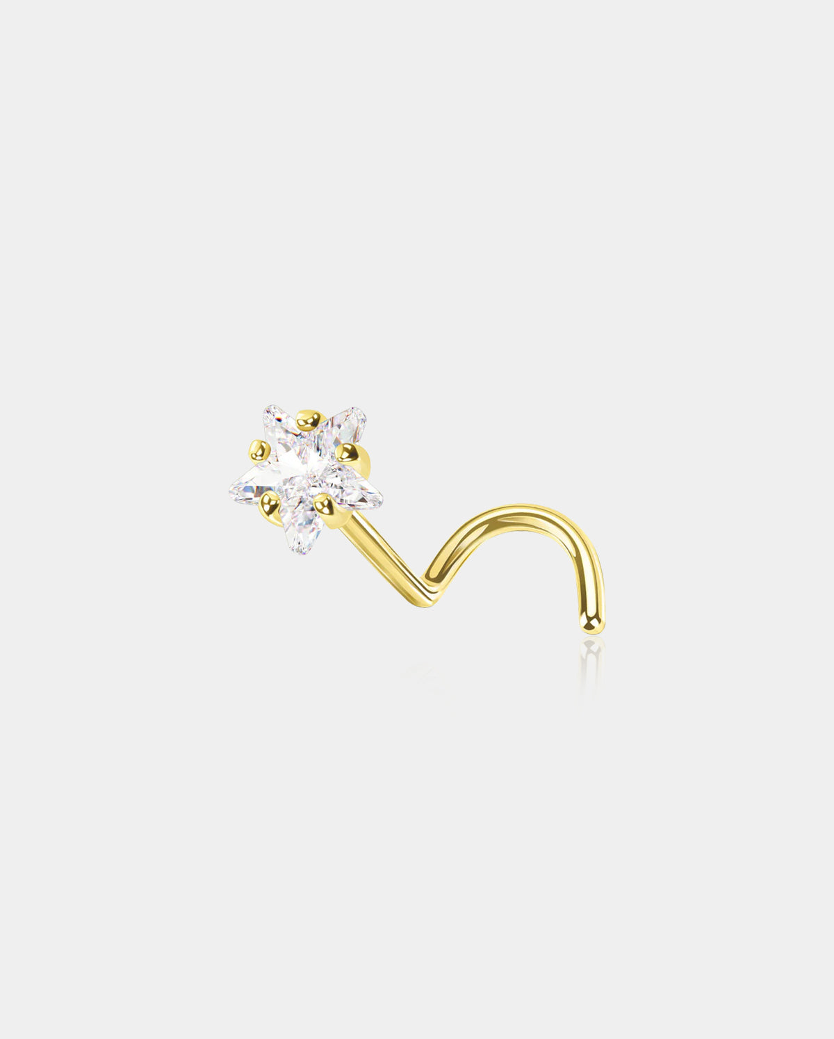 Crafted from the highest quality 14K solid gold, this star nose stud is designed with a modern and elegant S-shape that offers a secure fit. The star-shaped top is adorned with a dazzling cubic zirconia, adding a pop of sparkle and radiance.