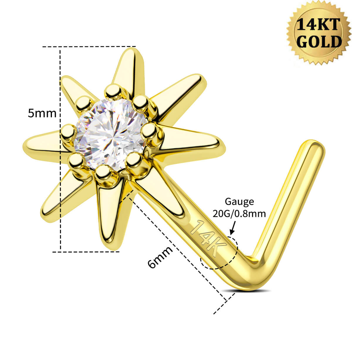 Made from high-quality 14-karat solid gold, this nose stud boasts a rich, lustrous finish that ensures both durability and timeless appeal.