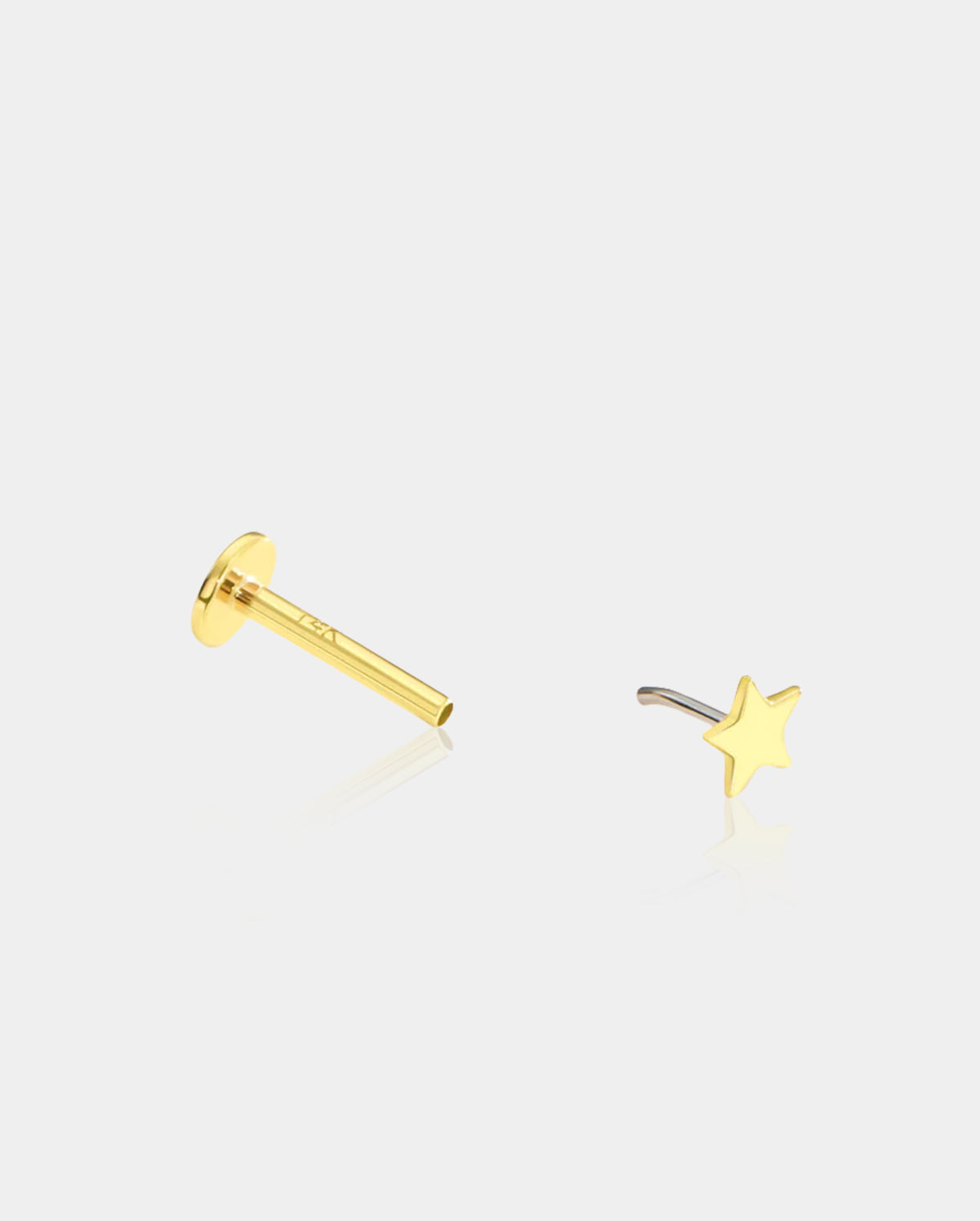 14K Gold Flat Star Threadless Nose & Earring Stud