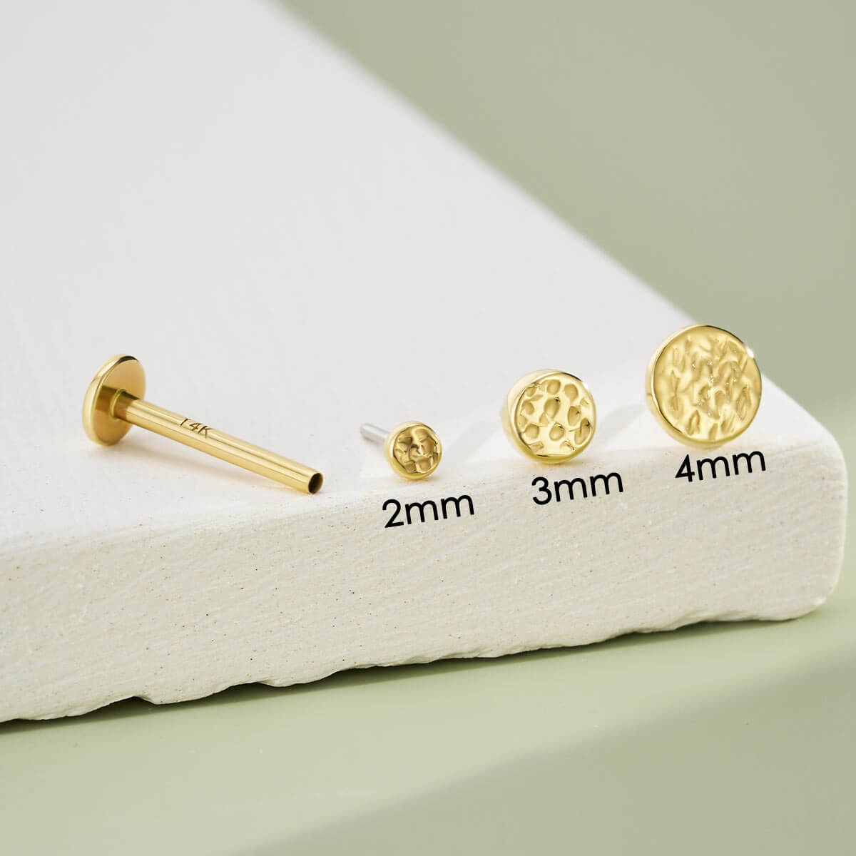 14K Gold Hammered Disc Threadless Cartilage Stud