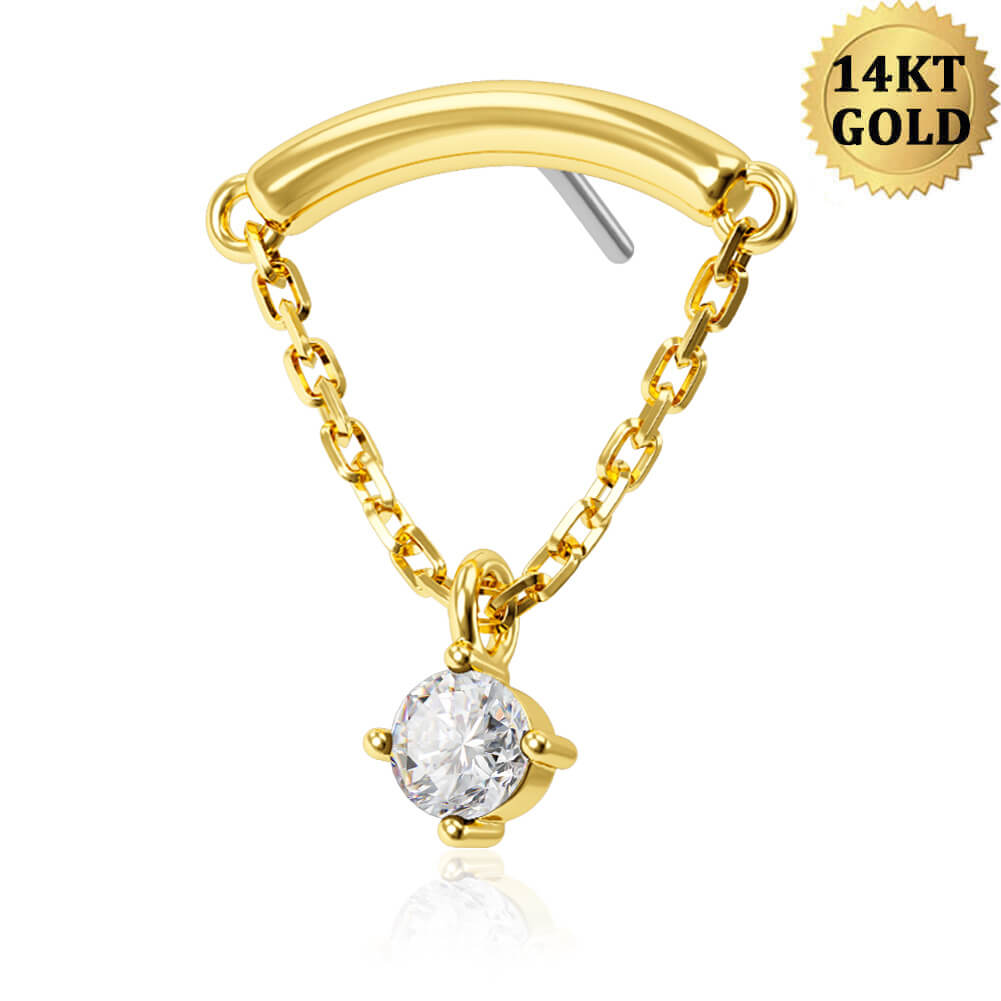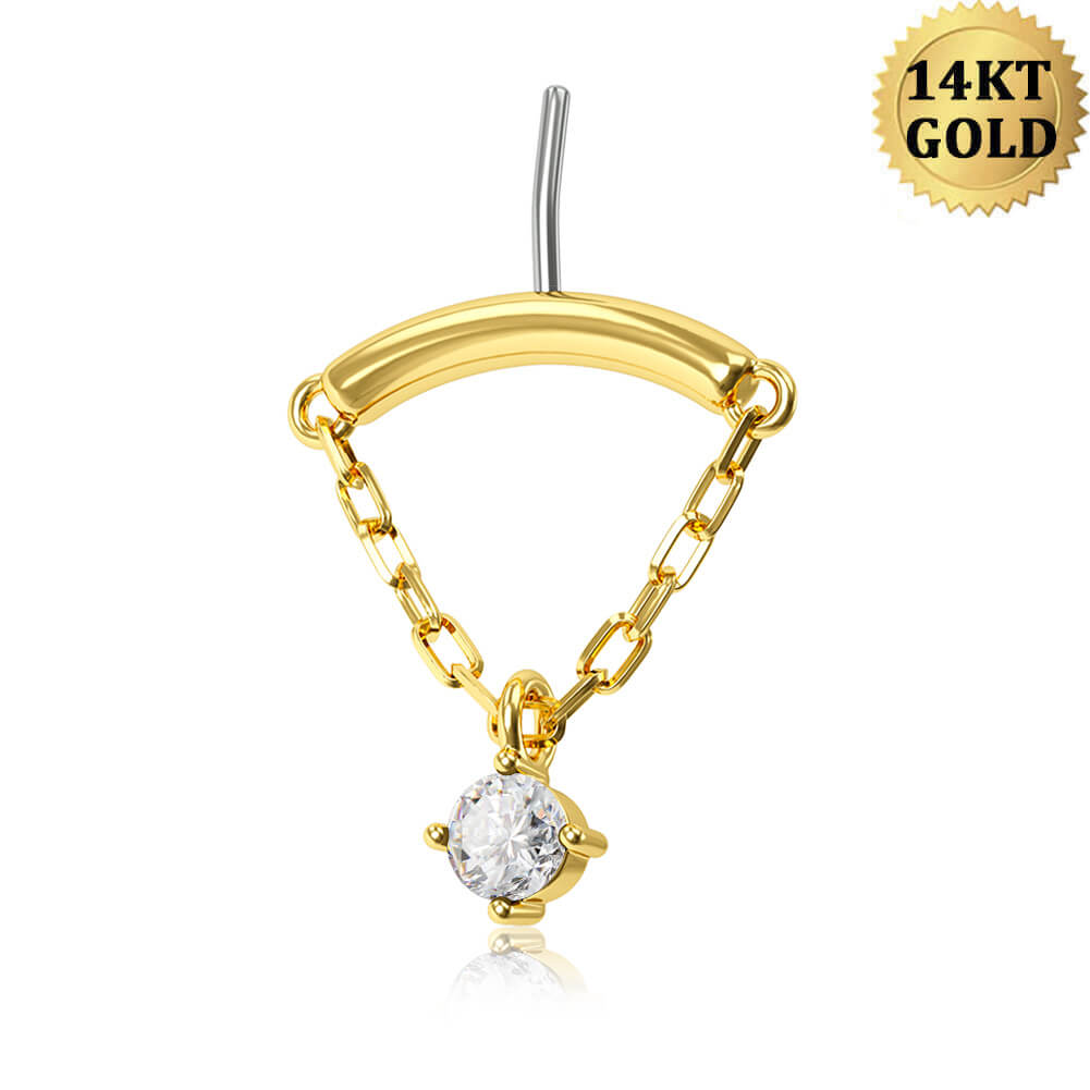 The cartilage chain earring is an exquisite piece of jewelry. It is made of solid 14K gold, ensuring its durability and timeless beauty. The earring features a threadless push-pin design, allowing for easy and secure attachment to the helix of the ear.