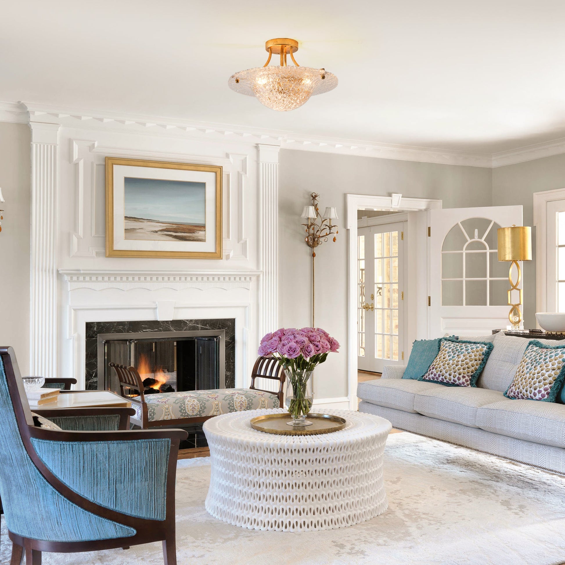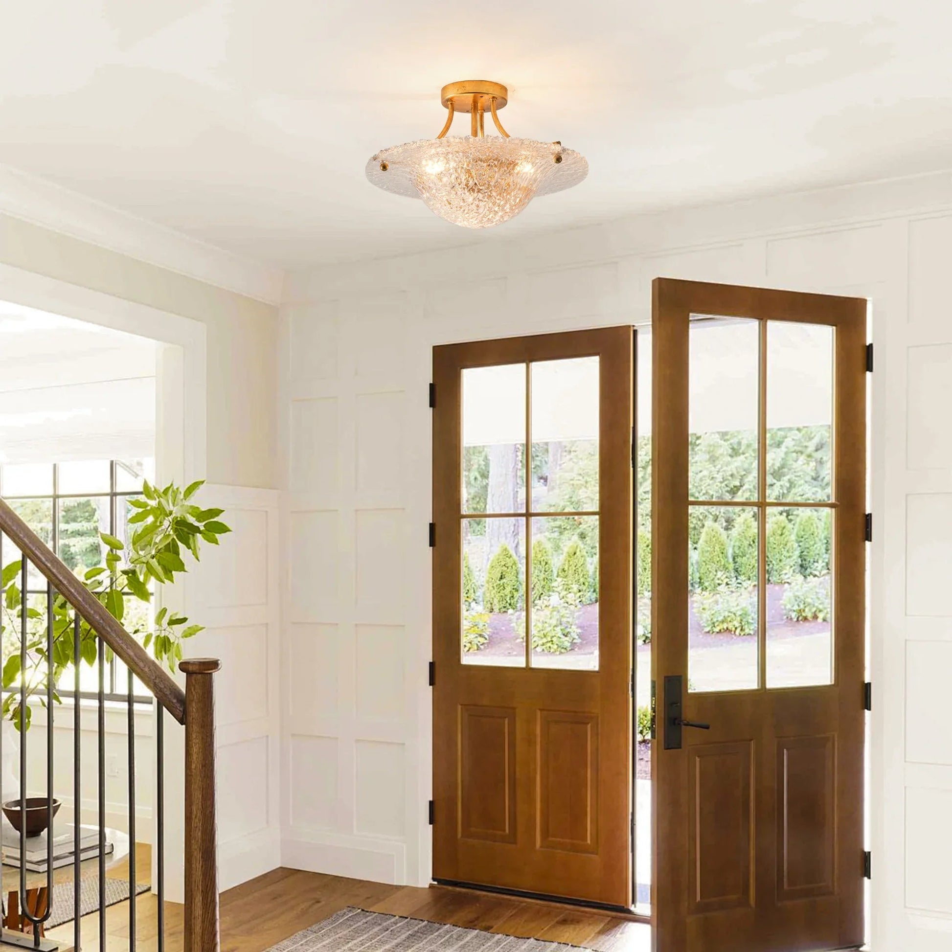 【Modern Design】: Features a contemporary bowl-shaped design with a warm golden finish, designed for secure semi-flush ceiling installation in dry indoor rooms (bedroom, living room).