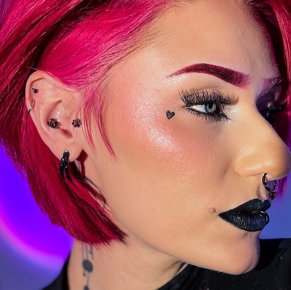 This internally threaded Halloween lip ring studs set is a wholesome gothic vibe by itself. Although they're delicate yet still make a strong statement of personality and fierce. For the ones who employ the dark force freely or who love spider elements, this set is just perfect for you.