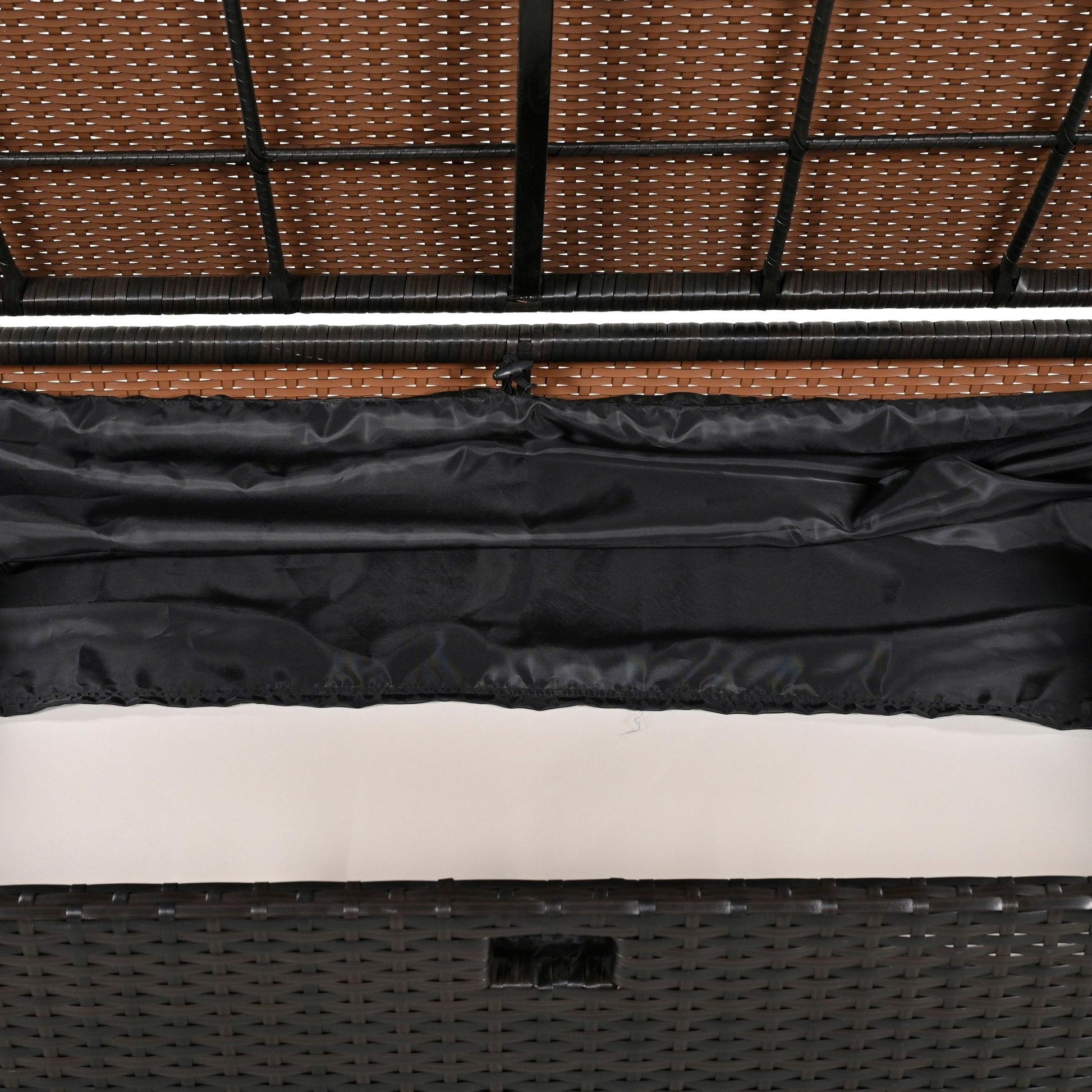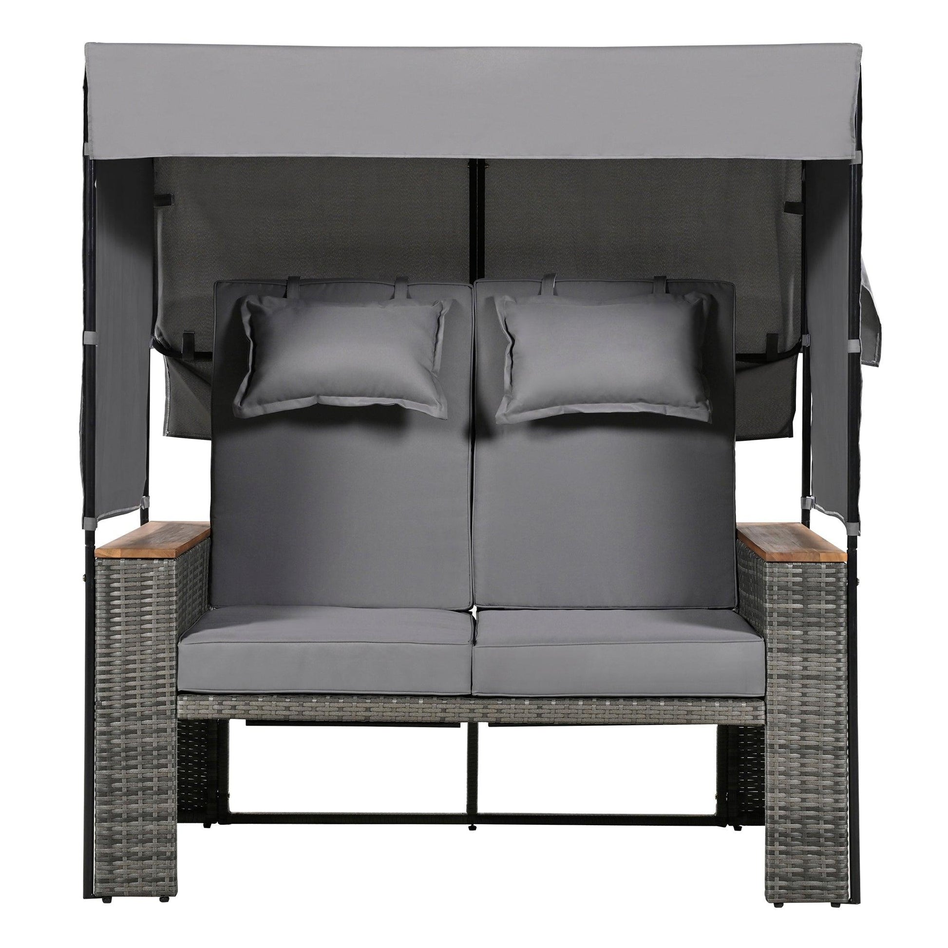 2-Piece Outdoor Rattan Daybed with Bench Lounge Roof Set and Cushions for Poolside, Backyard and Garden