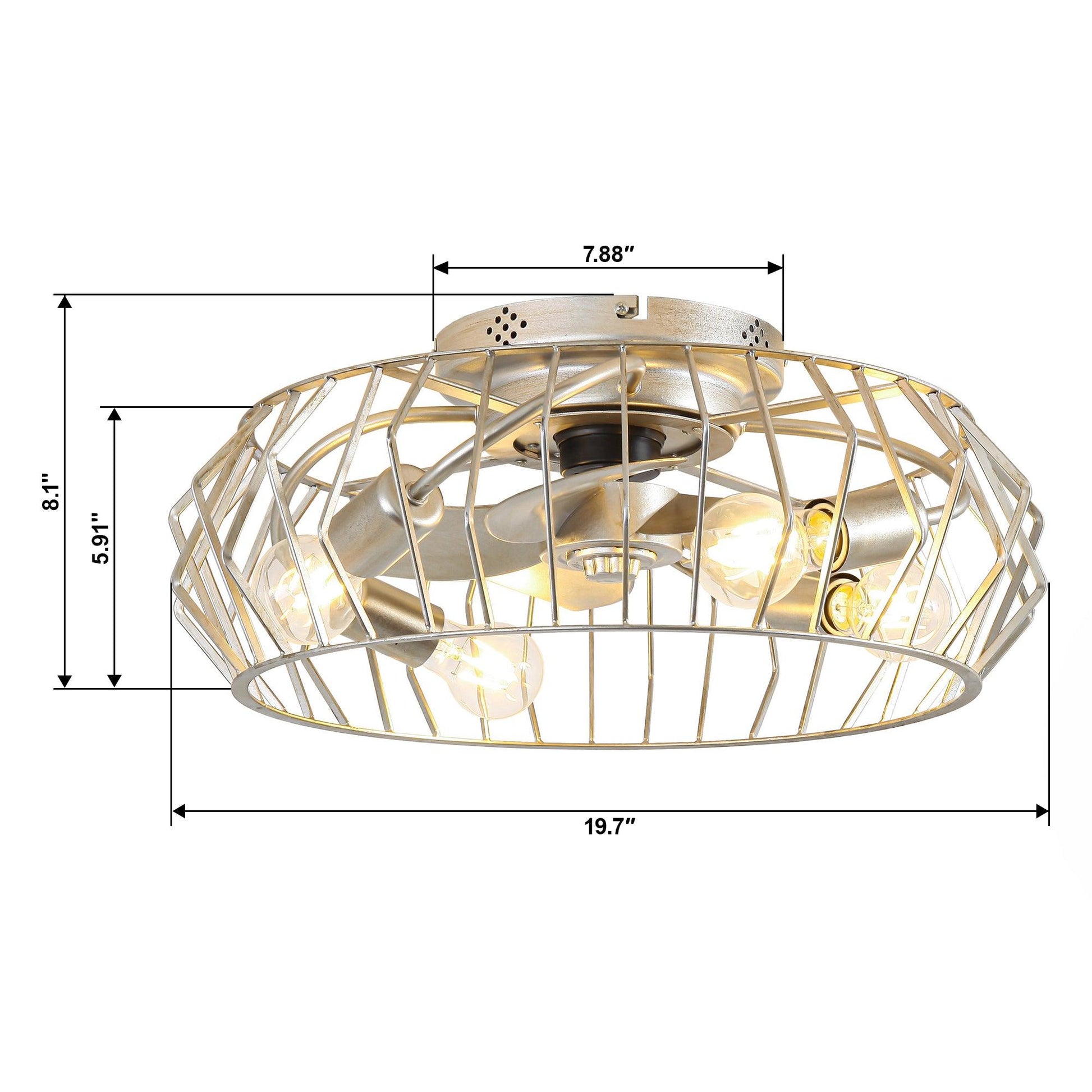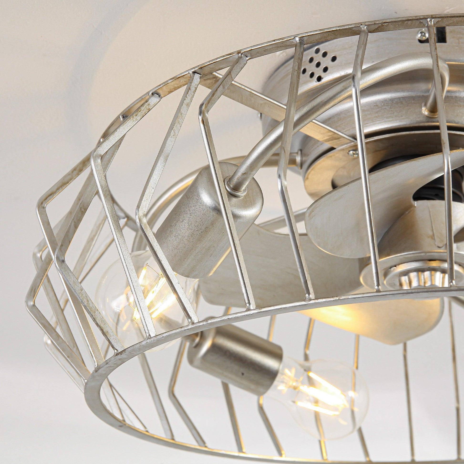 20 Inch Silver Flush Mount Ceiling Fan with Light APP and Remote Control