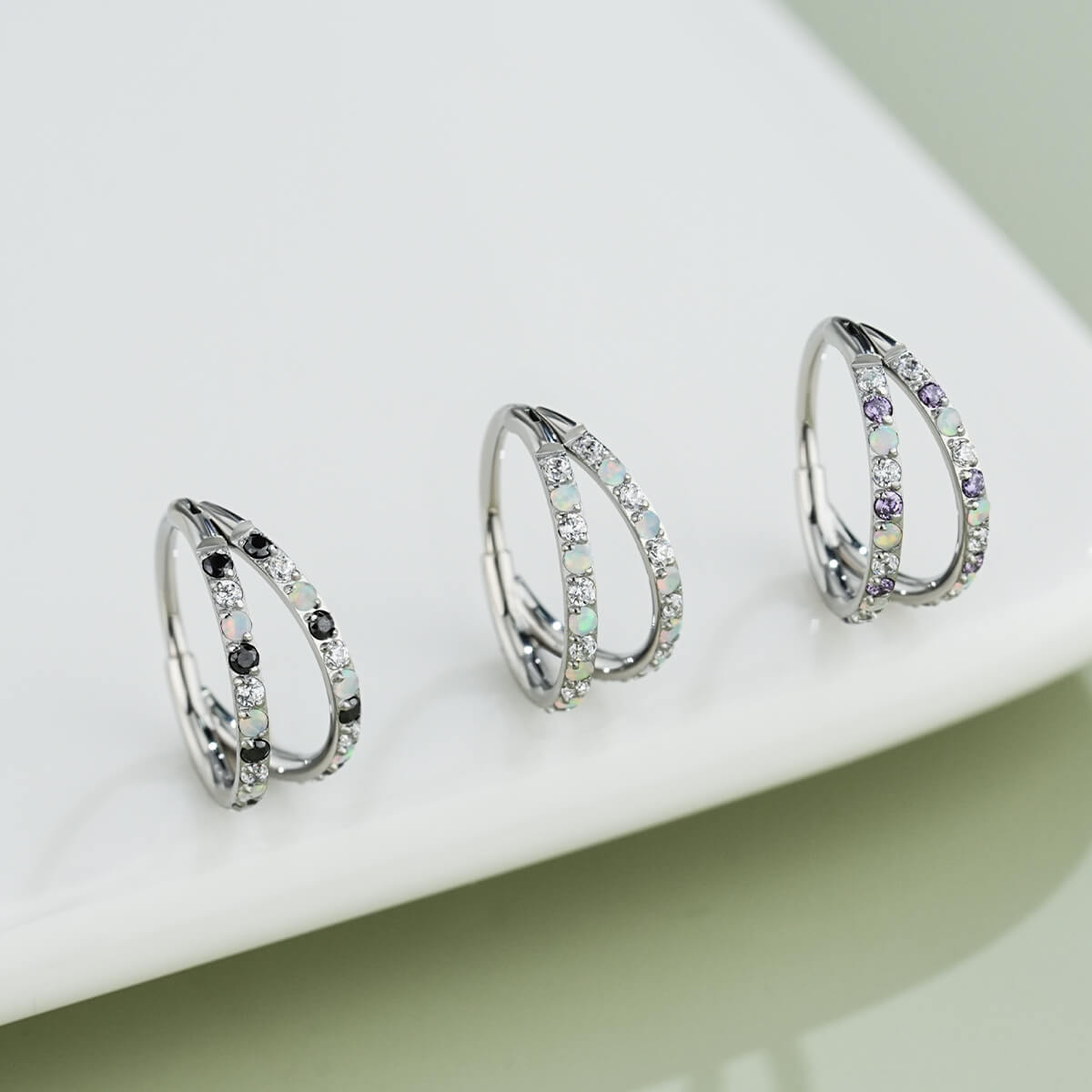 Alternating Opal/ CZ Double Hoop Nose Ring
