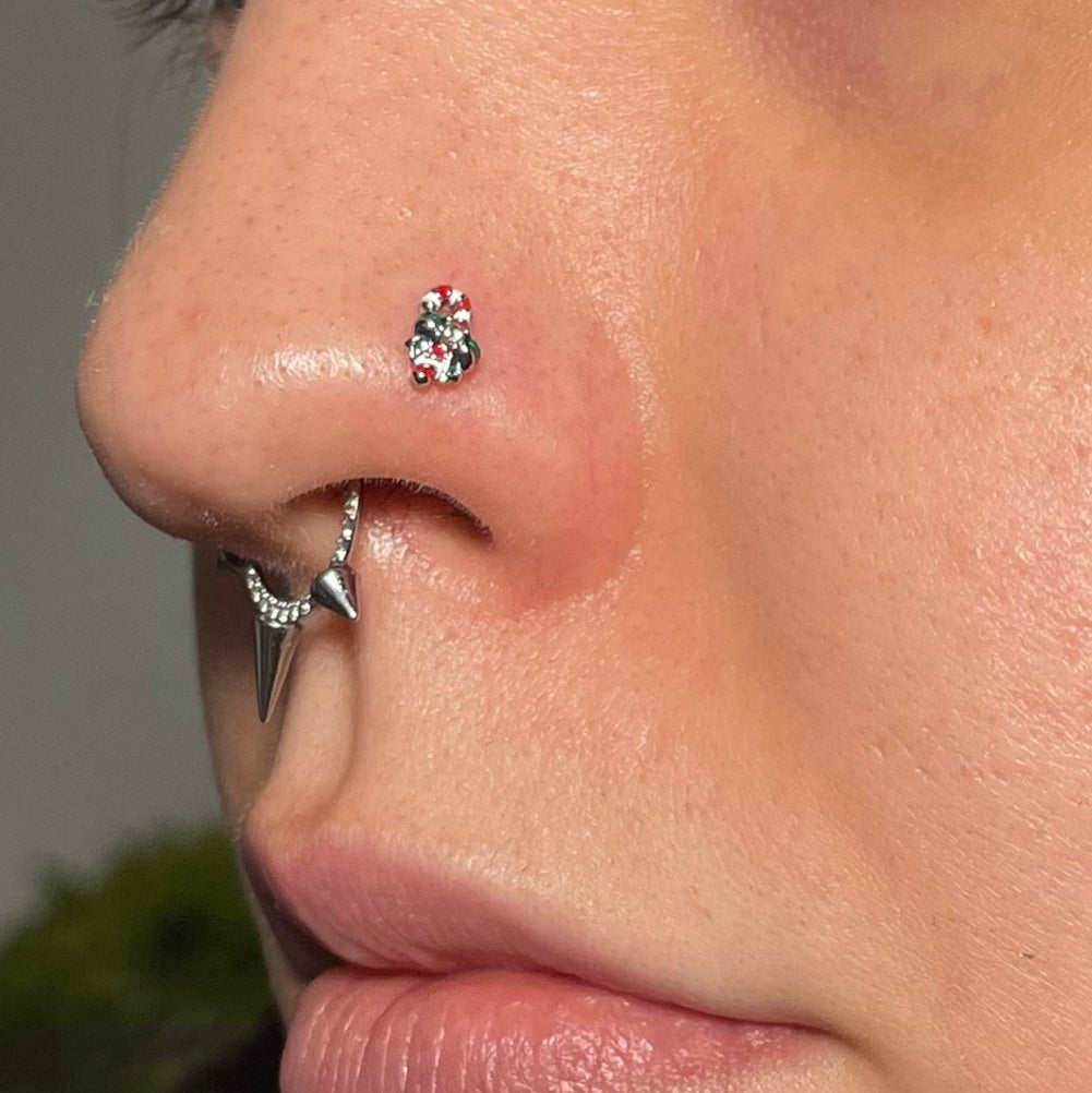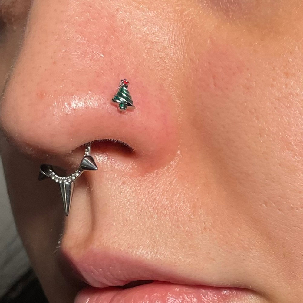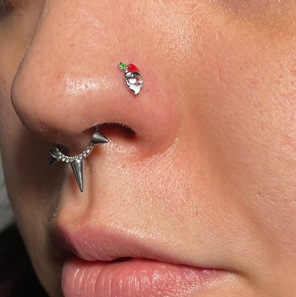 They're like tiny ornaments for your nose, adding a sprinkle of magic and a dash of celebration to your look. So, let your nose join in the festive fun with this pack of holiday-themed Christmas nose ring studs!