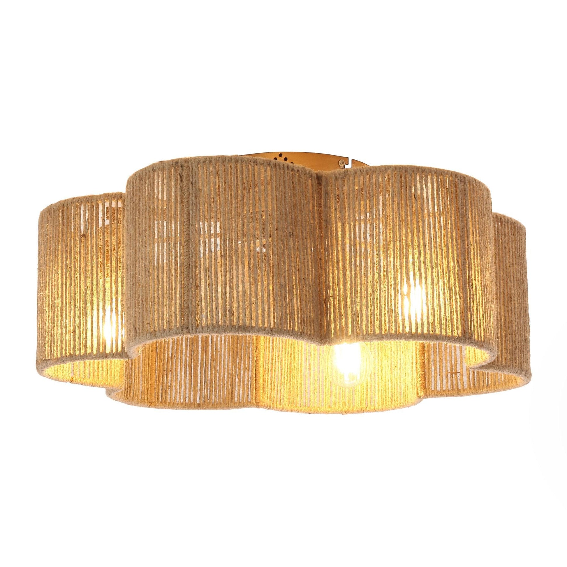21 Inch Golden Flower-shape Farmhouse Rattan Flush Mount Ceiling Fan with Light APP and Remote Control
