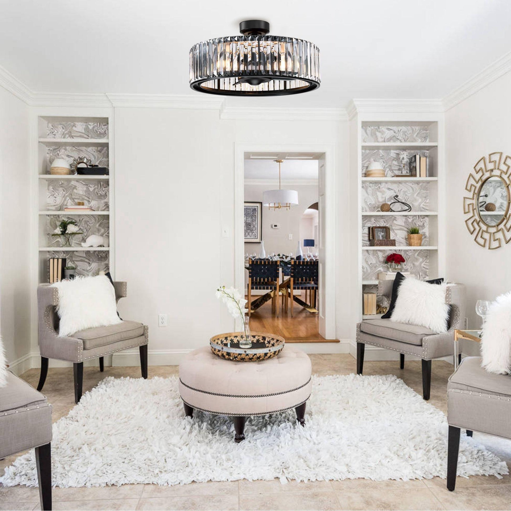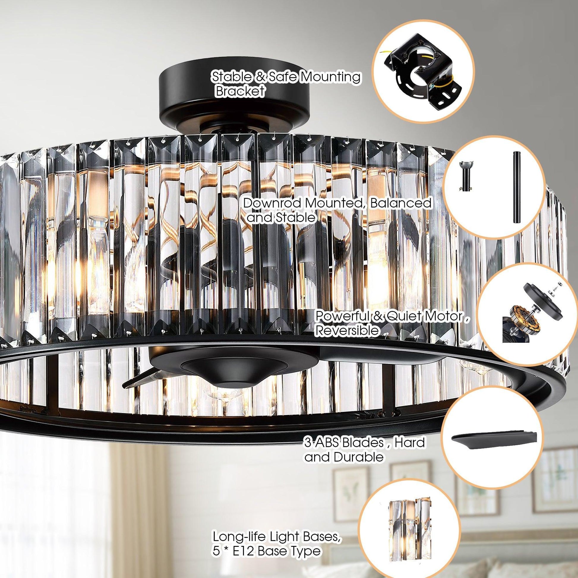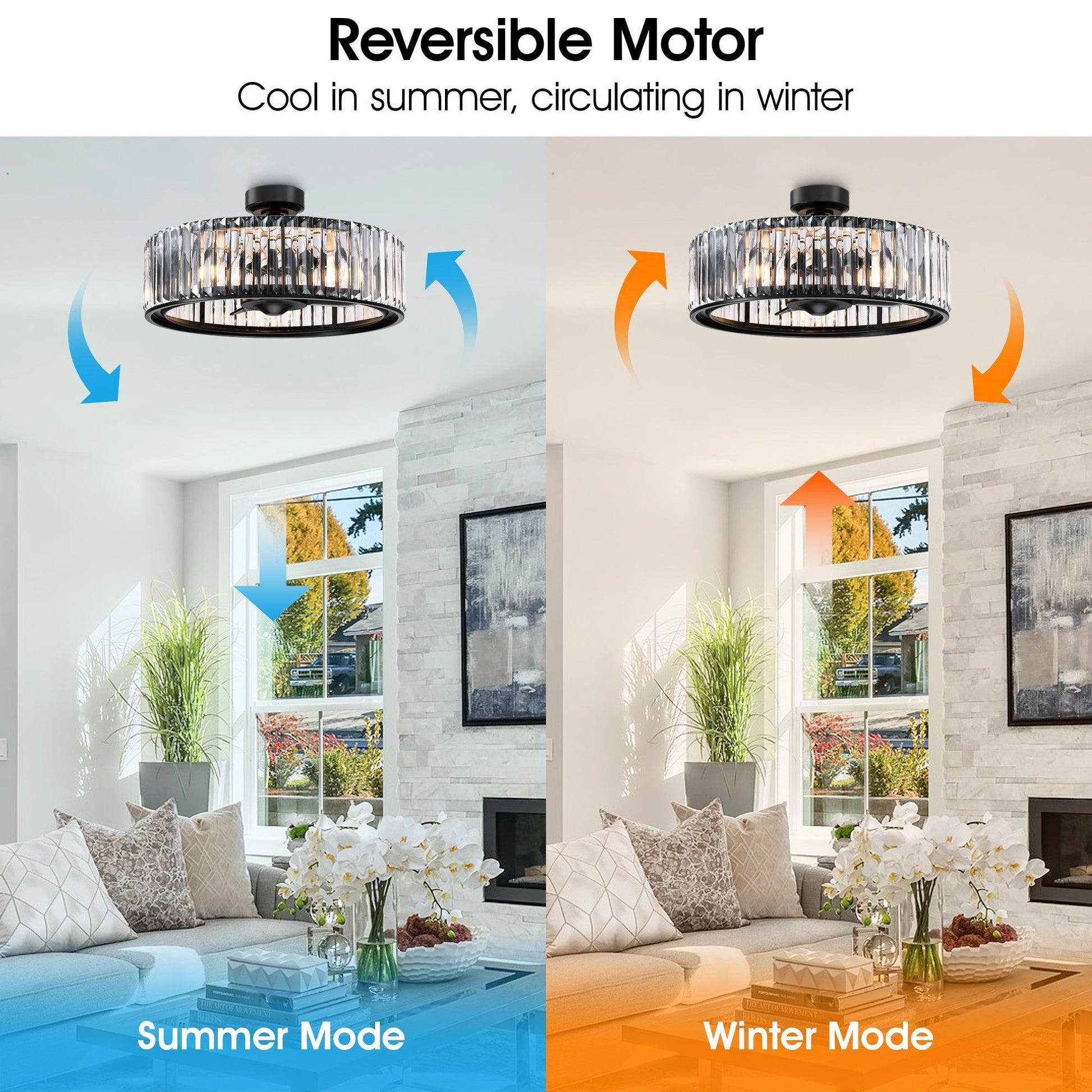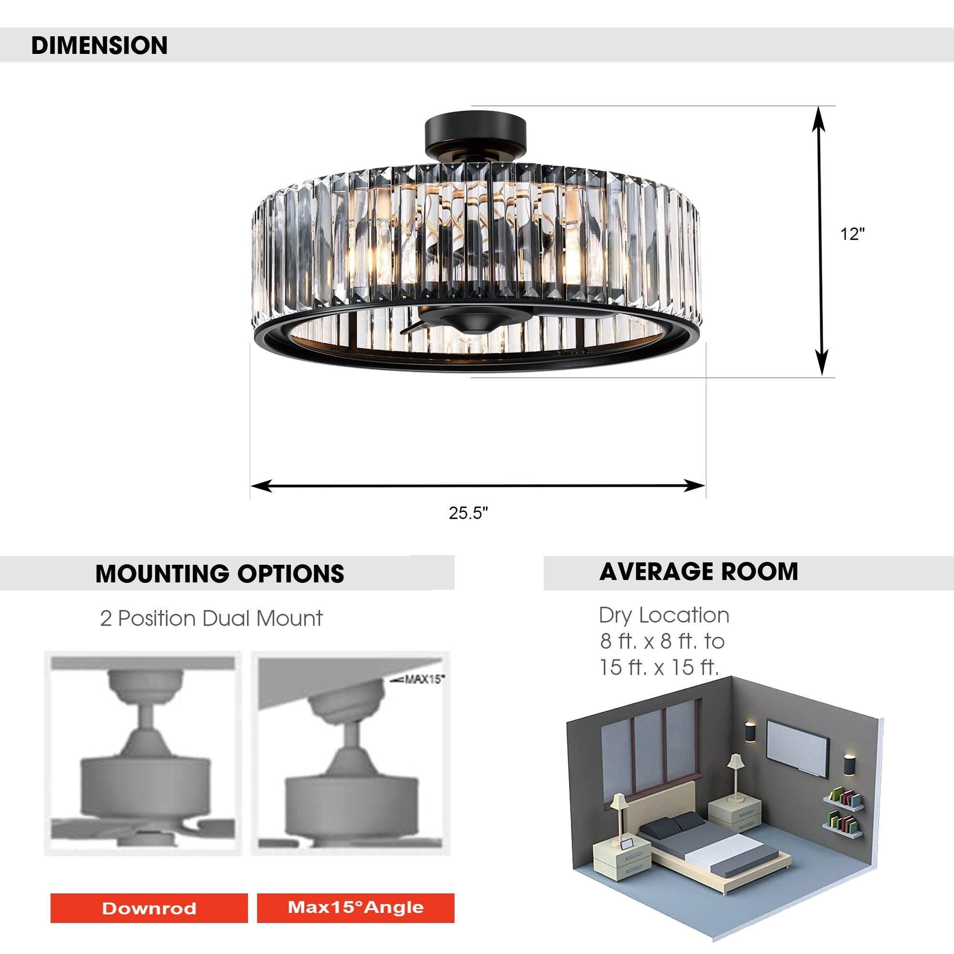 26" Henslee Modern DC Motor Reversible Crystal Fandelier Ceiling Fan with Lighting