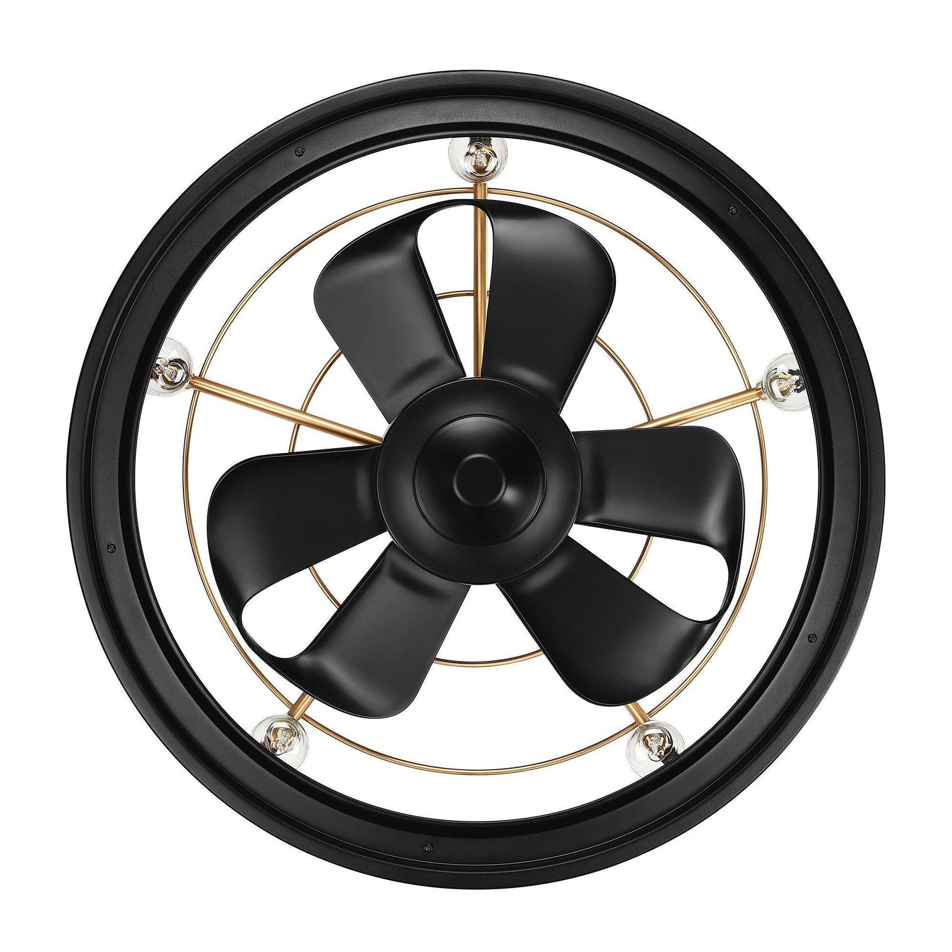 This 25.5 in. matte black finished metal double cage fandelier ceiling fan light with 3 blades and 5 E12 light bases (bulbs not included), perfectly decorates farmhouse, industrial, vintage, rustic, and modern style homes. The reversible motor can not only bring you coolness in summer but also promote heat circulation in winter while a powerful motor, has a large air volume but unnoticeable noise. The remote control included with the fan light can be quickly and easily adjusted for on/off and speed, easy to install and use.