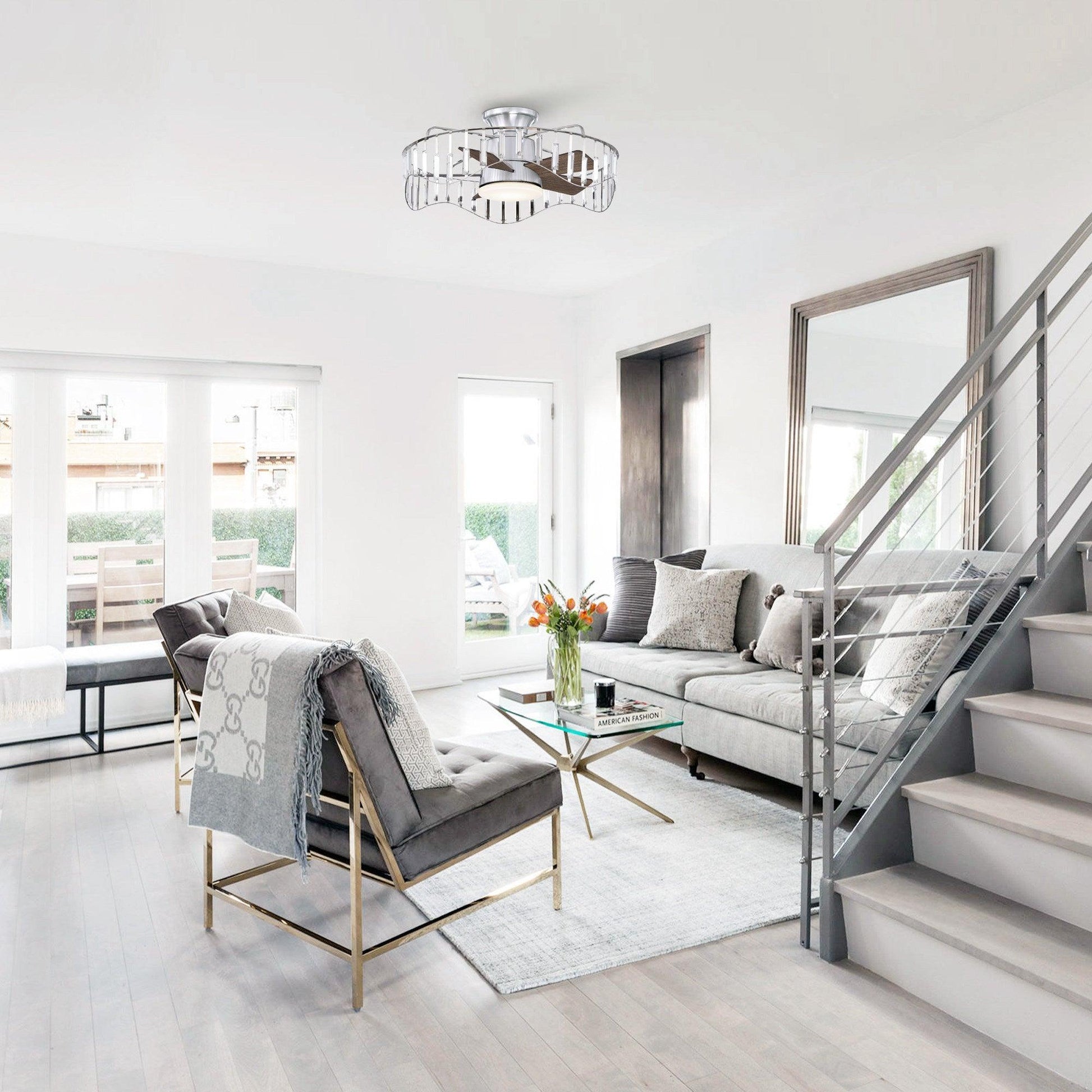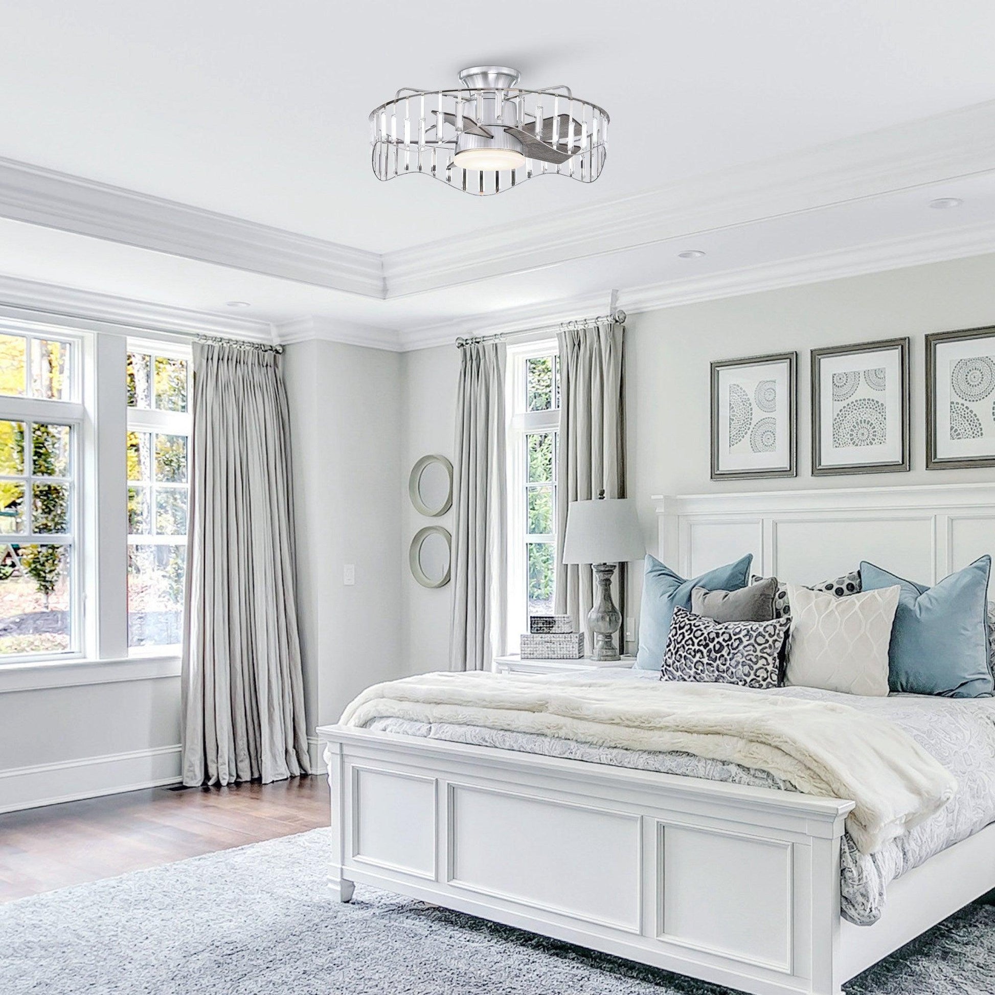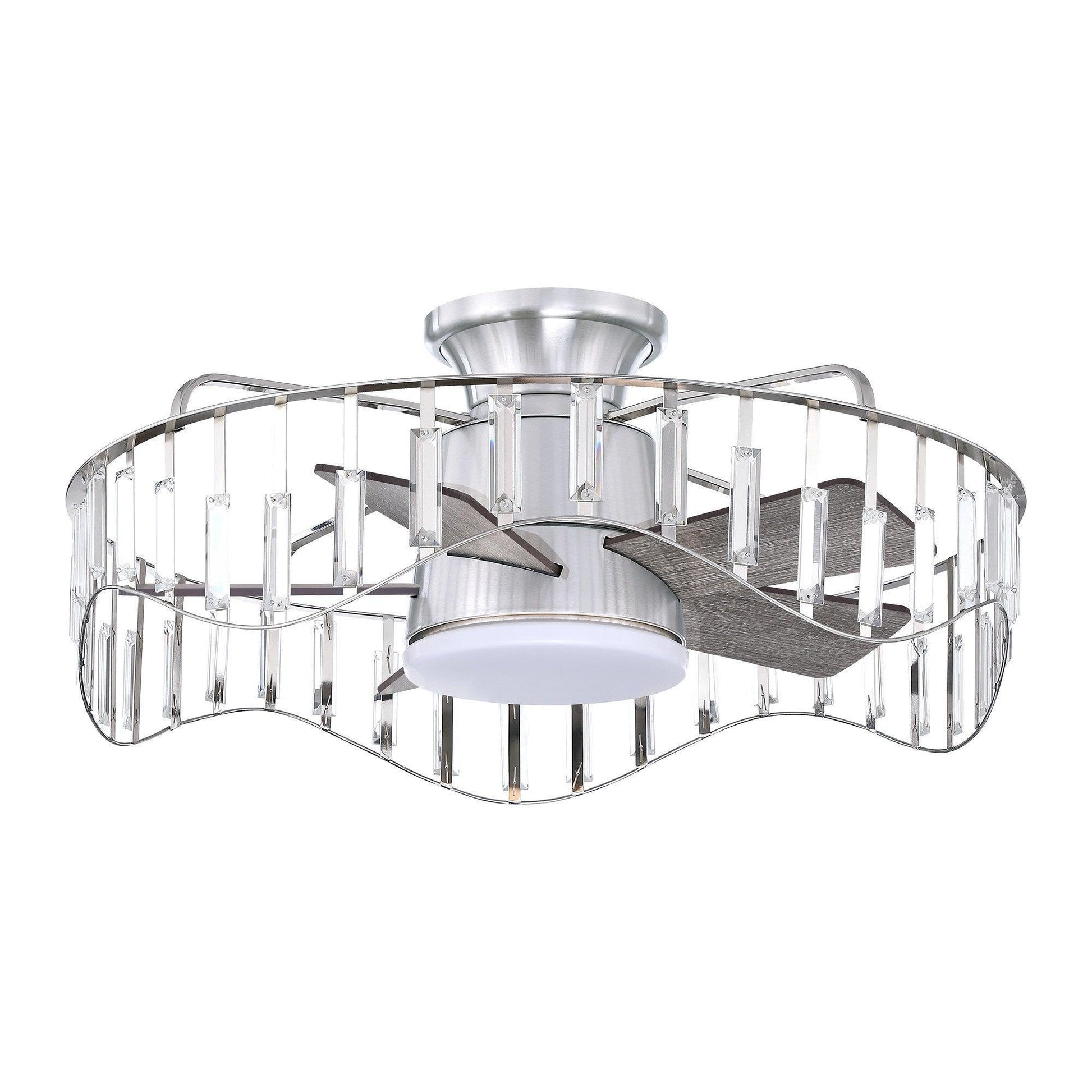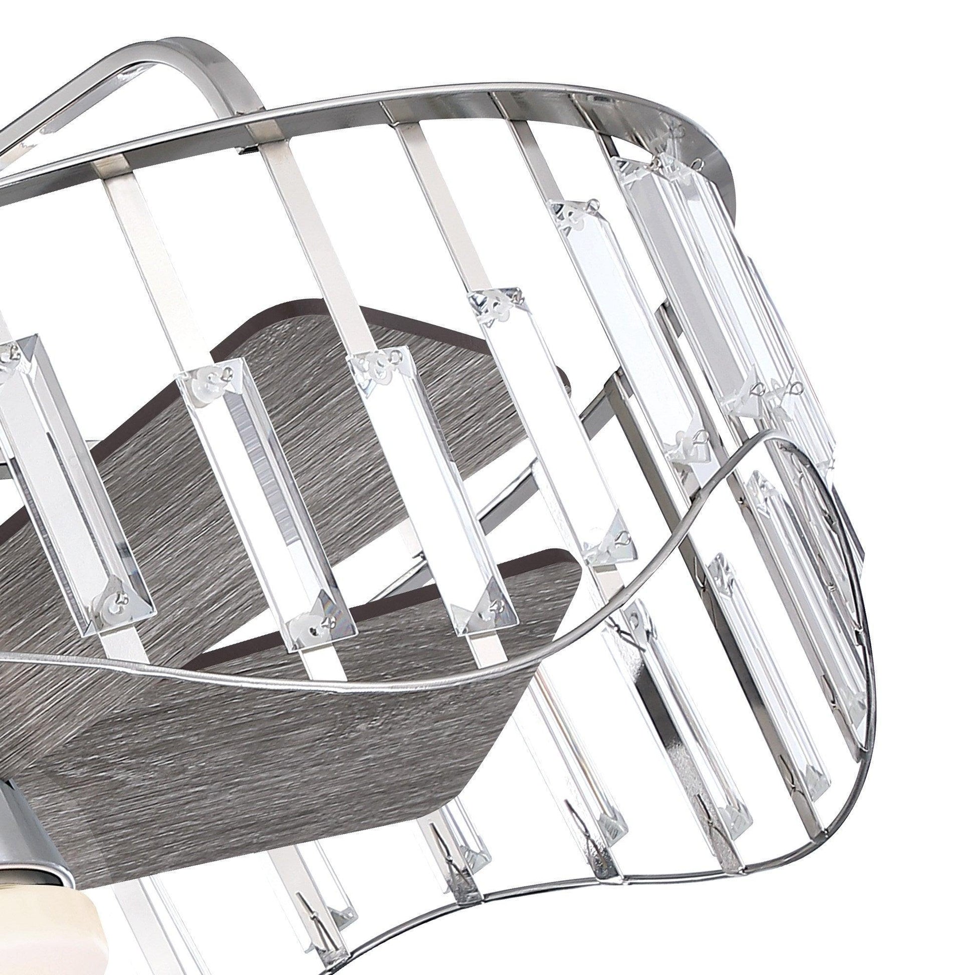If you want to give your overhead lighting a new look, look no further than this crystal 27-inch ceiling fan. This crystal ceiling lamp features a brushed nickel shade with sleek, streamlined lines and is surrounded by clear crystals for a beautiful, sparkling look. This eye-catching crystal flush mount ceiling fan is perfect to place above your dining table, in your living room or to welcome guests in your entryway, bringing a luxurious look to your interior design.