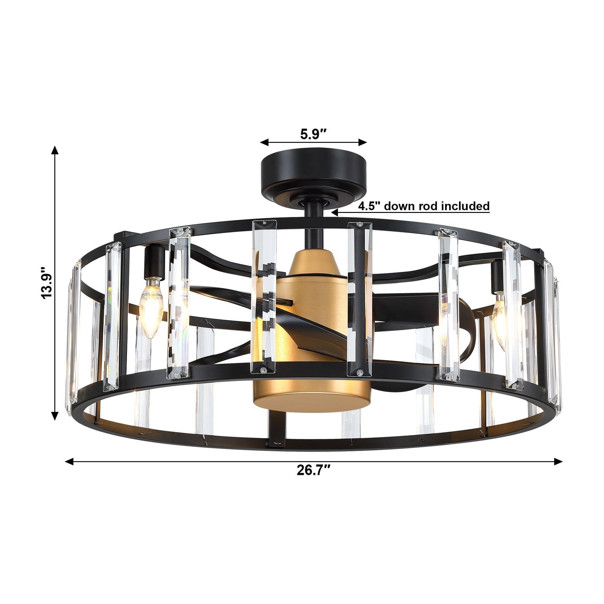 27" Modern DC Motor Downrod Mount Reversible Crystal Ceiling Fan with Lighting and Remote Control