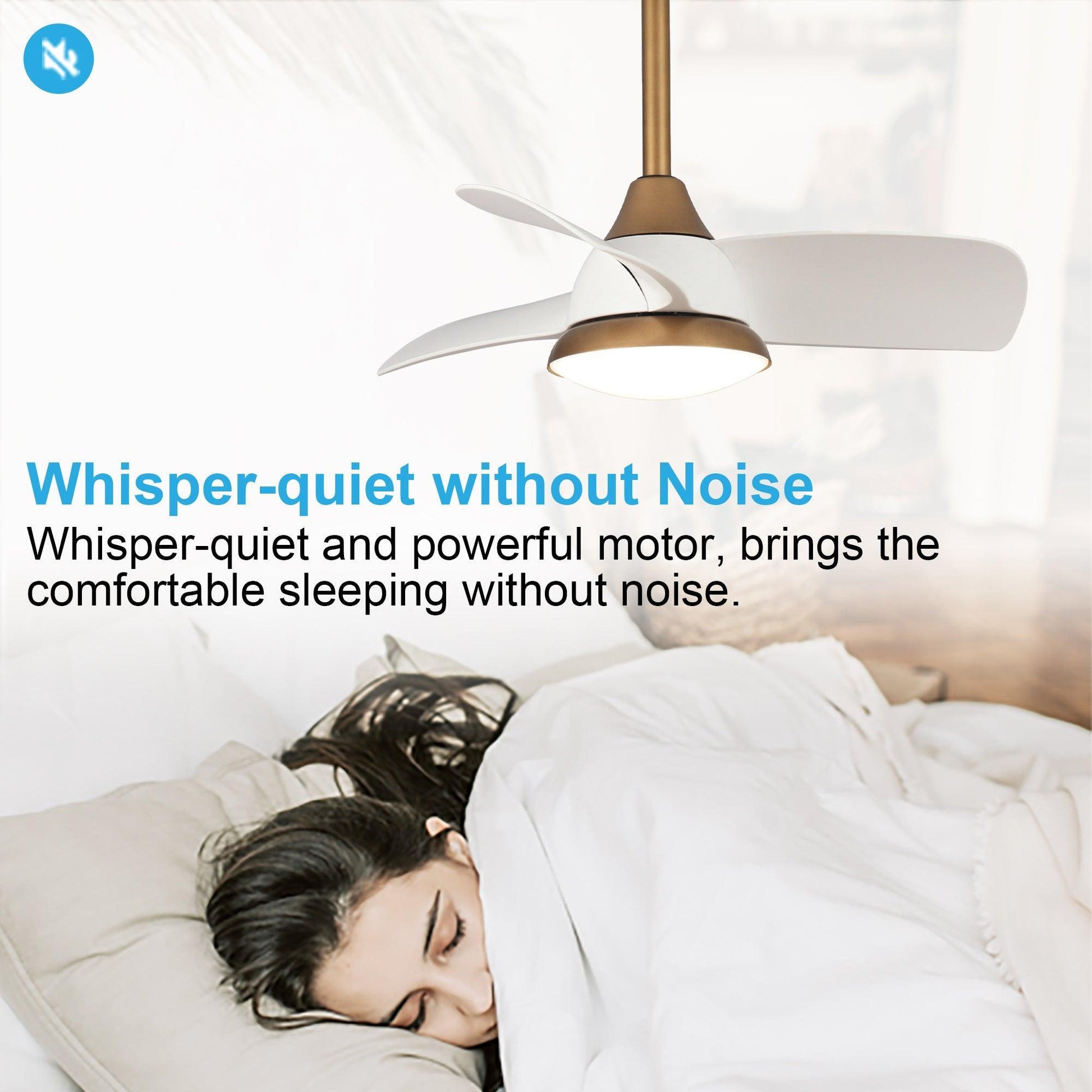 Keep your small bedroom cool with this stylish 28" ceiling fan. Boasting a bronze metal downrod and base, it also features three black fan blades for a contrasting, modern look. Moreover, an efficient LED light with a white glass shade enhances this sleek design. The quiet DC motor not only has a reverse function for year-round use but also uses downdraft mode to produce cool airflow in the summer. In winter, however, it switches to updraft mode to rotate and circulate warm air. Additionally, it offers three light color options: 3000/4000/6000K, and the light is dimmable. Therefore, our ceiling fans, which come with a light and a remote control, have all functions easily controlled by the remote, providing convenience and style in one package.