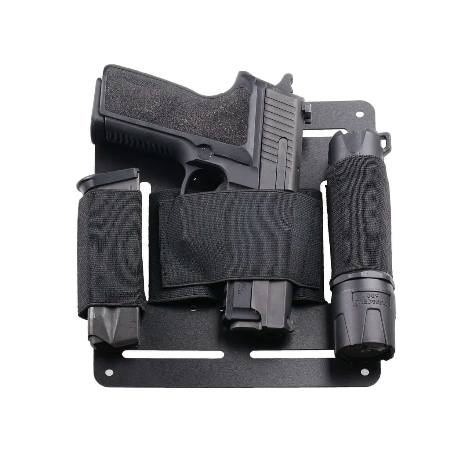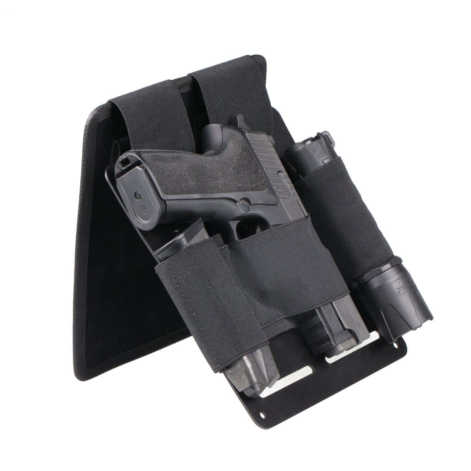 - Universal design with an adjustable elastic band that is compatible with most handguns, including Glock, Smith & Wesson, SIG Sauer, and Ruger among others. It also allows you to store extra magazines, flashlights, knives, or anything else you might need along with your gun in an emergency.