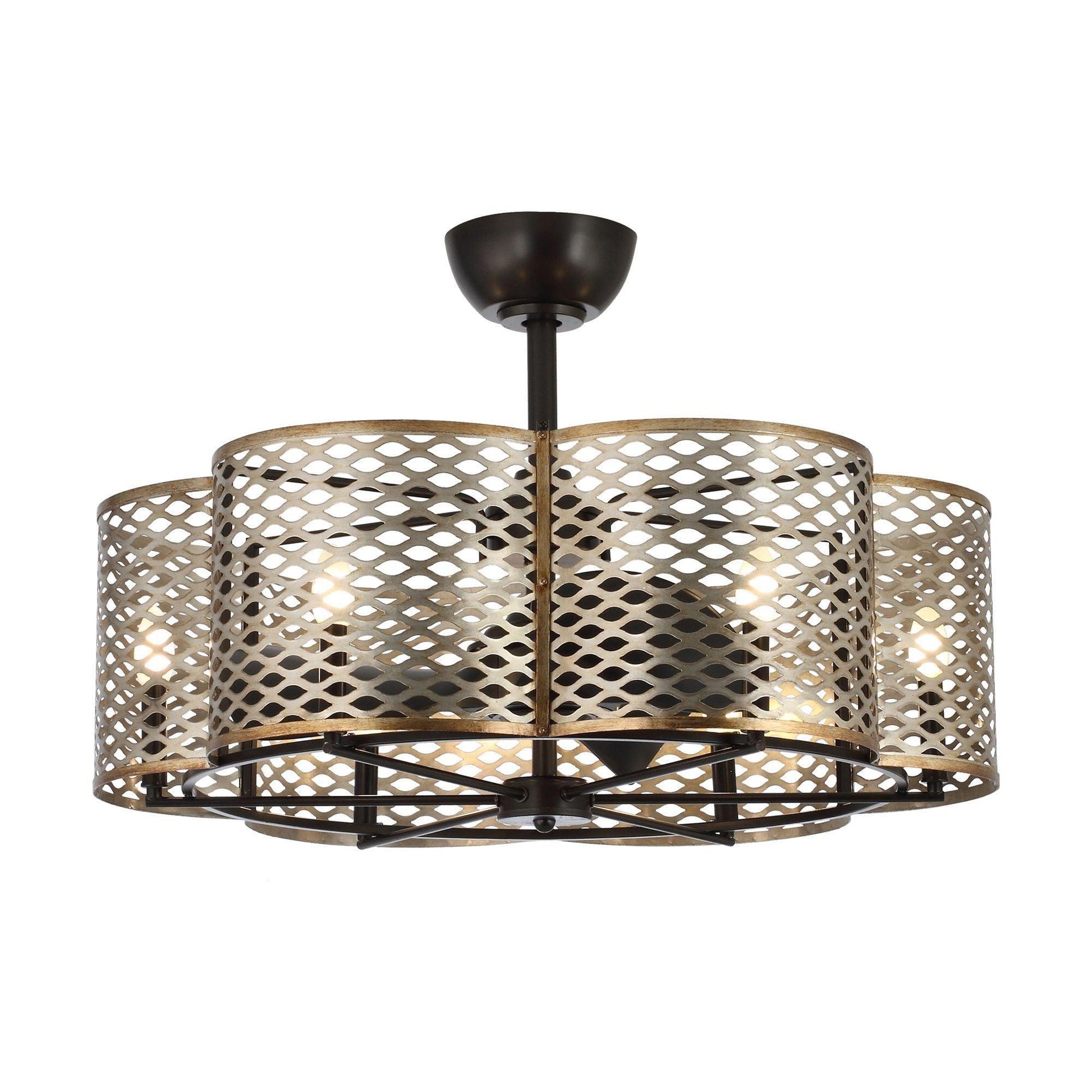 When you are looking for a fan or a light, consider this stunning chandelier in a beautiful oil-rubbed bronze lighted ceiling fan as your solution. Hidden 3 reversible fan blades are housed in brilliant wave-designed housing. 6 variable fan rotation speeds insure you find just the right comfort level. Select with ease from any location with the convenience of the included remote control.