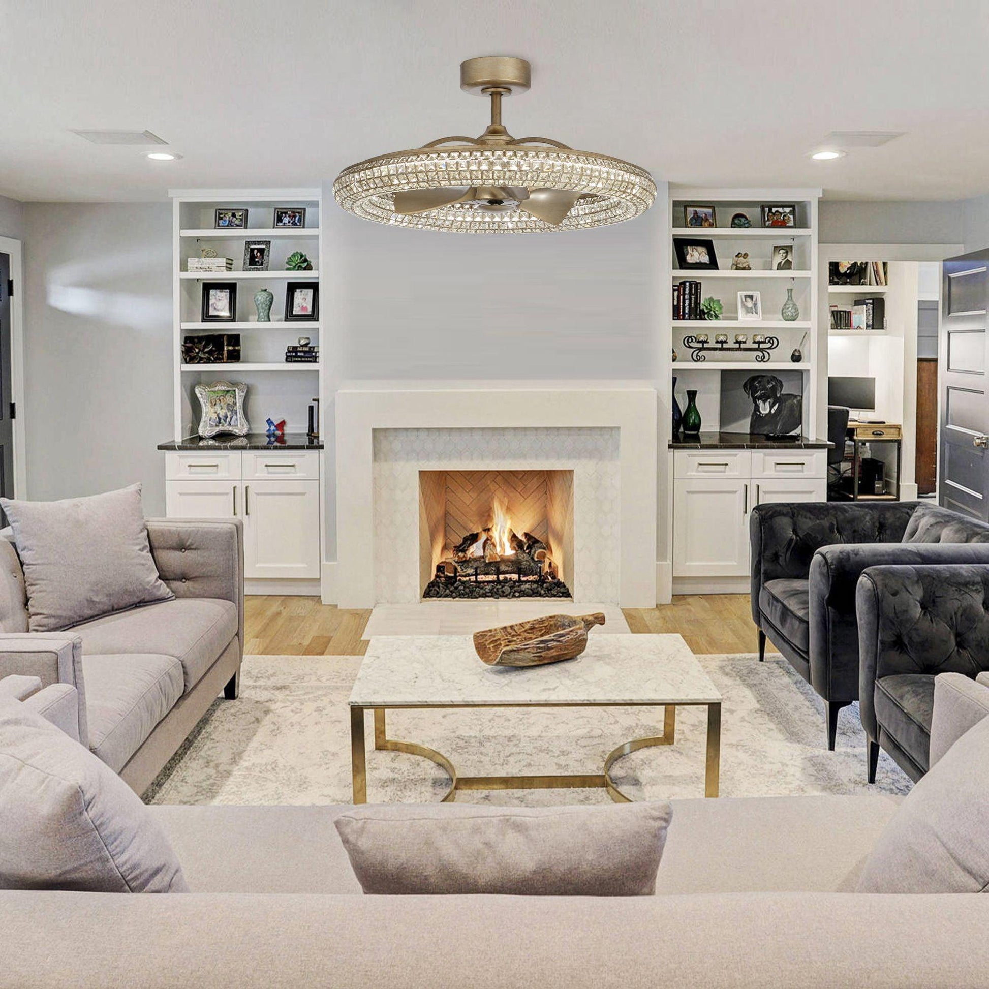33" Modern DC Motor Crystal Ceiling Fan with Lighting and Remote Control