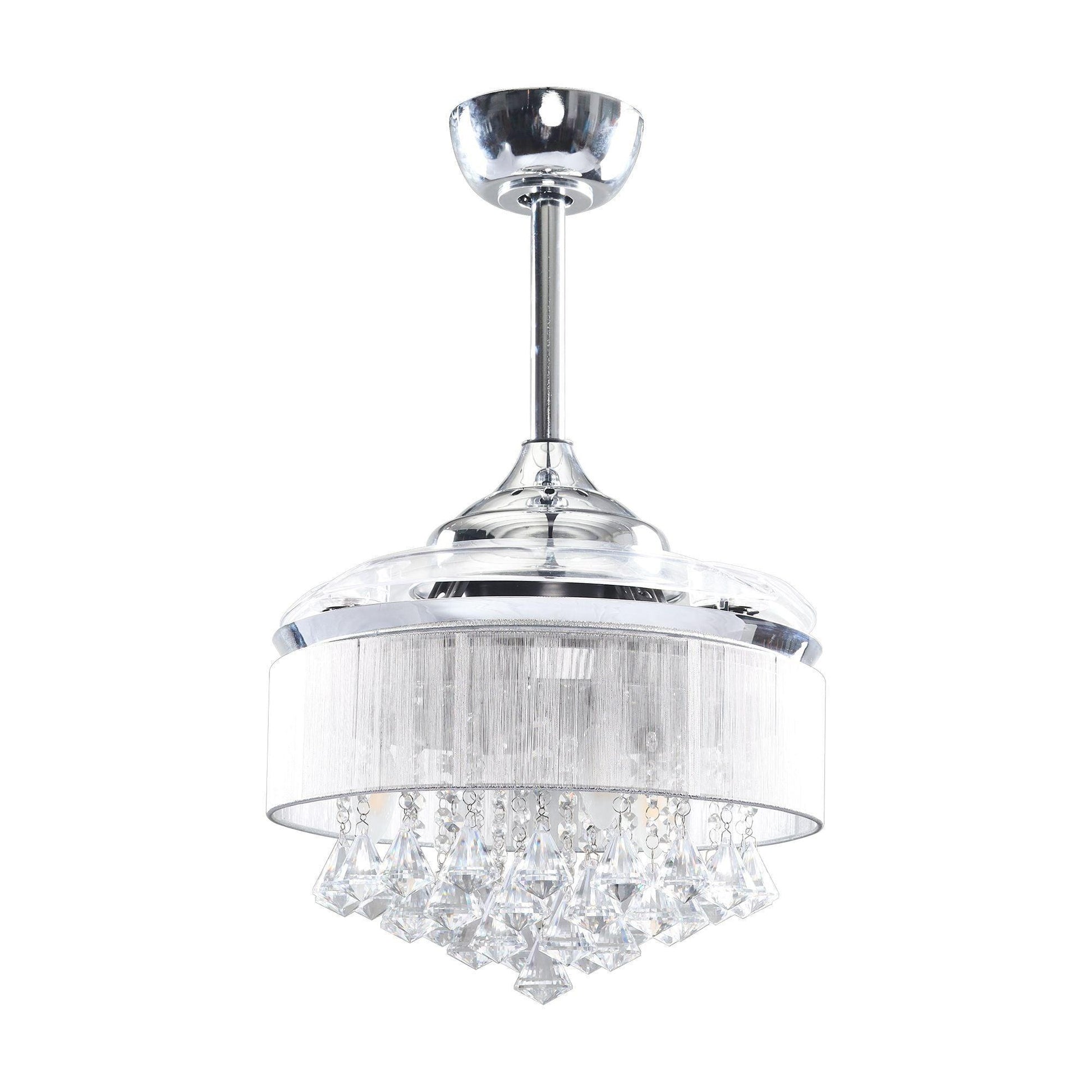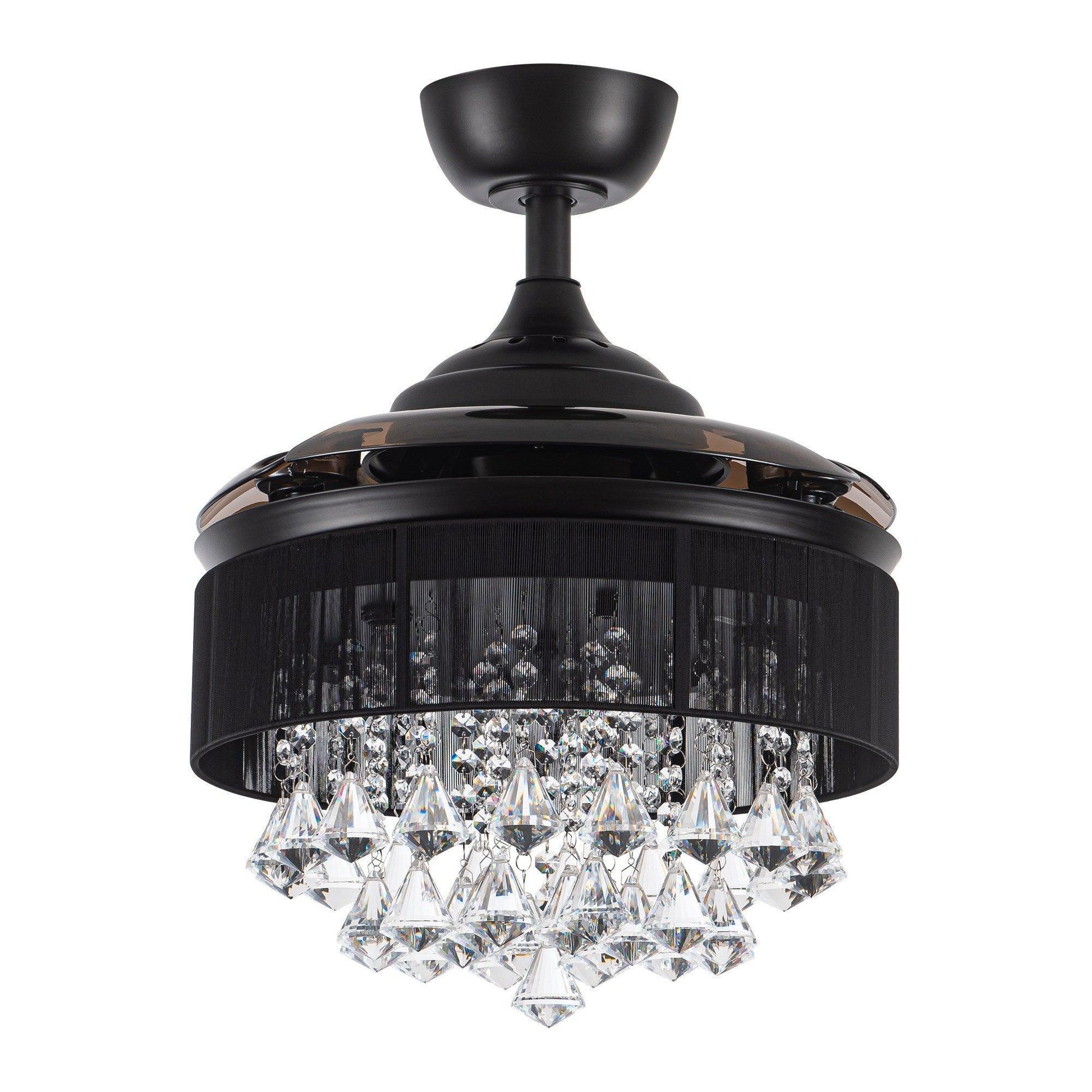 You will be shocked at this modern yet traditional chandelier that doubles as a fan The perfect combination of glam and function. It has an independent light. The blades retract when the fan is not in use. How cool is it that The crystals are beautiful and sparkly? Don't worry, the crystals do not move or make noise when the fan is on. It is perfect for your bedroom.