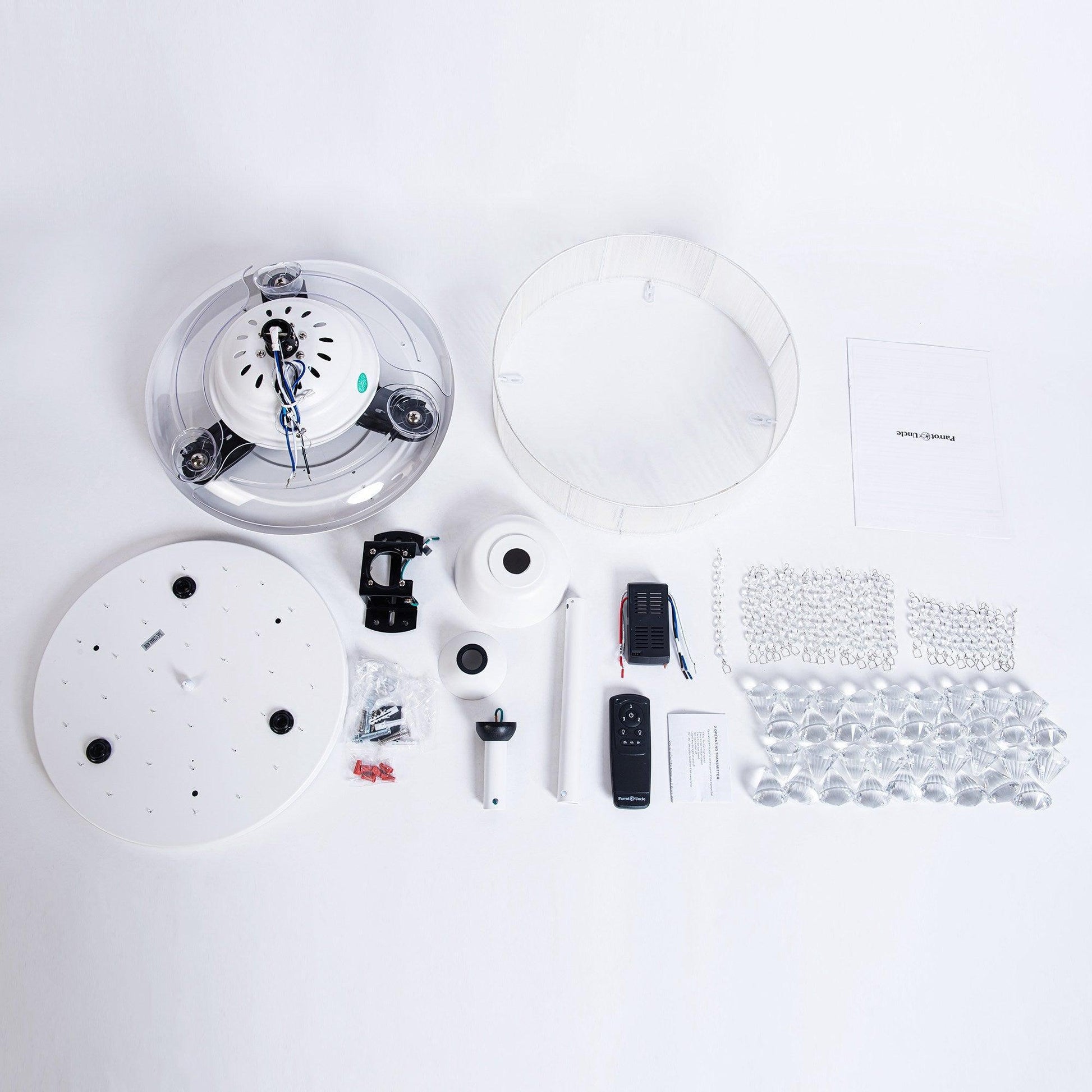 36” | Metal, Plastic, Crystal | D1"-L4"&L10" | 3*PC Blades | 3*E12 Lamp holders no bulbs | AC Motor | Remote control | 3 | Yes | Dry location |