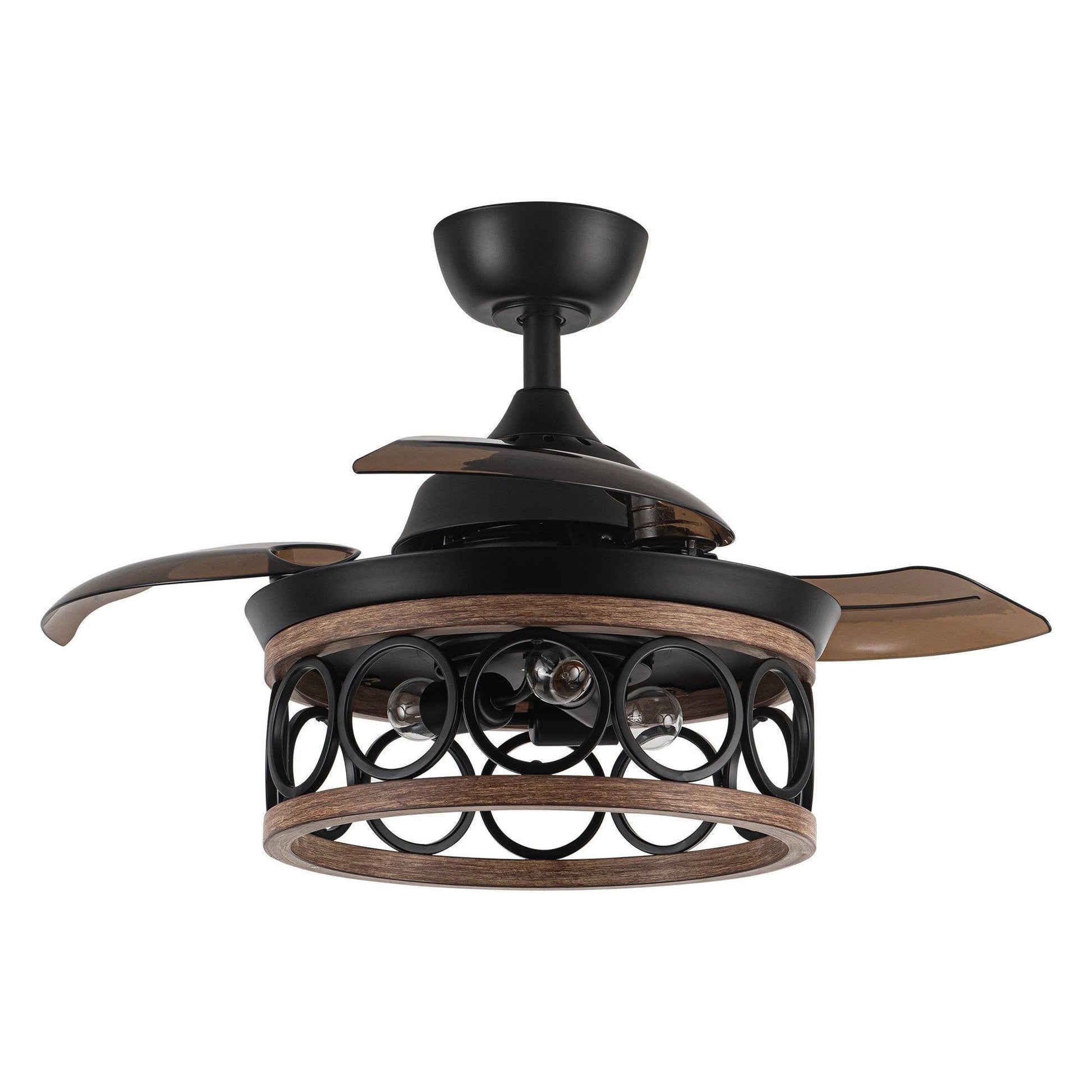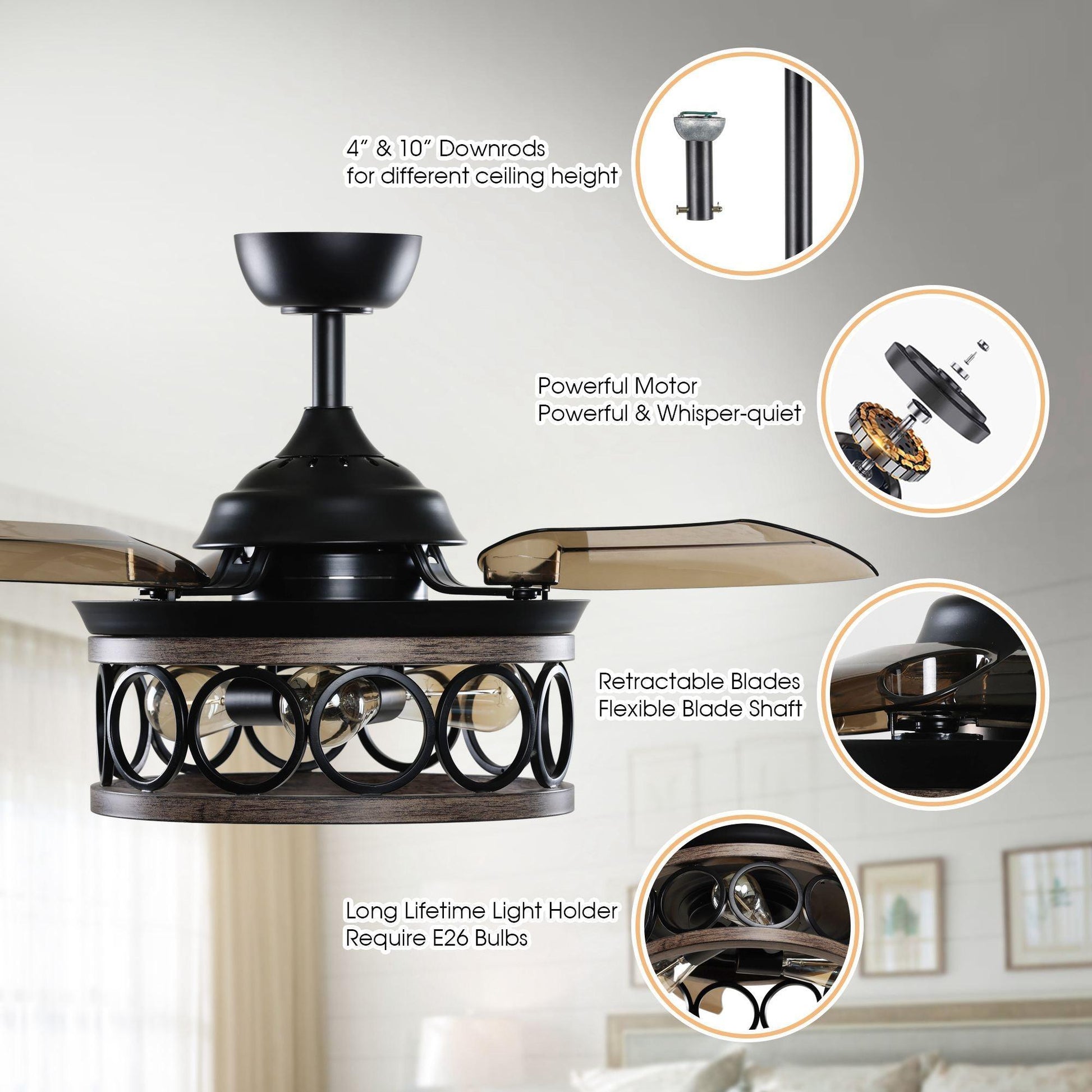 The Mirelle Farmhouse Ceiling Fan is more than just a ceiling fan; it's a work of art. Moreover, the antique woodgrain blade finish and the 11-ring attachment cage enhance its artistic appeal, therefore making this fan a natural fit for farmhouse style interiors. However, its aesthetic appeal does not compromise its functionality. The retractable blades automatically open and close when you turn the fan on or off, and yet, it also allows for easy control of fan speed and lighting with the included remote controller.