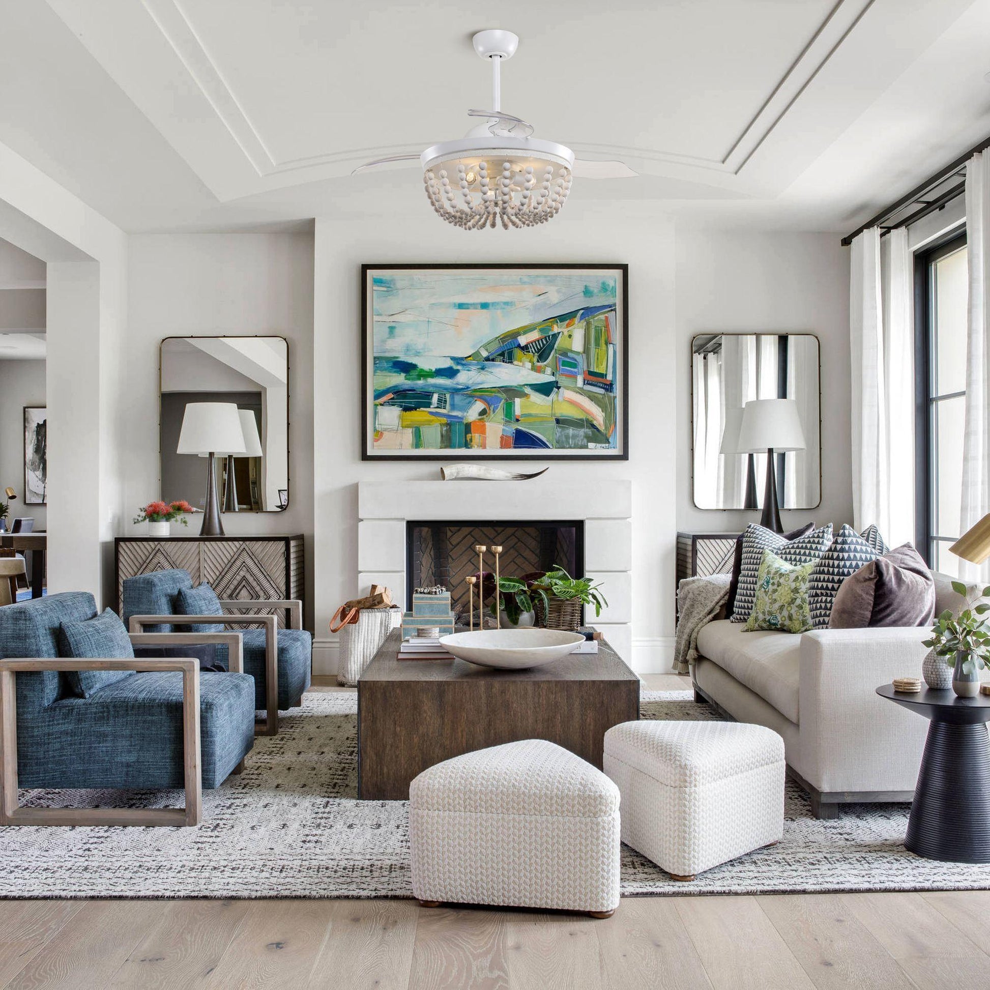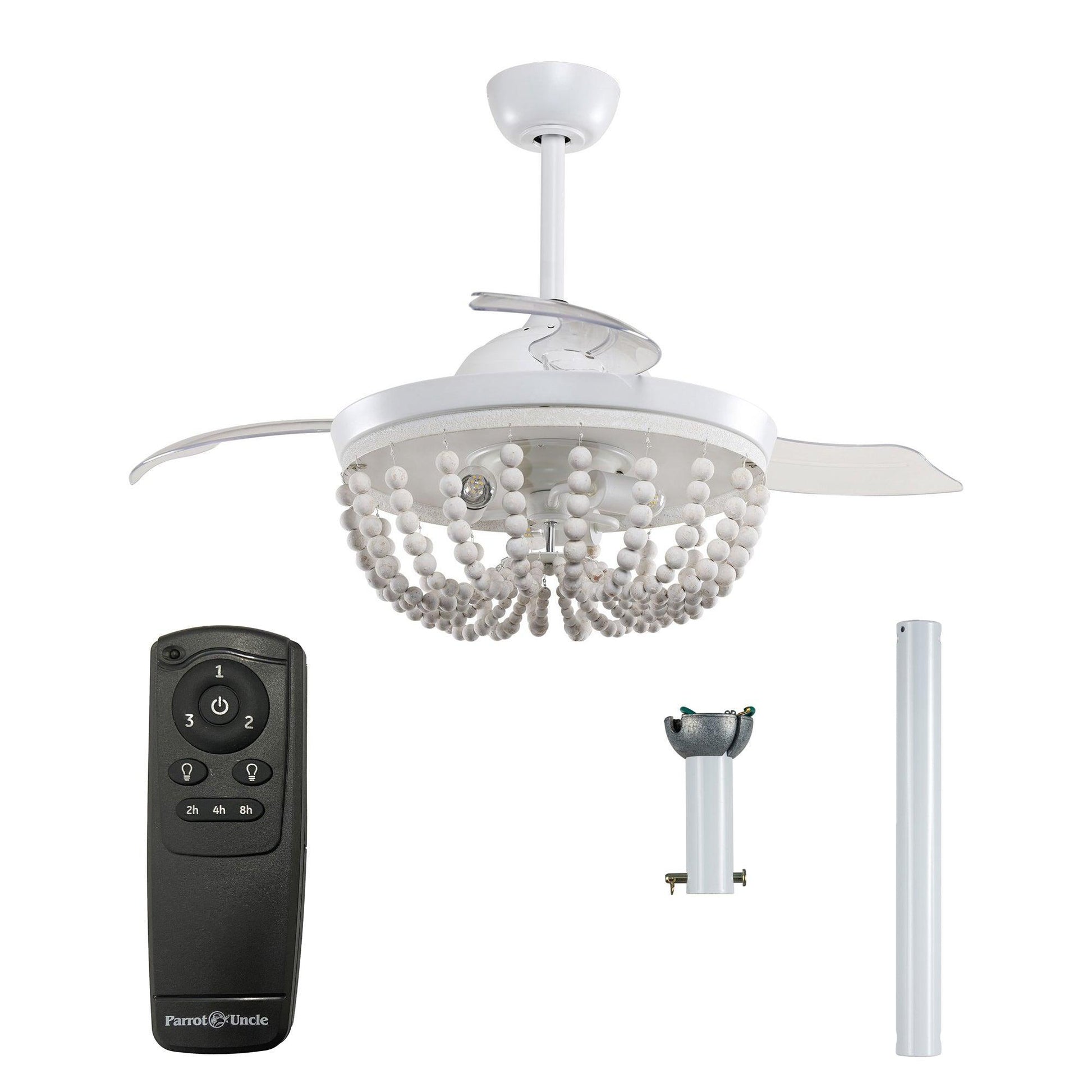Exuding a blend of farmhouse and bohemian aesthetics, this 42" Huang Farmhouse Wooden Beads Ceiling Fan with Lighting is a versatile addition to any home decor. Adorned with white-finished wood beads, it easily complements various interior styles. The practicality of its 3-ABS blades is magnified by the convenience of a remote control, which transforms this exquisite lighting chandelier into a functional ceiling fan within seconds. Its unique coastal farmhouse design makes the beaded light kit a captivating piece of art, elevating the ambiance of any room. Ideal for home offices, kitchens, children's bedrooms, and other compact spaces, this fan is the perfect blend of beauty and functionality.