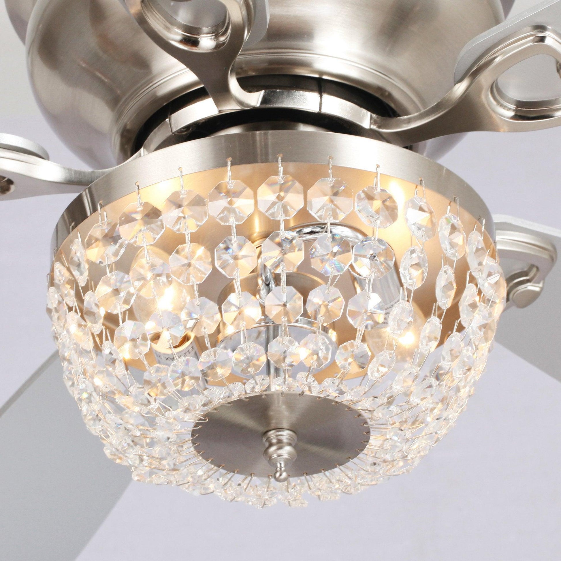 48" Modern Flush Mount Reversible Crytsal Ceiling Fan with Lighting and Remote Control