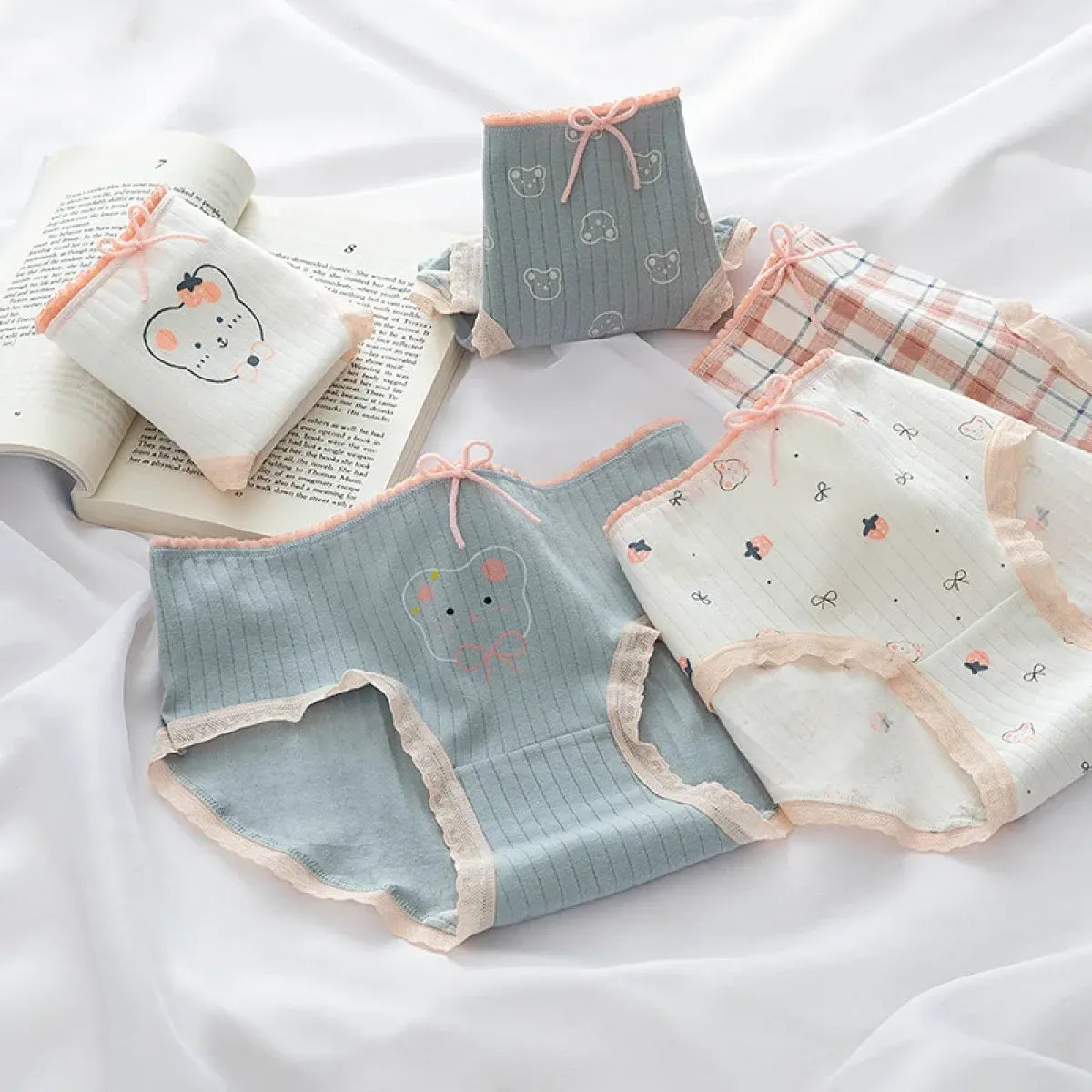 Elevate your lingerie game with our 5-Pack Cotton Panties, designed to offer comfort, style, and a touch of allure. Crafted from soft cotton material with a hint of stretch, these briefs are perfect for everyday wear. Embrace your curves in our plus-size range, featuring adorable cartoon patterns and charming bow decorations.