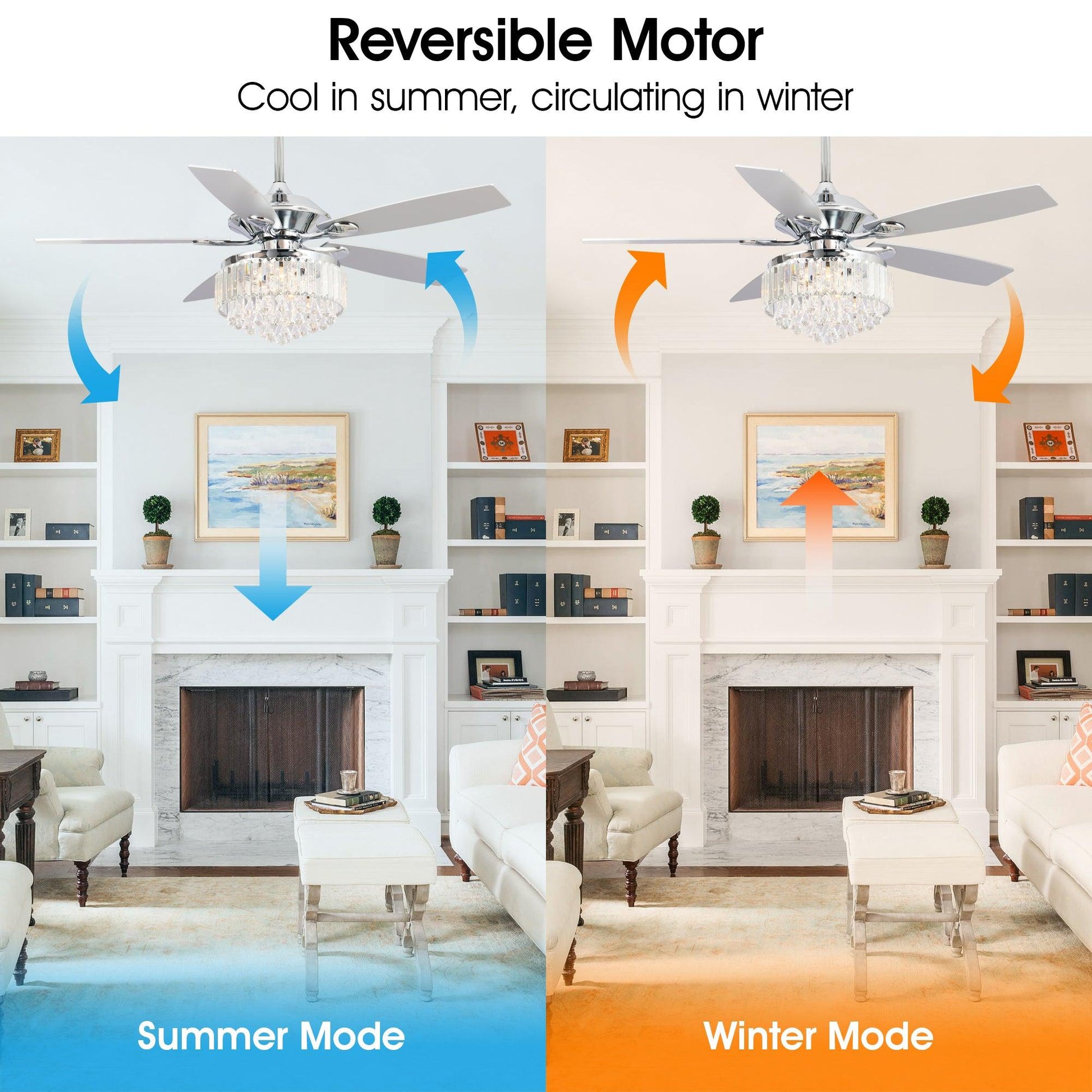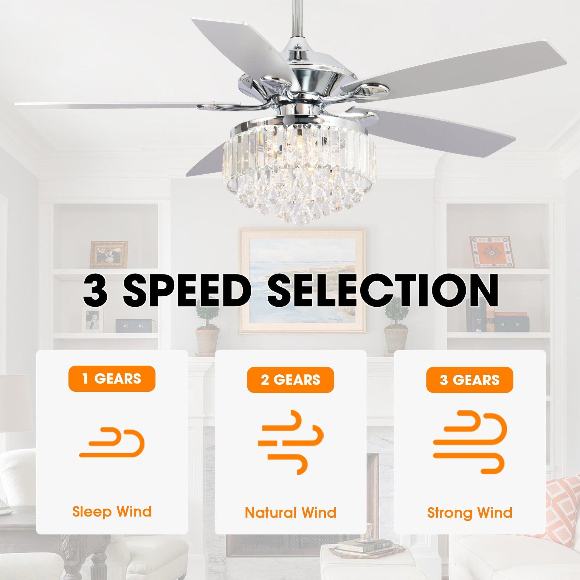 52" Elkton Modern Reversible Crystal Fandelier with Lighting and Remote Control
