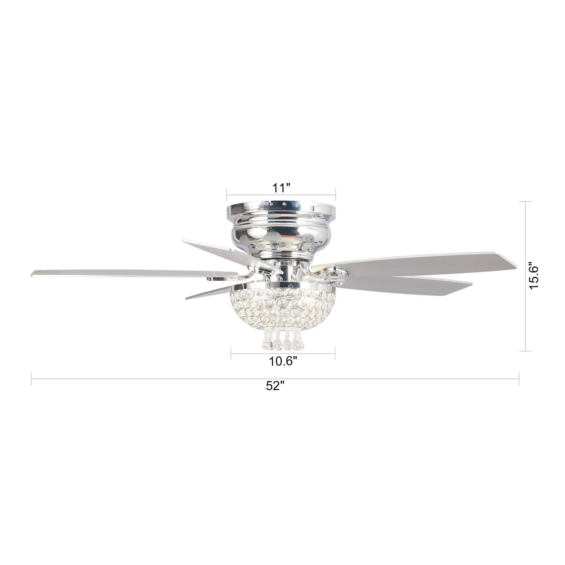 52" Kanpur Modern Chrome Flush Mount Reversible Crystal Ceiling Fan with Lighting and Remote Control