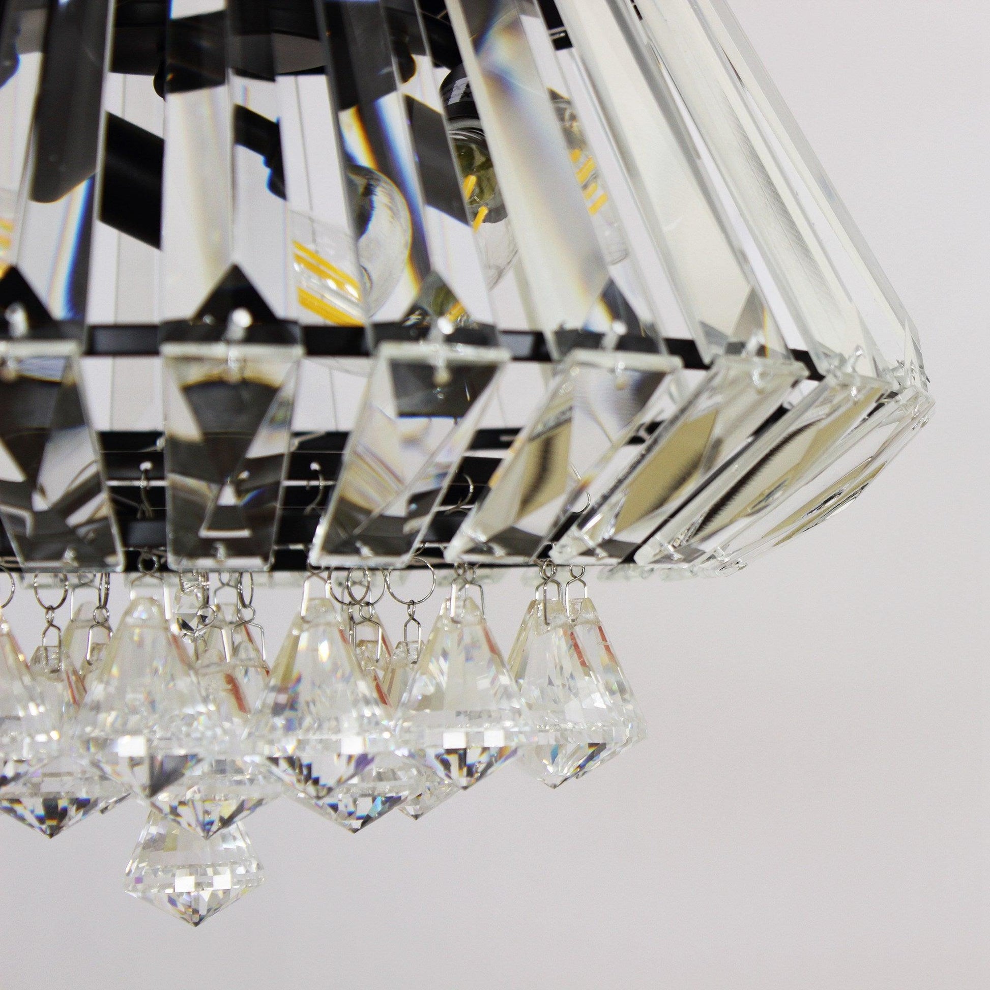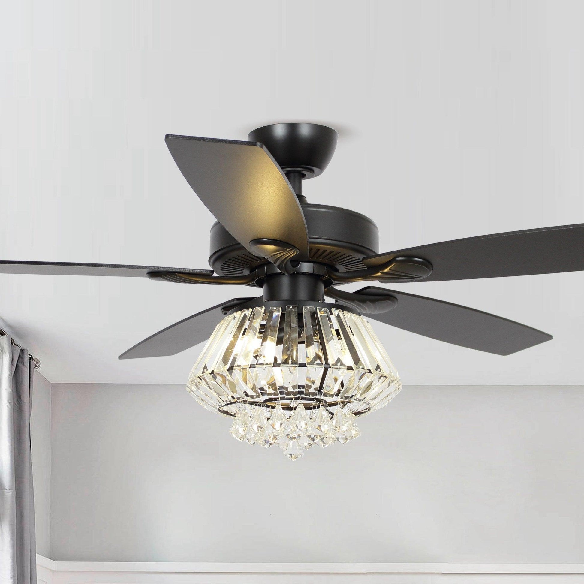 52" | Iron, Plywood, Crystal | D0.6"-L4"&L10" | 5*Reversible Wood Blades | 3x60W, E12 base light bulb(not included) | AC motor | Remote control | 3 | Yes | Dry location |