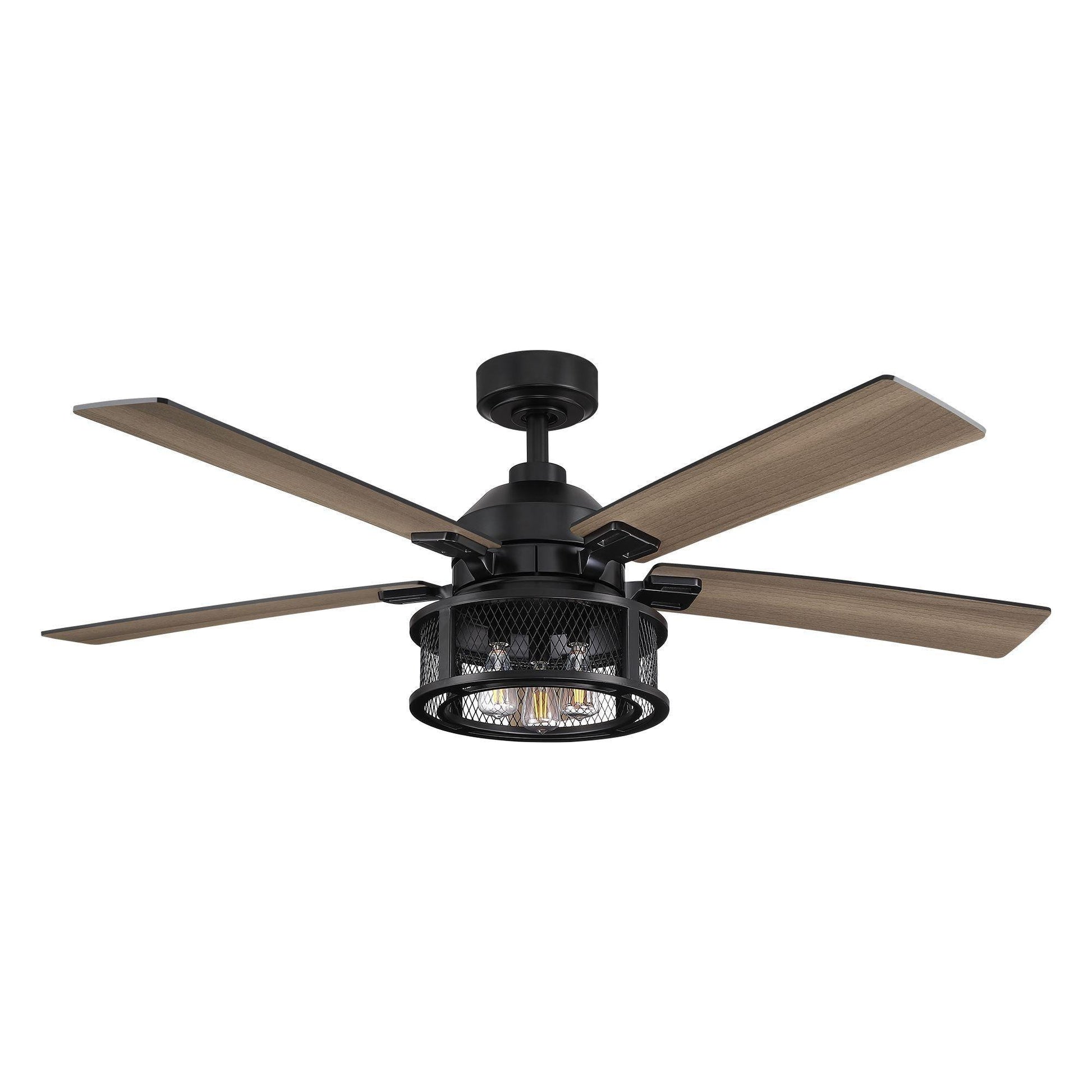 52" Lucknow Industrial Black Reversible Ceiling Fan with Lighting and Remote Control