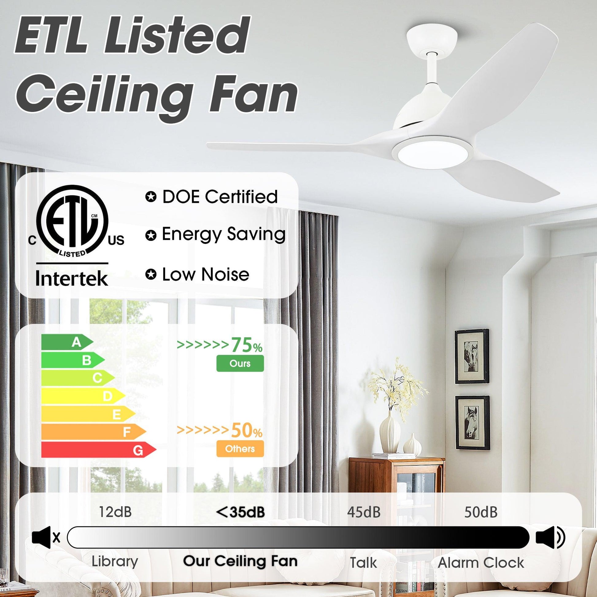 52" Vaczon 3 Blades Ceiling Fan with LED Light and Remote Control